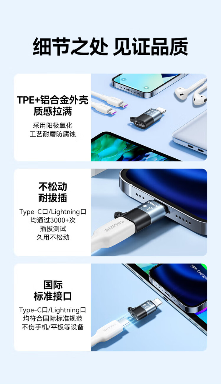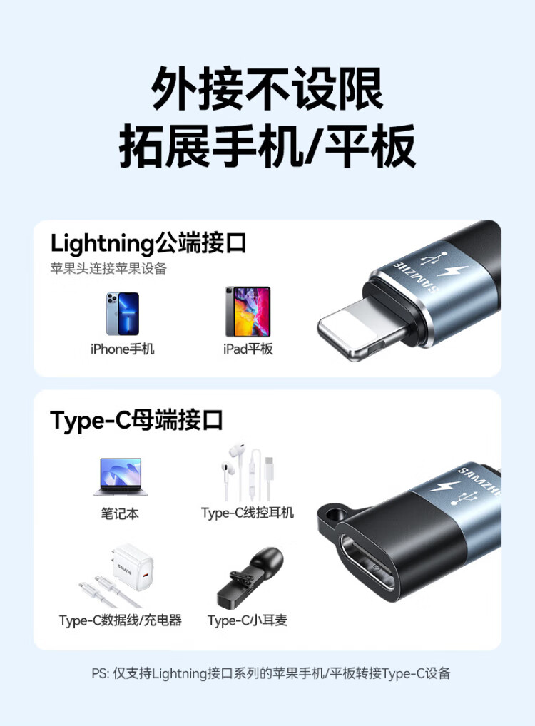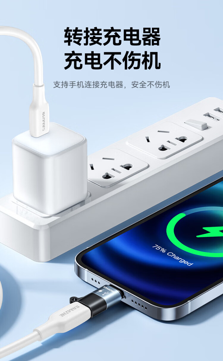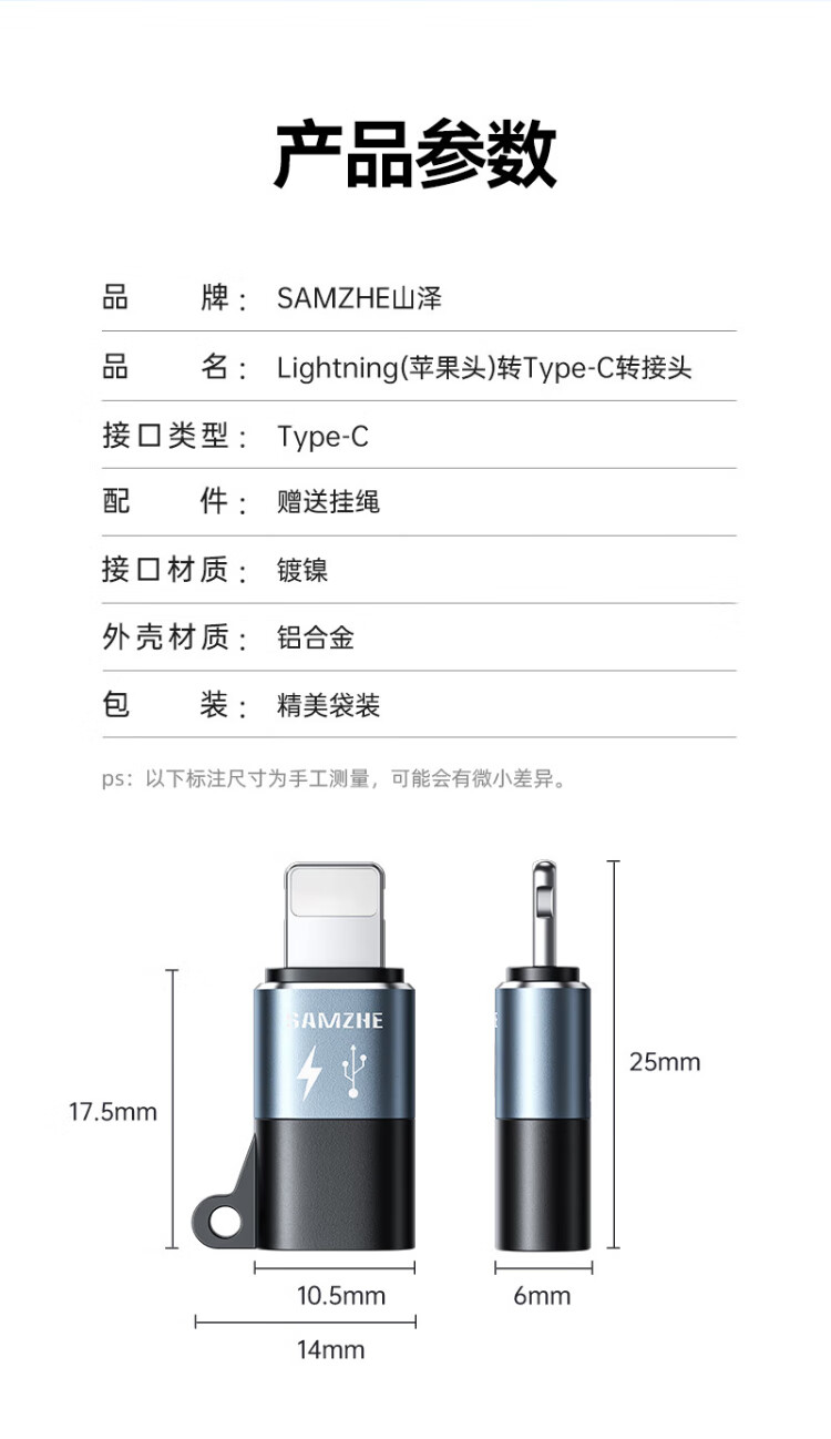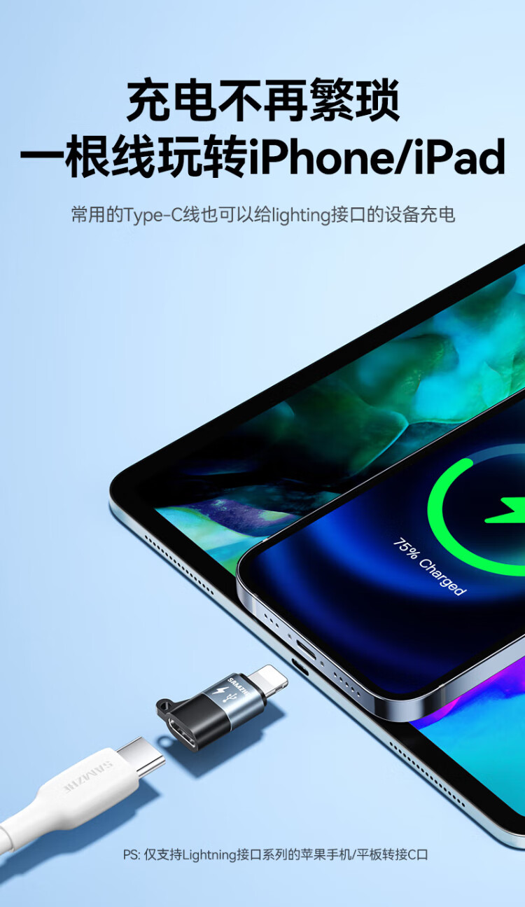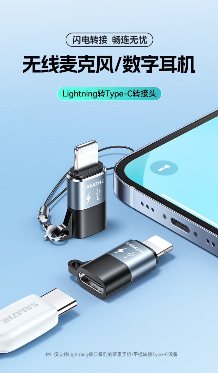 Shanze Lightning Male to Type-C Female Adapter Android to Apple Adapter Conversion Port Charging Cable Suitable for Apple Mobile Phone Headphone Charging Microphone LC21-2
