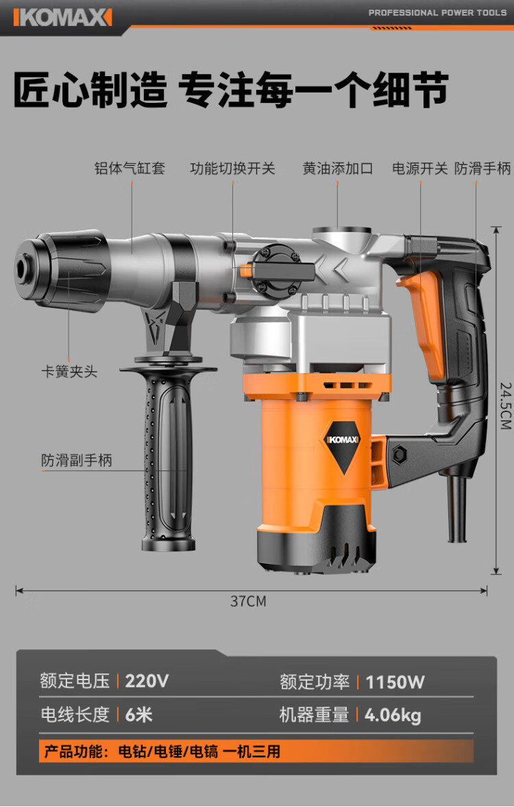 Comex three-function heavy-duty electric hammer high-power impact drill multi-function electric drill hammer pick dual-purpose concrete excavation tool