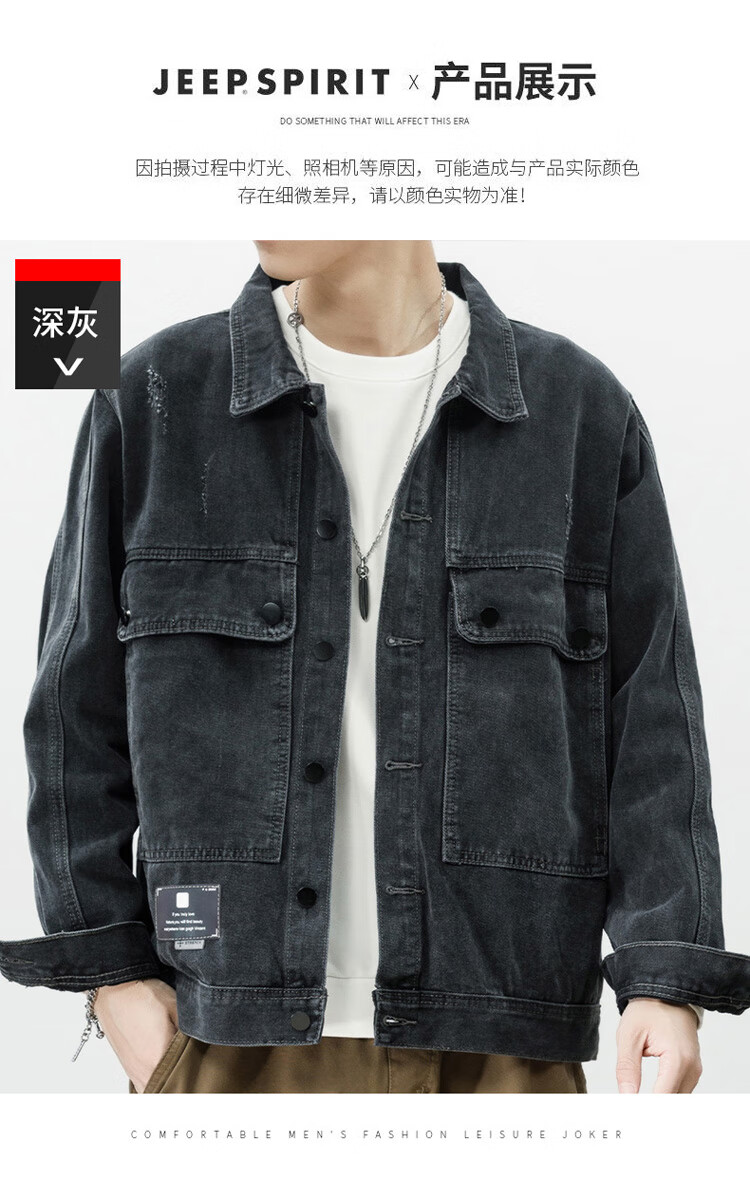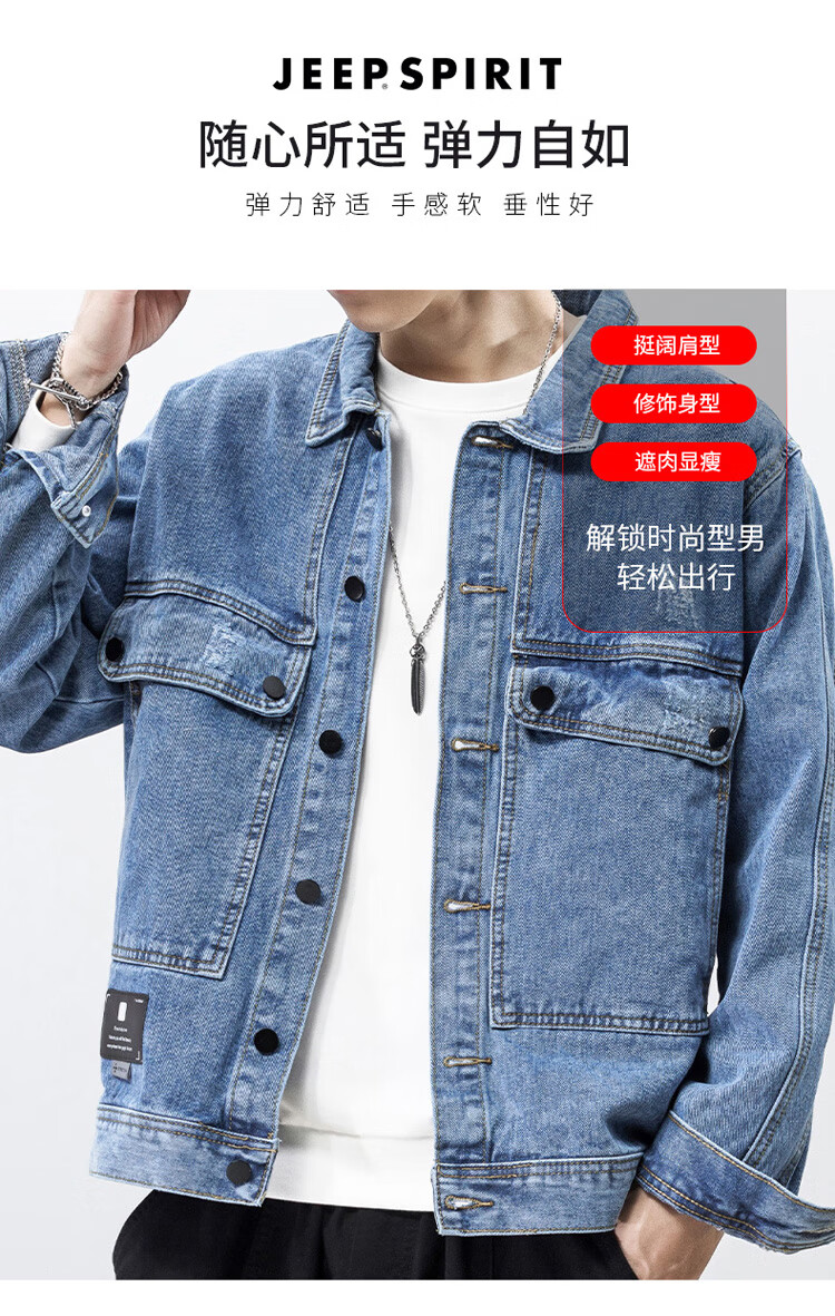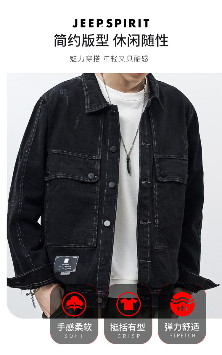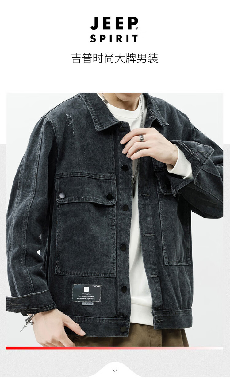 JEEP SPIRIT Jeep denim jacket men's jacket men's autumn and winter workwear high-end casual handsome American tops