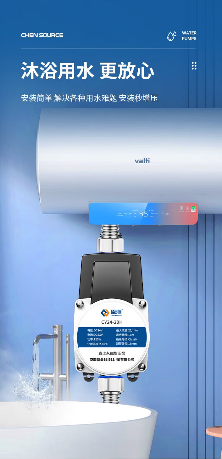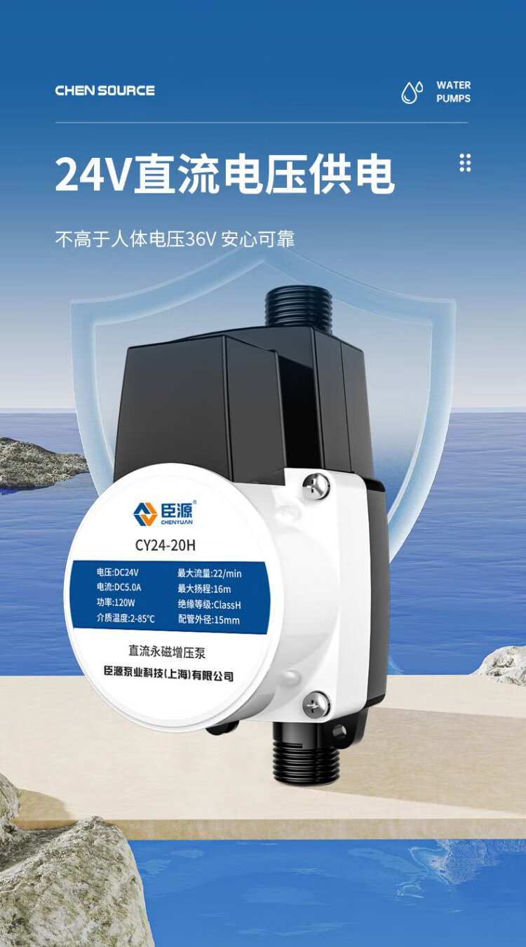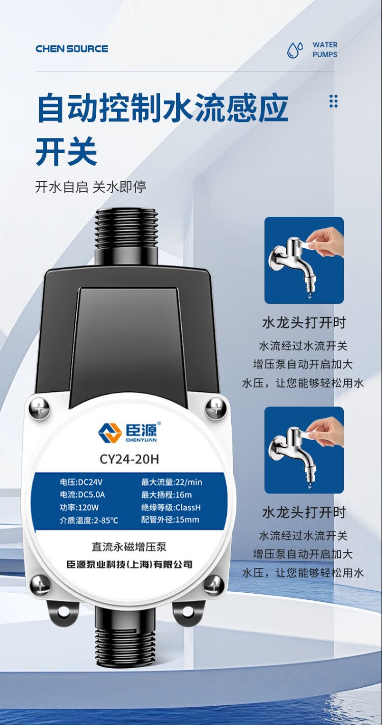 Chenyuan booster pump household water heater tap water booster pump 24V shower bass water pump fully automatic small intelligent 24V manual and automatic 90W powerful model