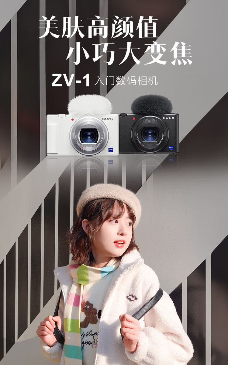 Sony (SONY) ZV-1 ZV1 Vlog digital camera 4K video beauty camera with powerful focus ZV-1 black stand-alone camera comes with a free camera bag + brand charger + screen saver Official standard configuration