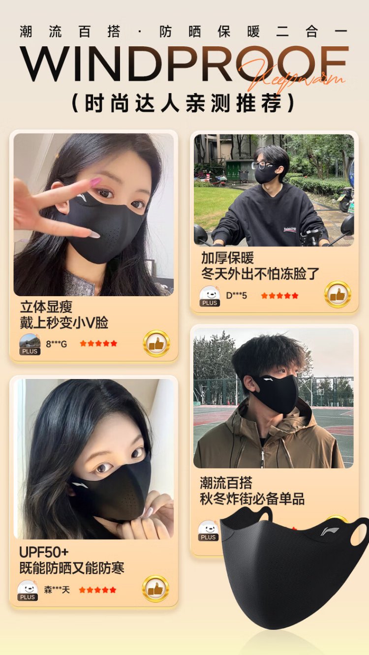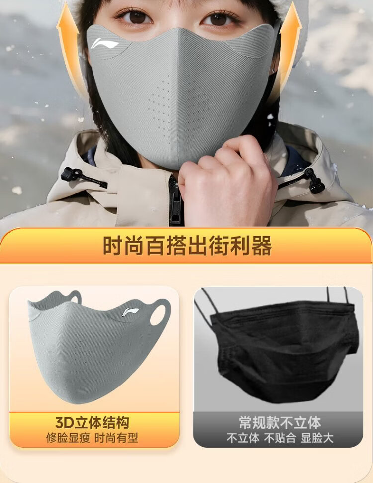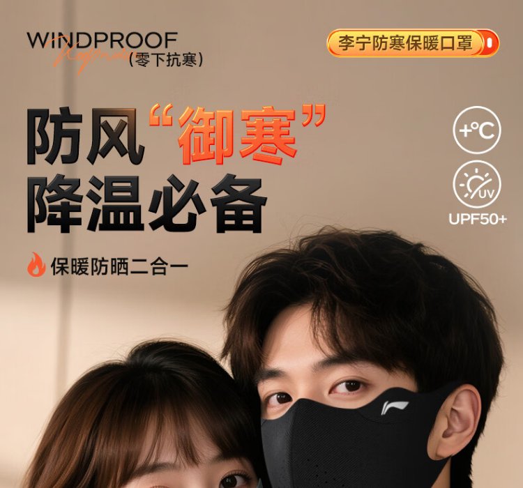 Li Ning Warm Mask Autumn and Winter Cycling Mask Men and Women Anti-cold, Windproof and Dust-proof Thickened Cycling Anti-freeze Mask Self-operated
