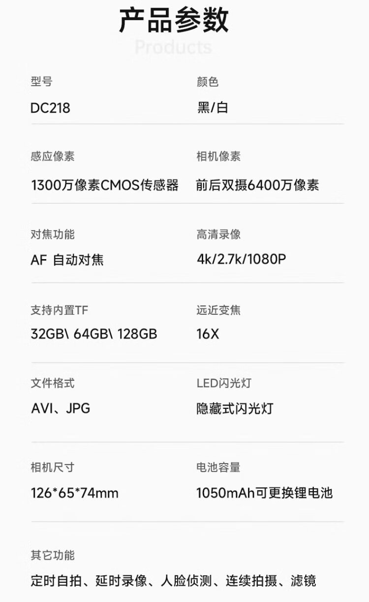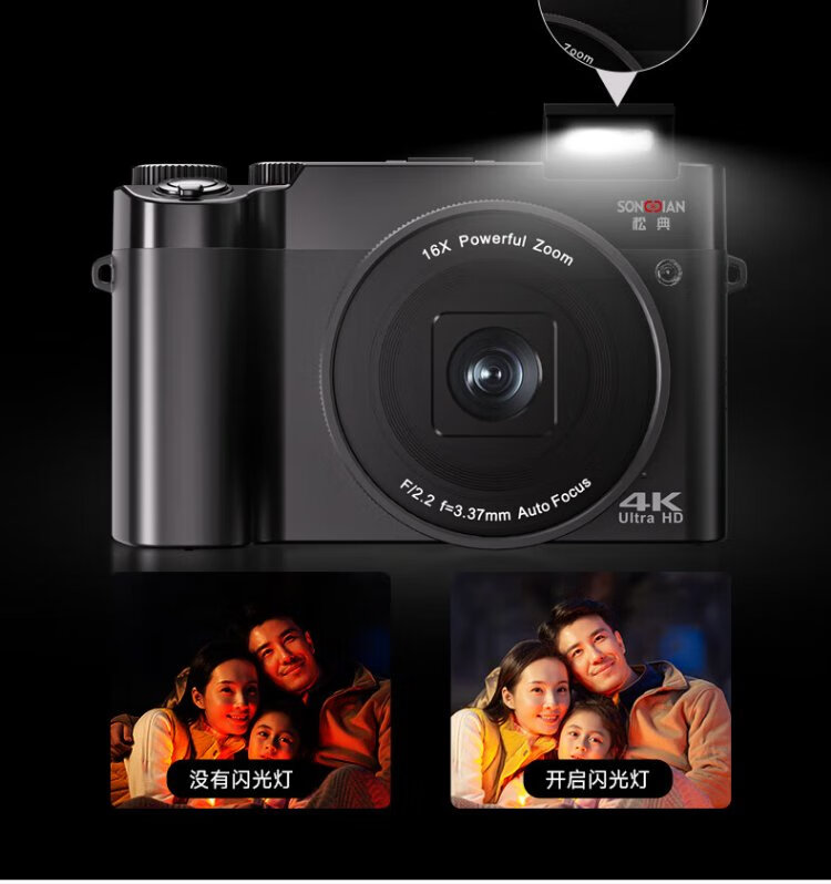 SONGDIAN digital camera front and rear dual camera 6400W high-definition mirrorless camera vlog portable student entry-level camera dc218 black 64G memory