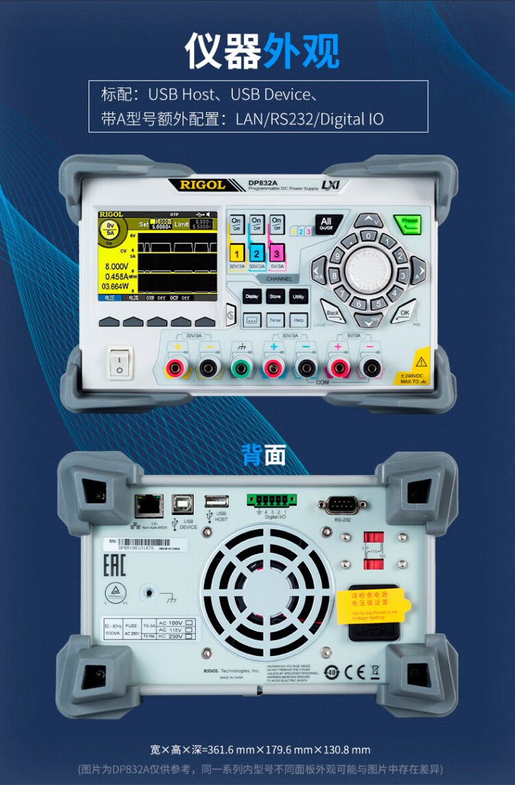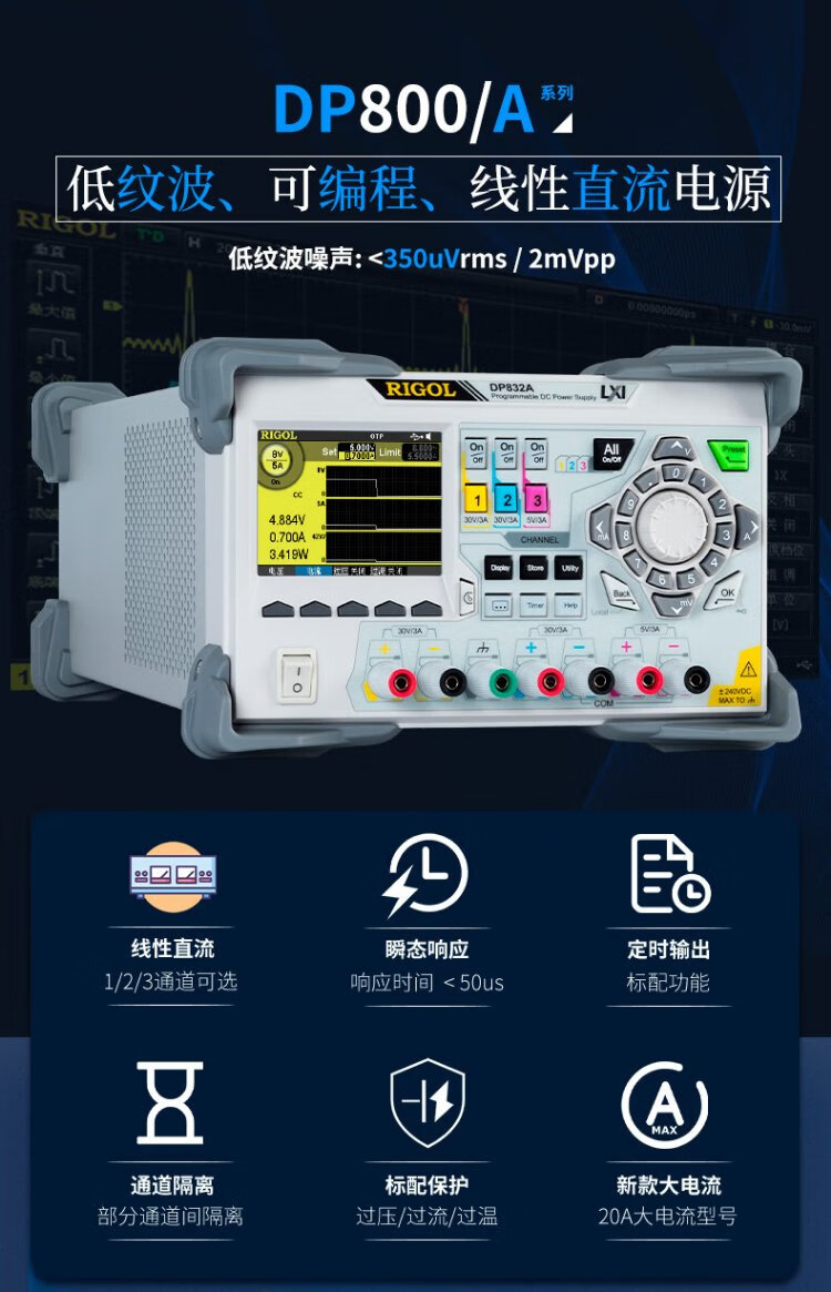 RIGOL Puyuan regulated power supply DP800 three-channel output 195W power high-precision programmable linear DC power supply DP811