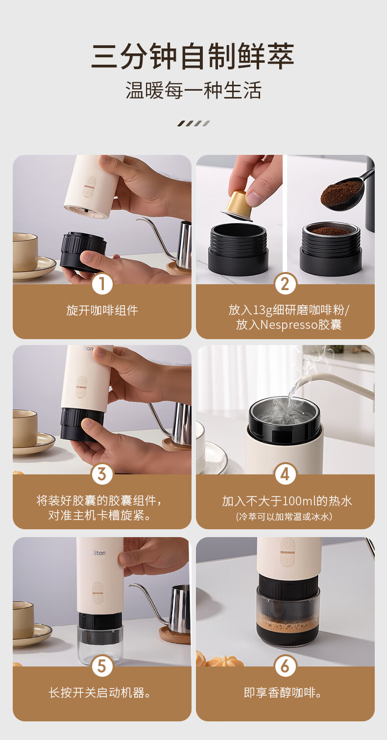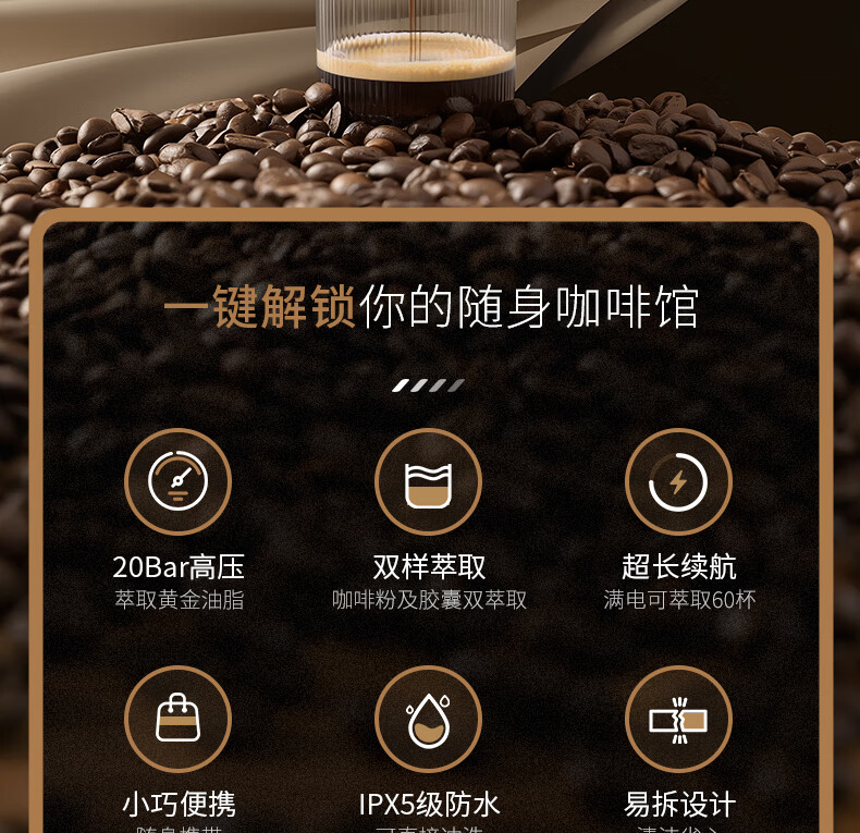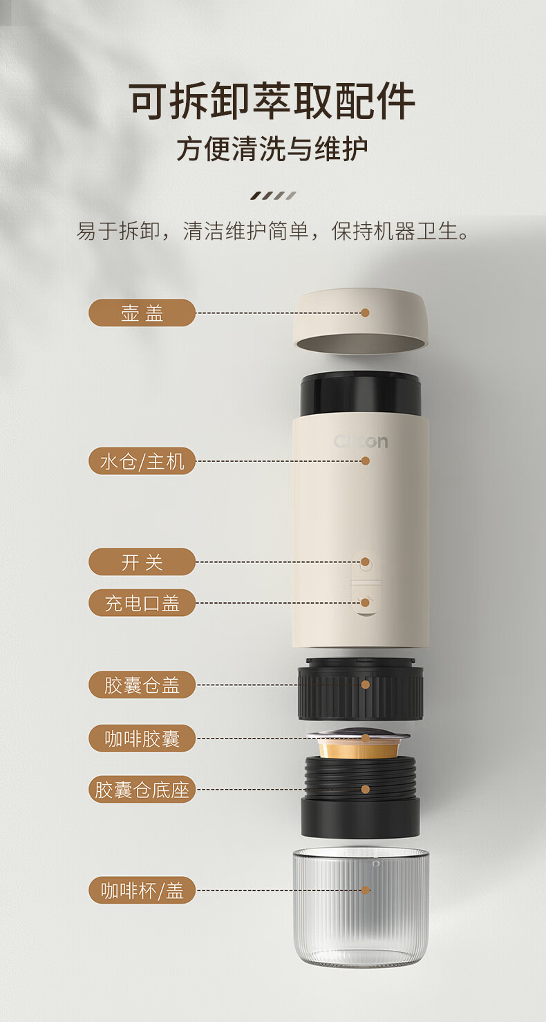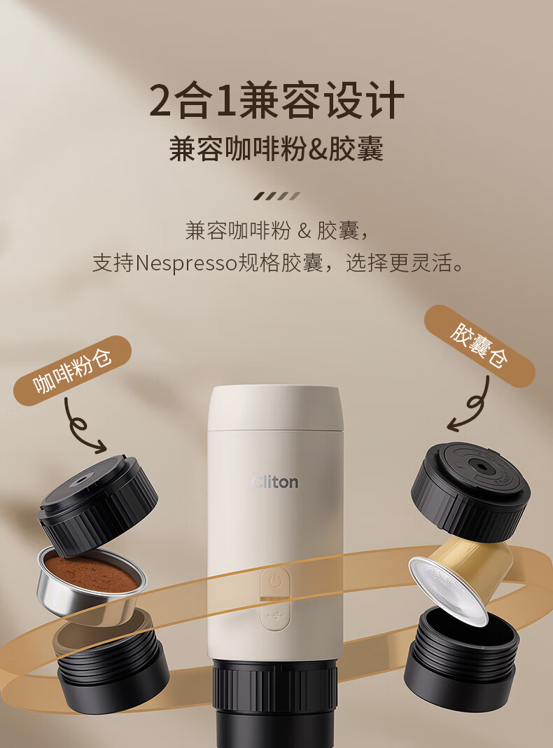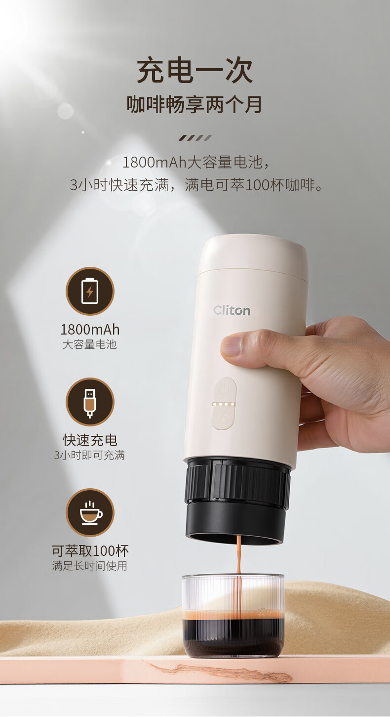 CLITON portable coffee machine car wireless mini handheld espresso semi-automatic coffee machine home outdoor camping