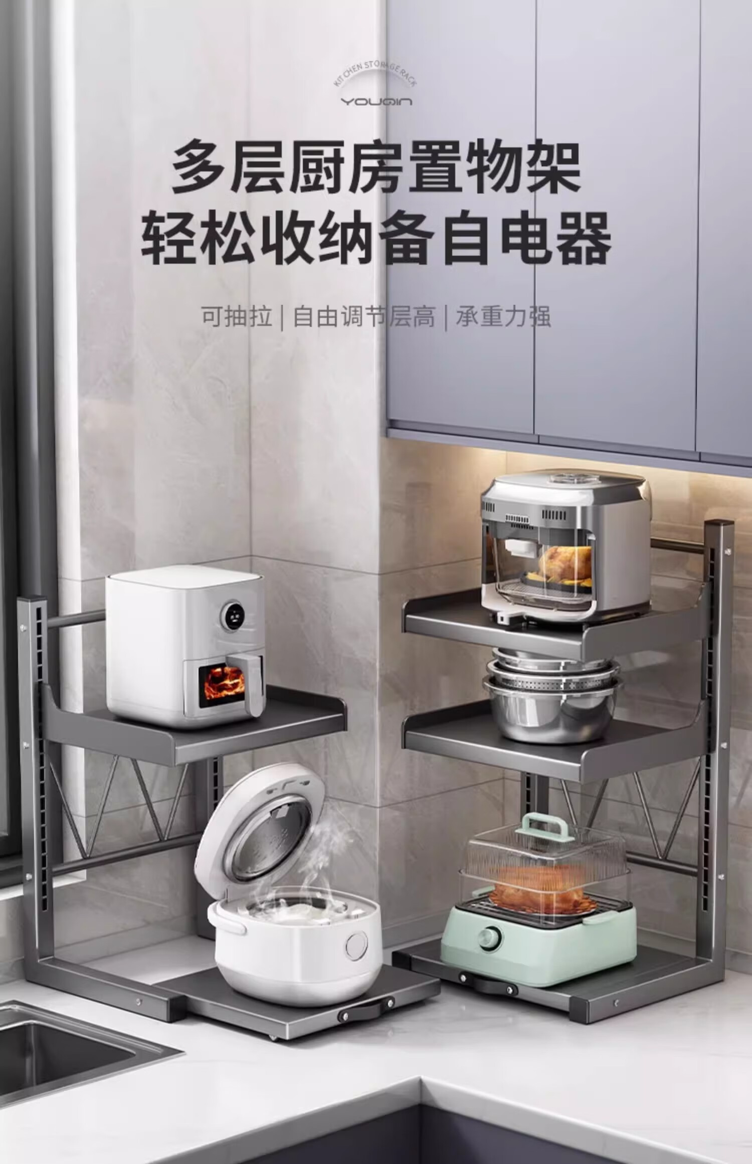 Youqin rice cooker storage rack multi-functional microwave oven shelf kitchen appliance countertop pull-out multi-layer storage rack