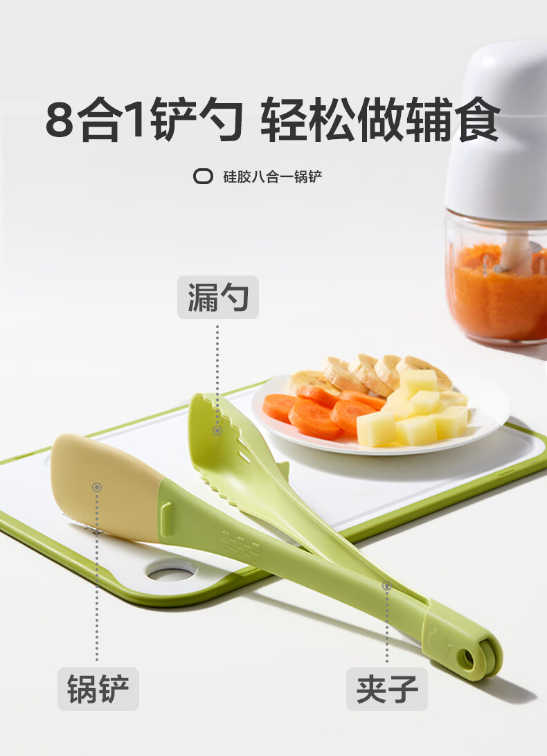 Babycare baby food supplement pot children's frying pan non-stick multifunctional silicone eight-in-one kitchen cooking spatula colander clip