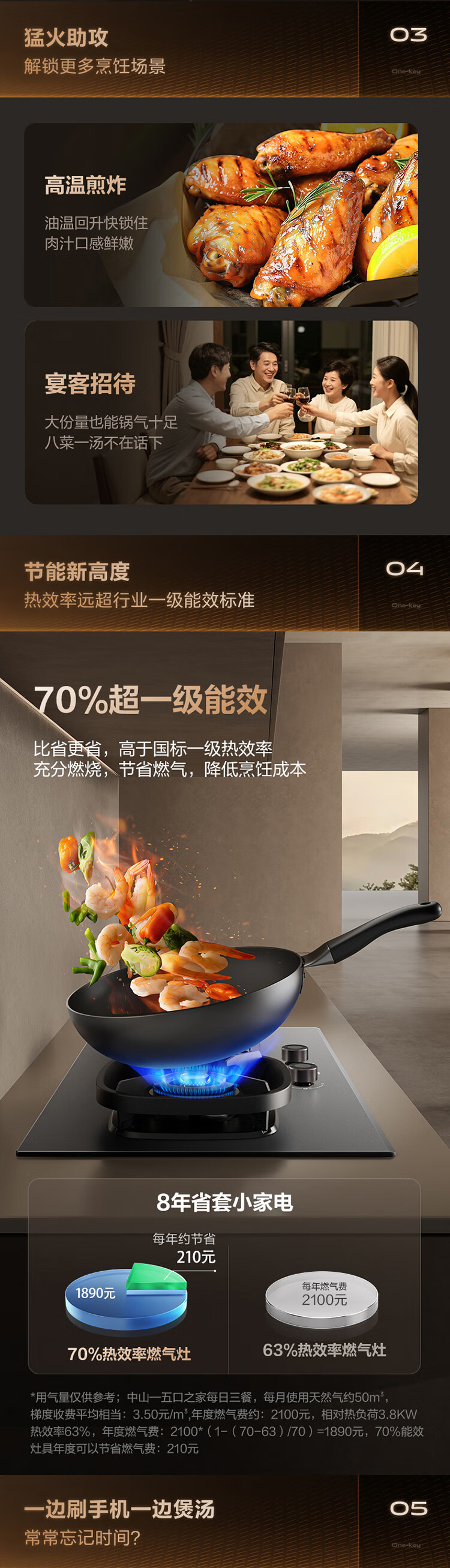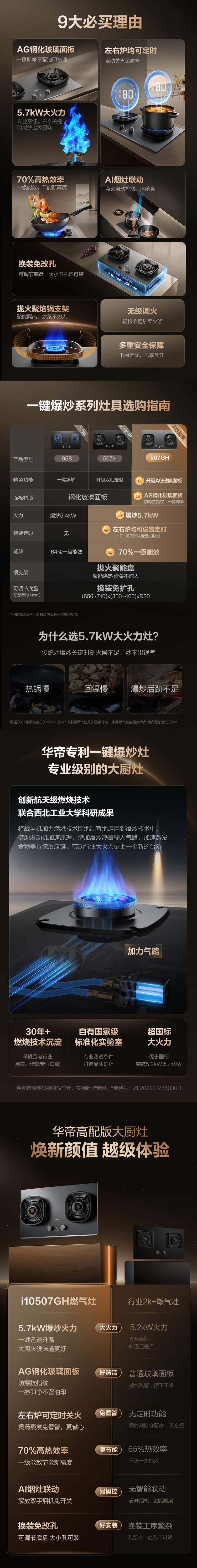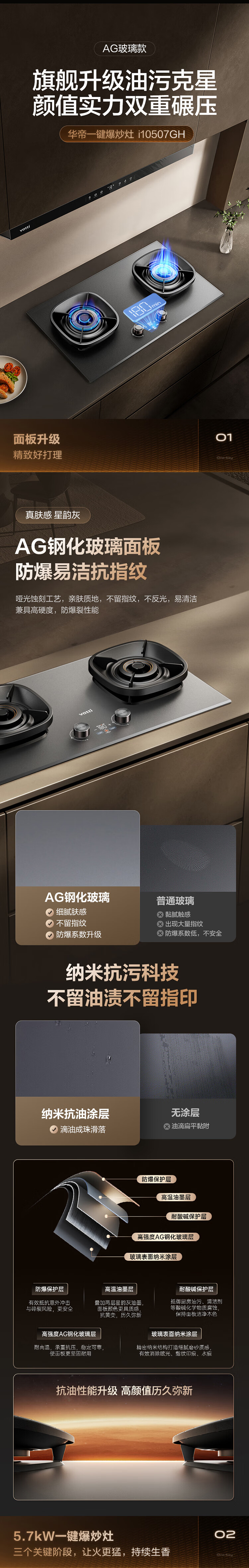 Vantage upgraded AG glass + timing + 70% thermal efficiency + linkage gas stove natural gas embedded 5.7kW stir-fried gas stove top i10507GH