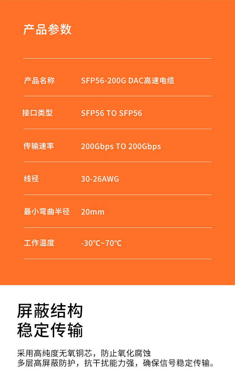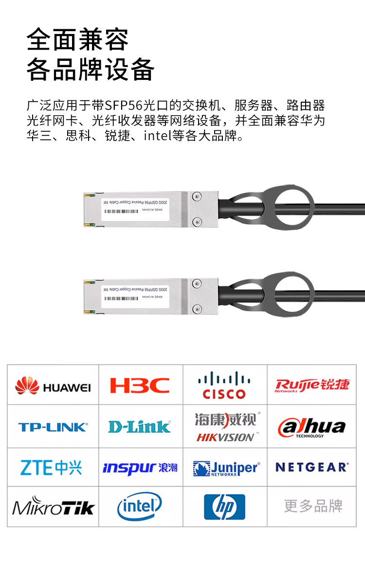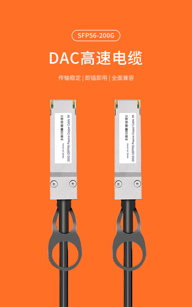 Rentian QSFP56-200G-DAC 10G high-speed copper cable stack direct-connect fiber optic cable compatible with Cisco neutral 0.5m RT-200G-05