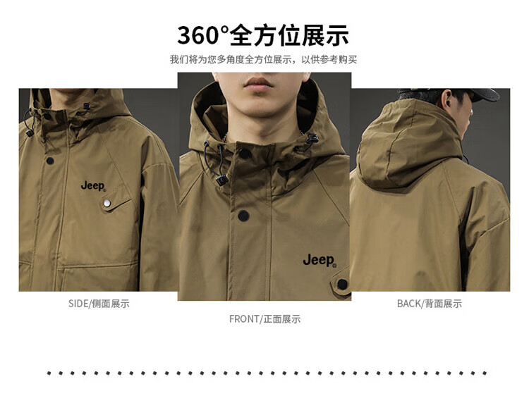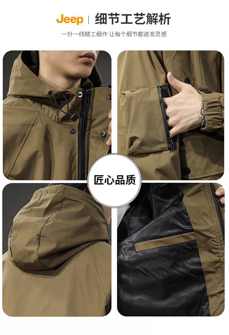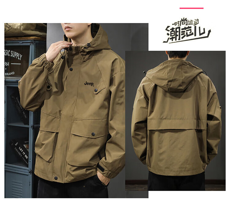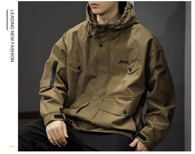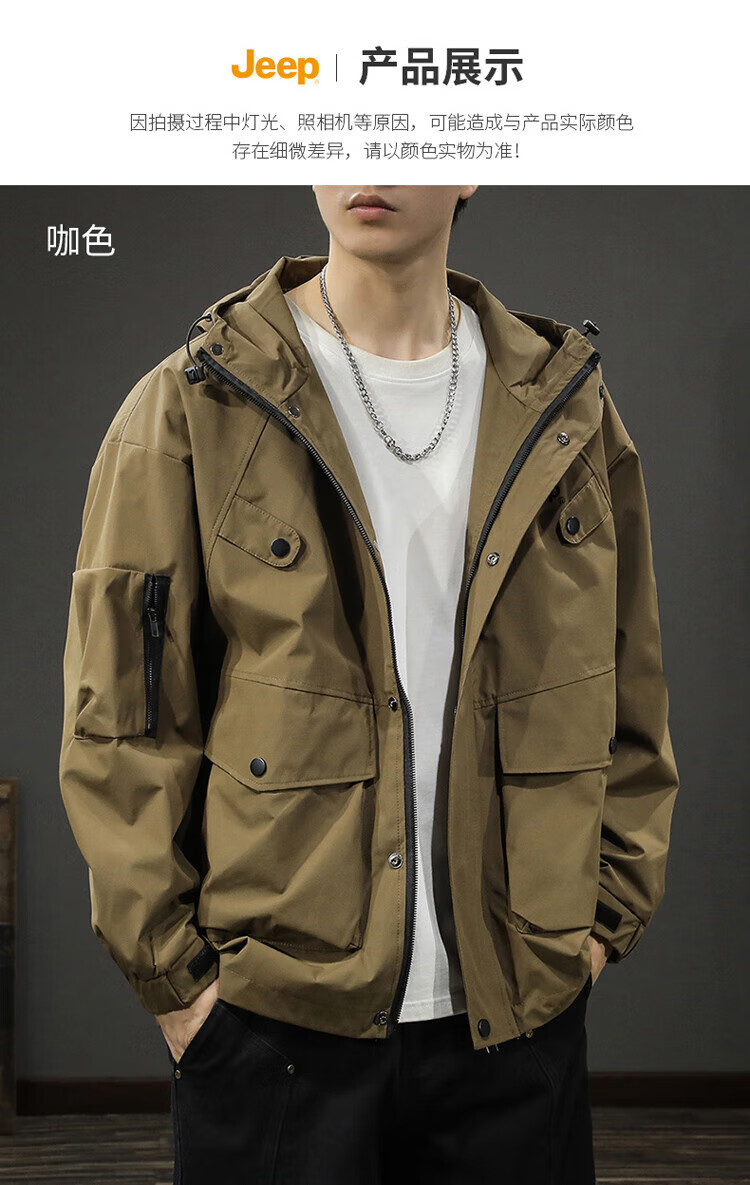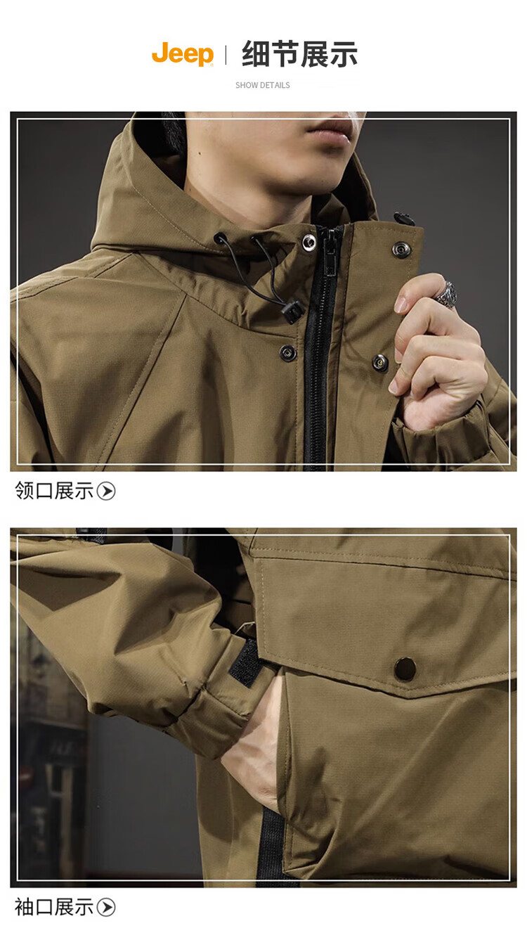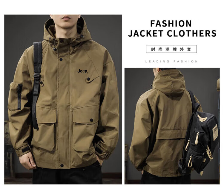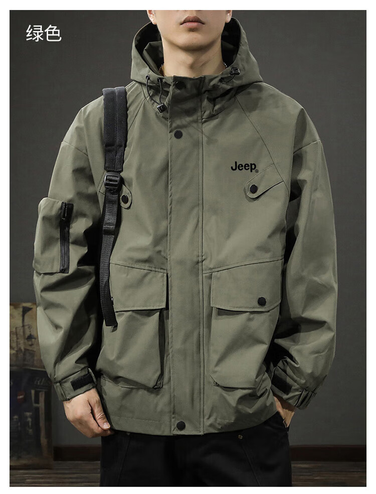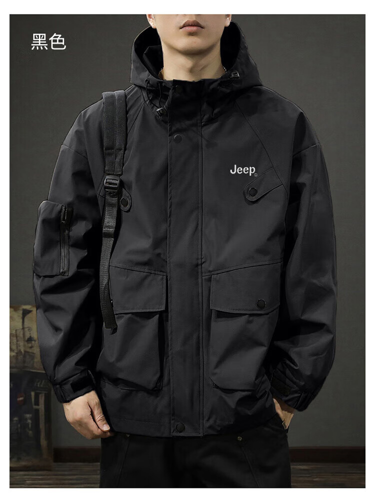 JEEP Jeep Jacket Men's Jacket Autumn and Winter Hooded Workwear Loose Charge Versatile Men's Clothing Black 2XL