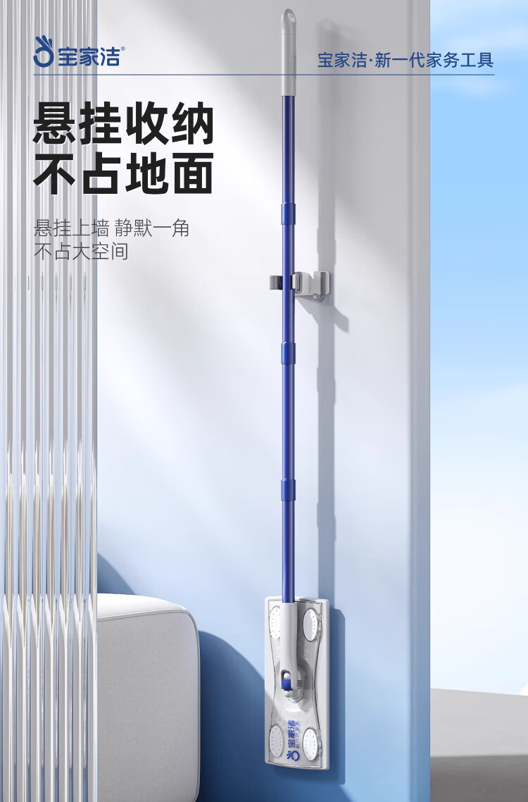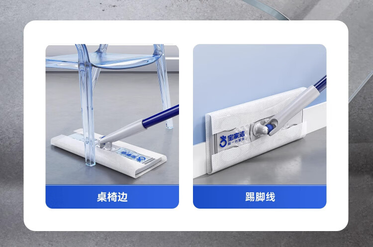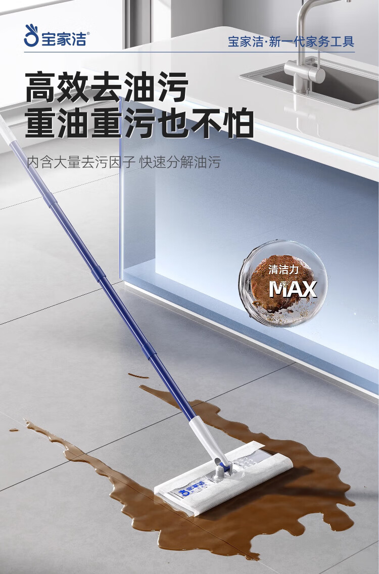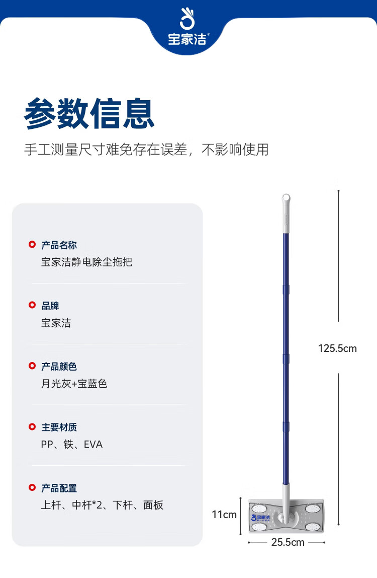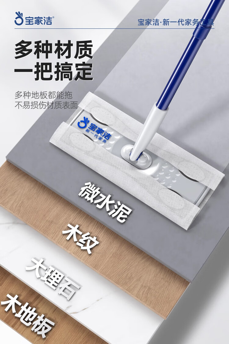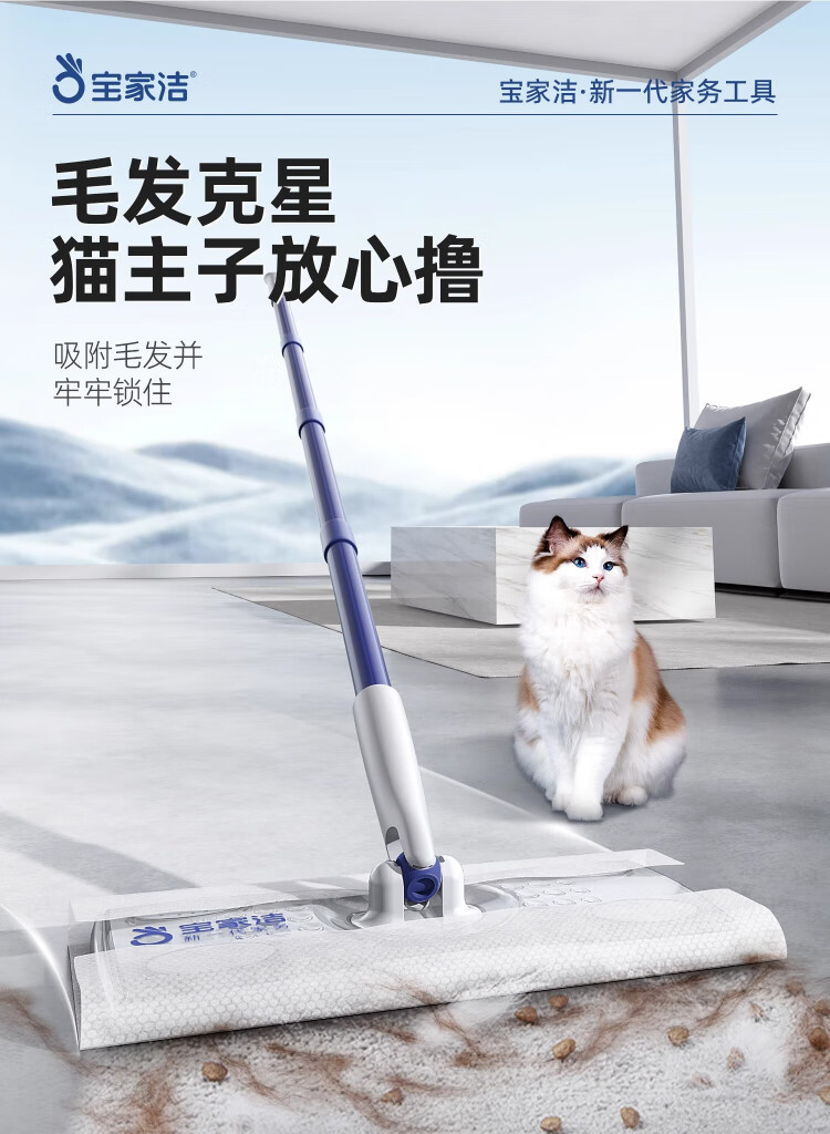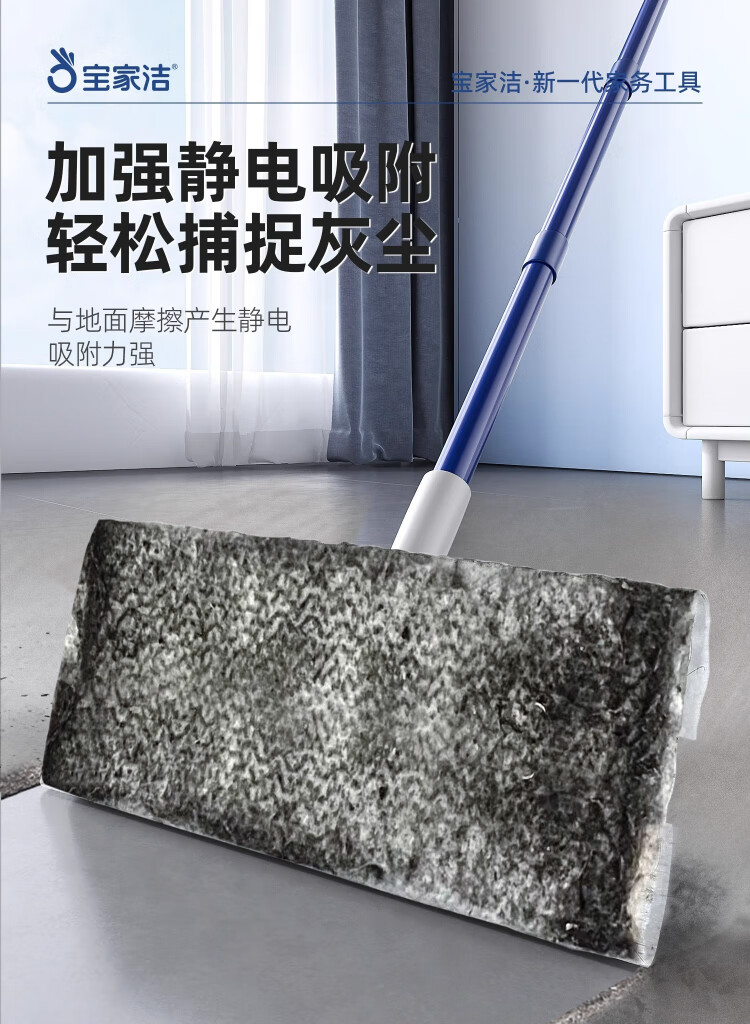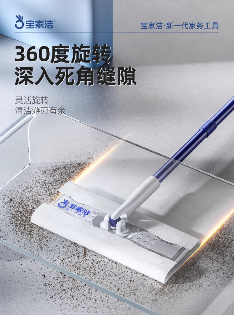 Baojiajie flat mop 25.5cm pole length 125.5cm comes with 1 pack of dry wipes and 1 pack of wet wipes XN01 electrostatic hand-washable mop