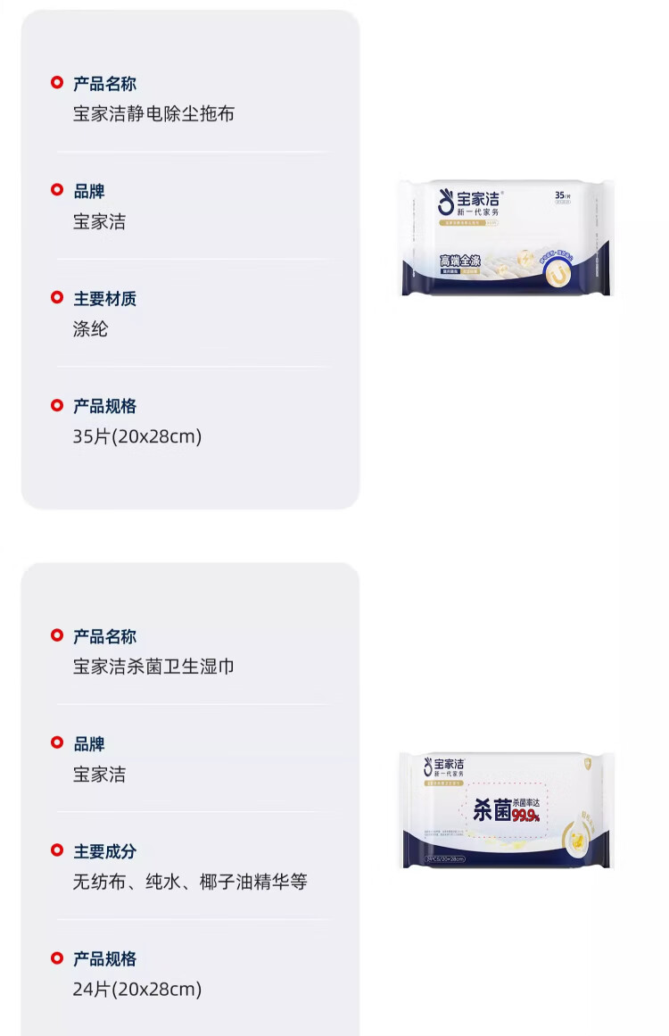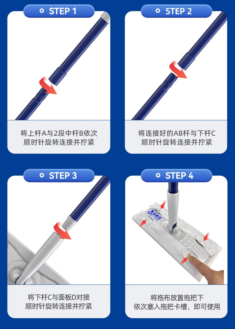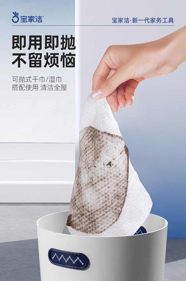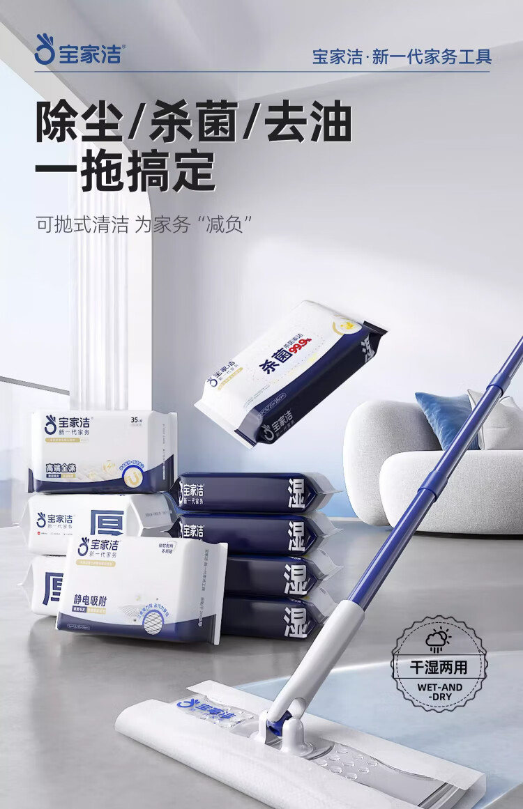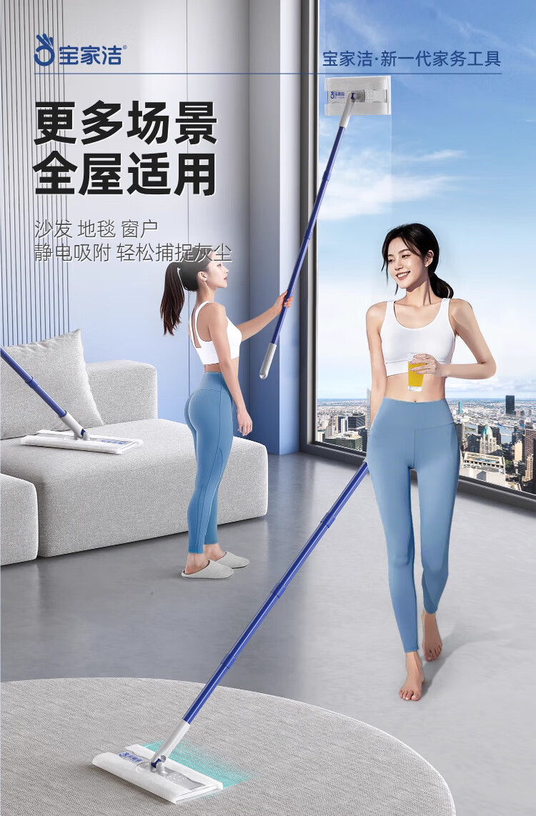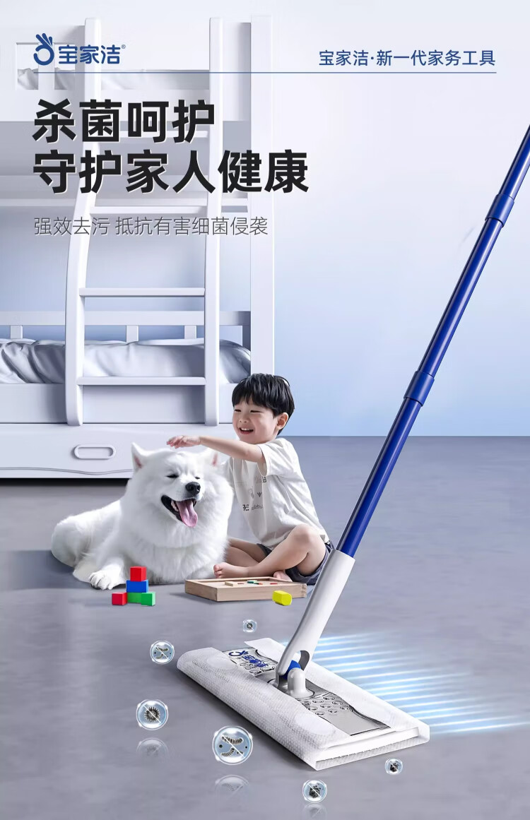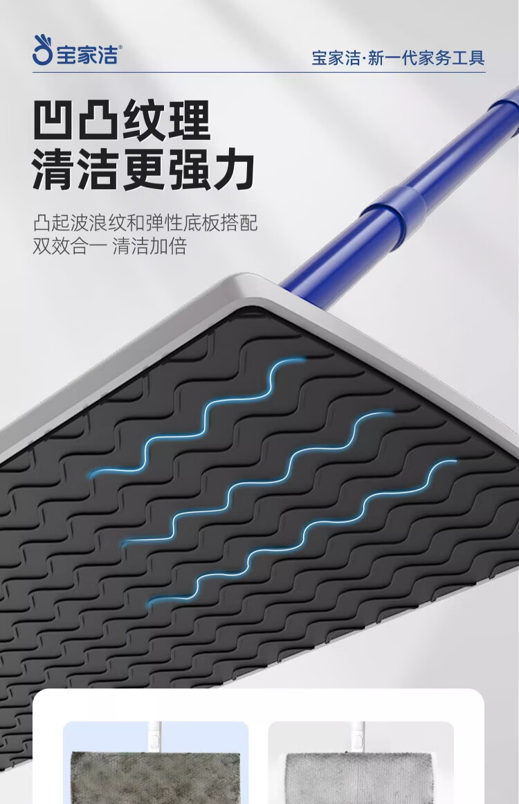 Baojiajie flat mop 25.5cm pole length 125.5cm comes with 1 pack of dry wipes and 1 pack of wet wipes XN01 electrostatic hand-washable mop