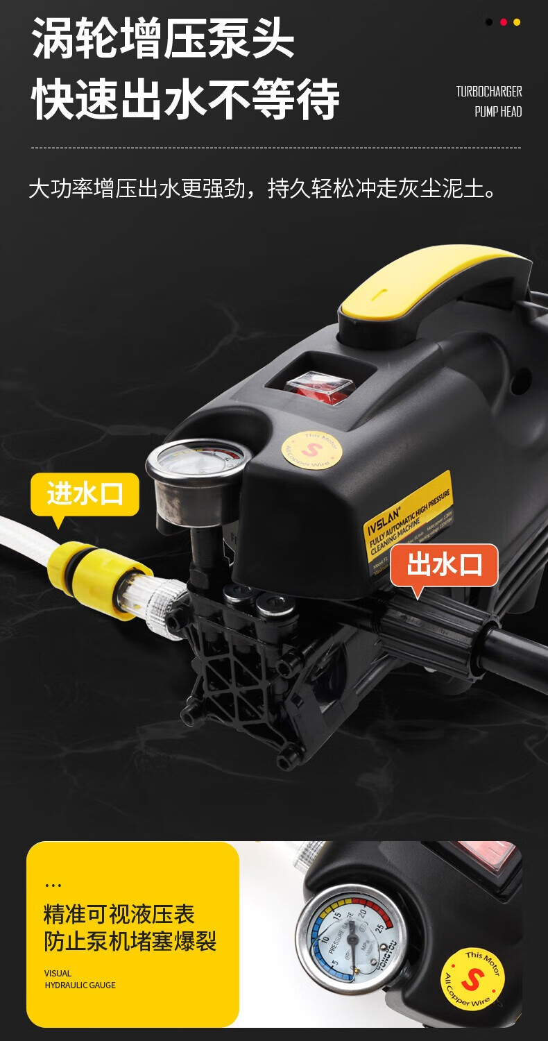 Ivslan small car washing machine 220v high-pressure household cleaning machine water pump powerful booster water gun artifact high-power flagship version 7 meters explosion-proof tube extended high-pressure gun
