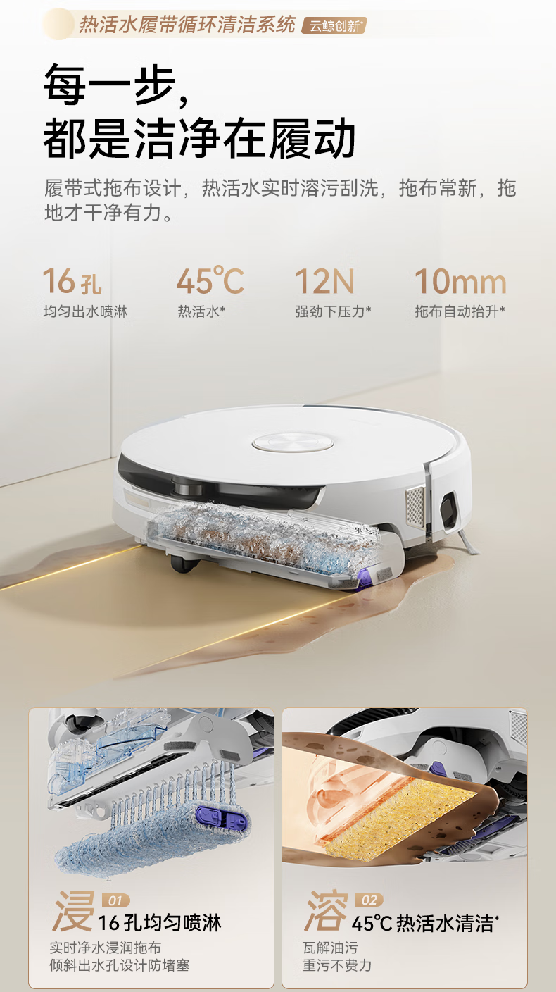 Cloud Whale flagship hot model sweeping robot J6 living water crawler floor scrubber sweeping and mopping all-in-one automatic cleaning fully automatic washing and mopping floor machine ultra-thin upper and lower water version