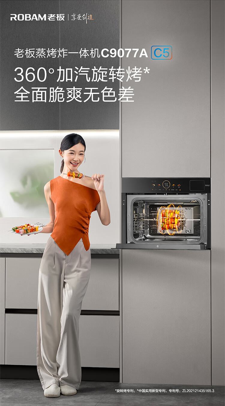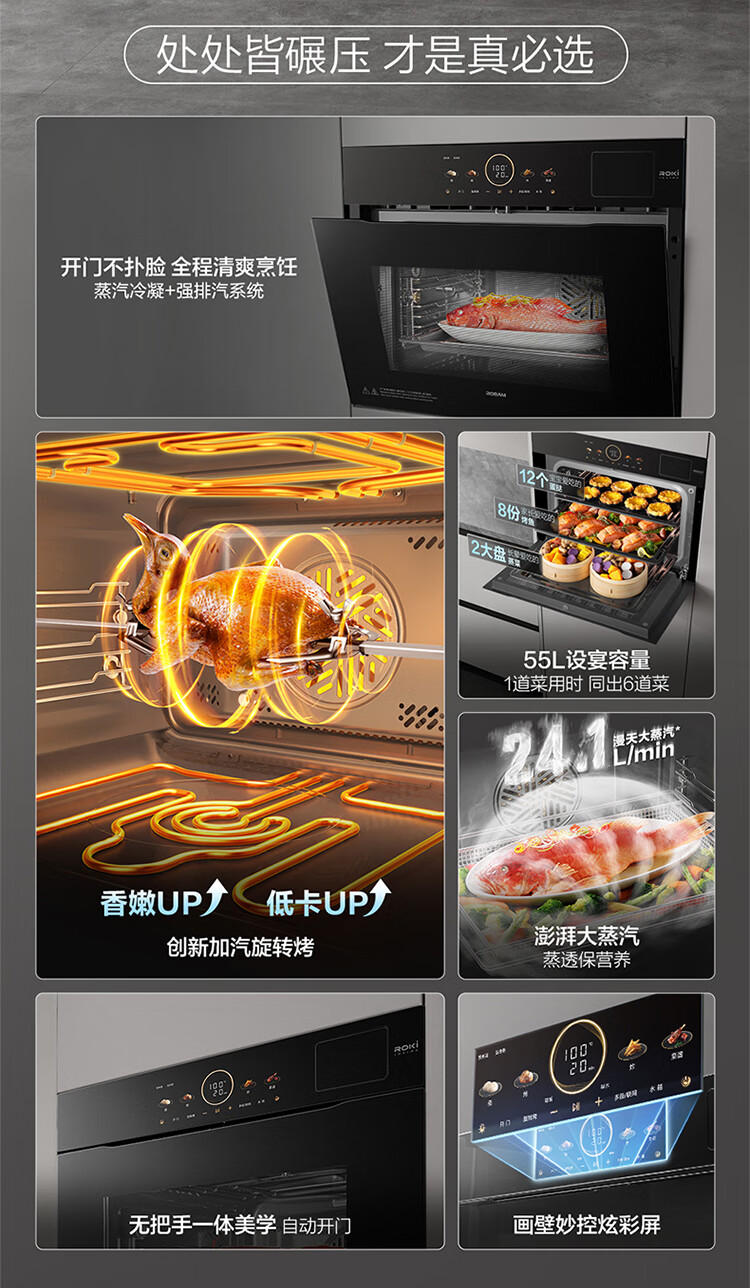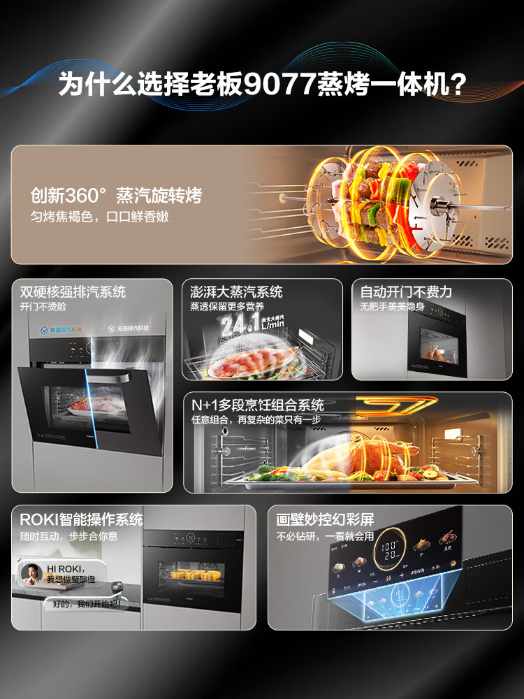 Robam Steam Rotary Grill New Variable Frequency Steaming and Oven All-in-one Machine Magic Control Colorful Large Screen Strong Exhaust Steam without Smoking Your Face Embedded Household Salt System C9077A-C5