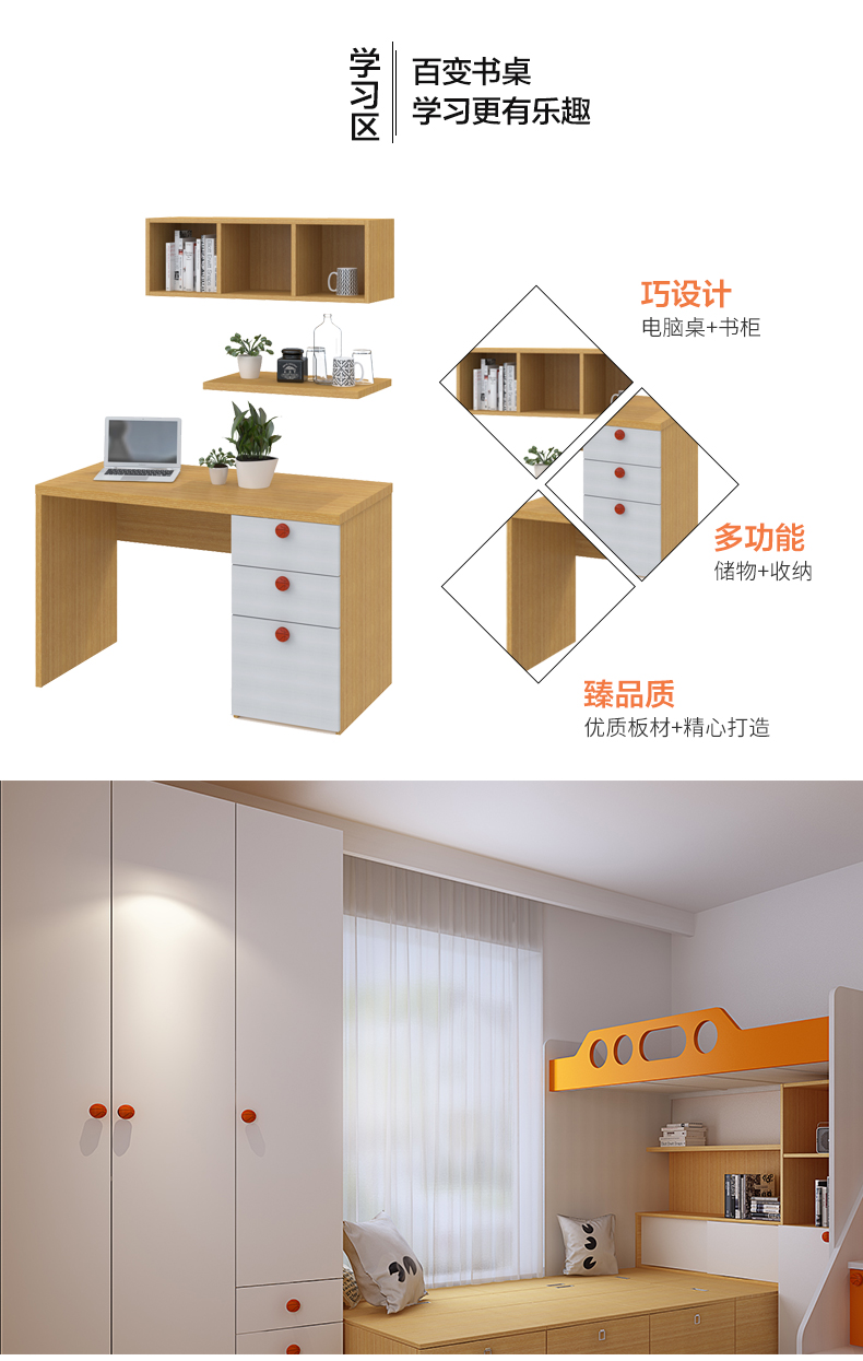 Customized bed, chair, desk, wardrobe and furniture combination for Bologna teenagers' bedroom space. Customized prepayment. Prepayment | Consult for details.