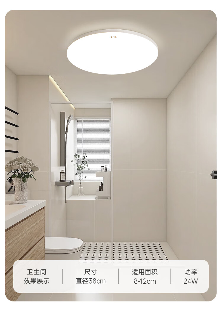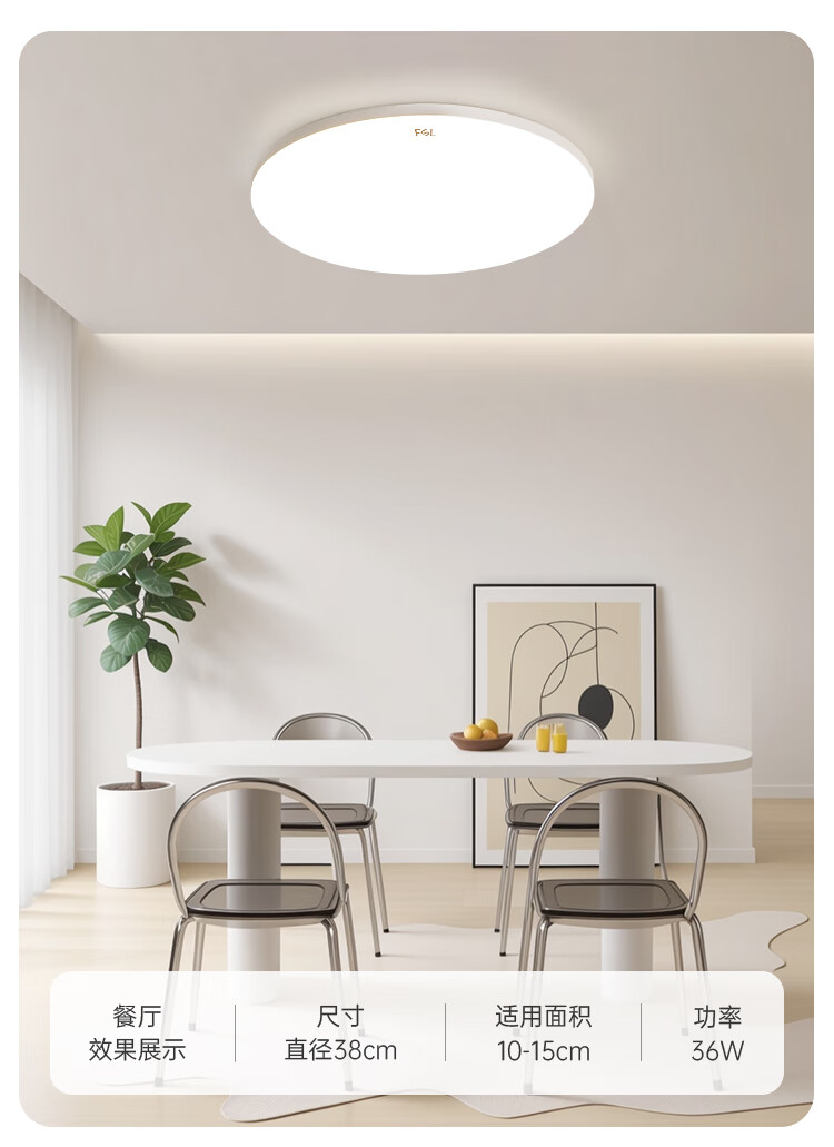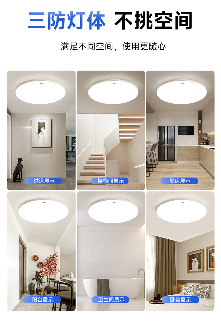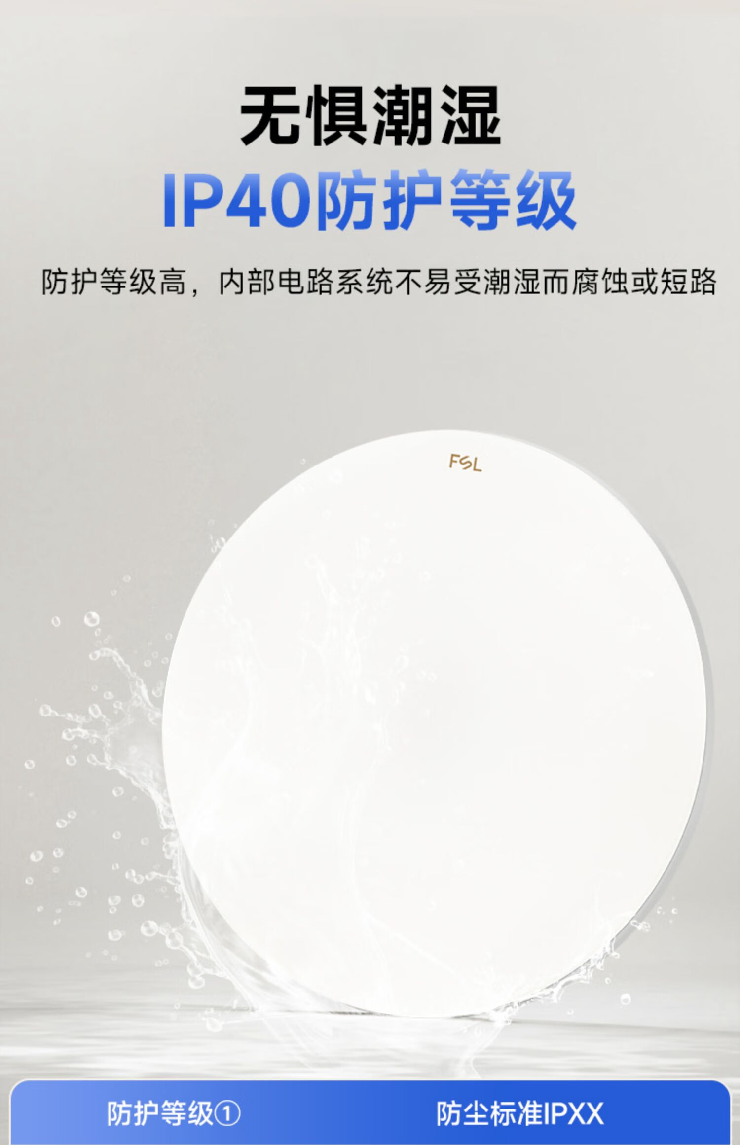 FSL Foshan Lighting Full Spectrum Three-proof Ceiling Lamp Bedroom Kitchen Balcony Lamp Moisture-proof Dust-proof Mosquito-proof Simple Ultra-thin 18W White Light (6000K) Size 300*53mm