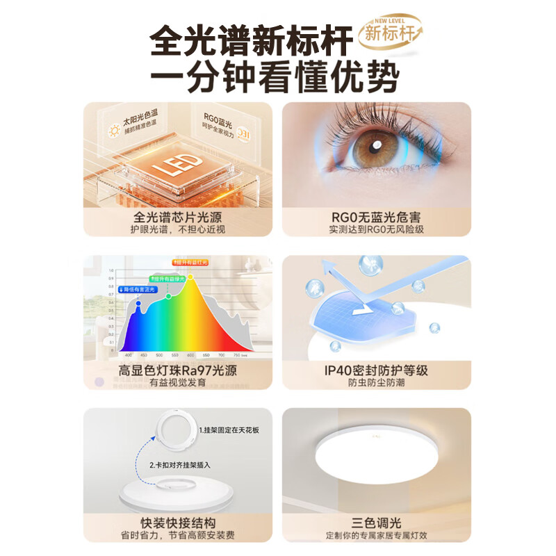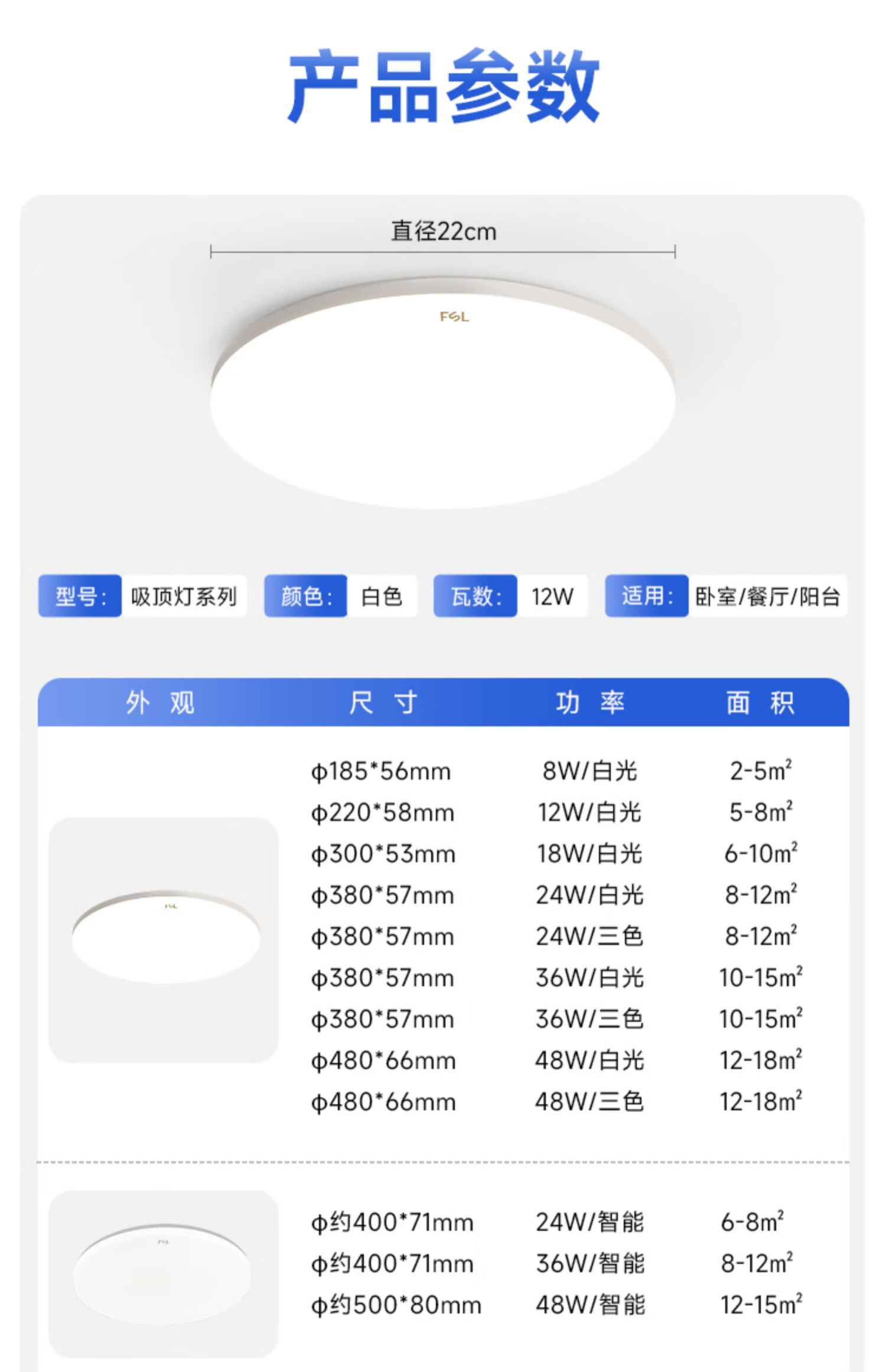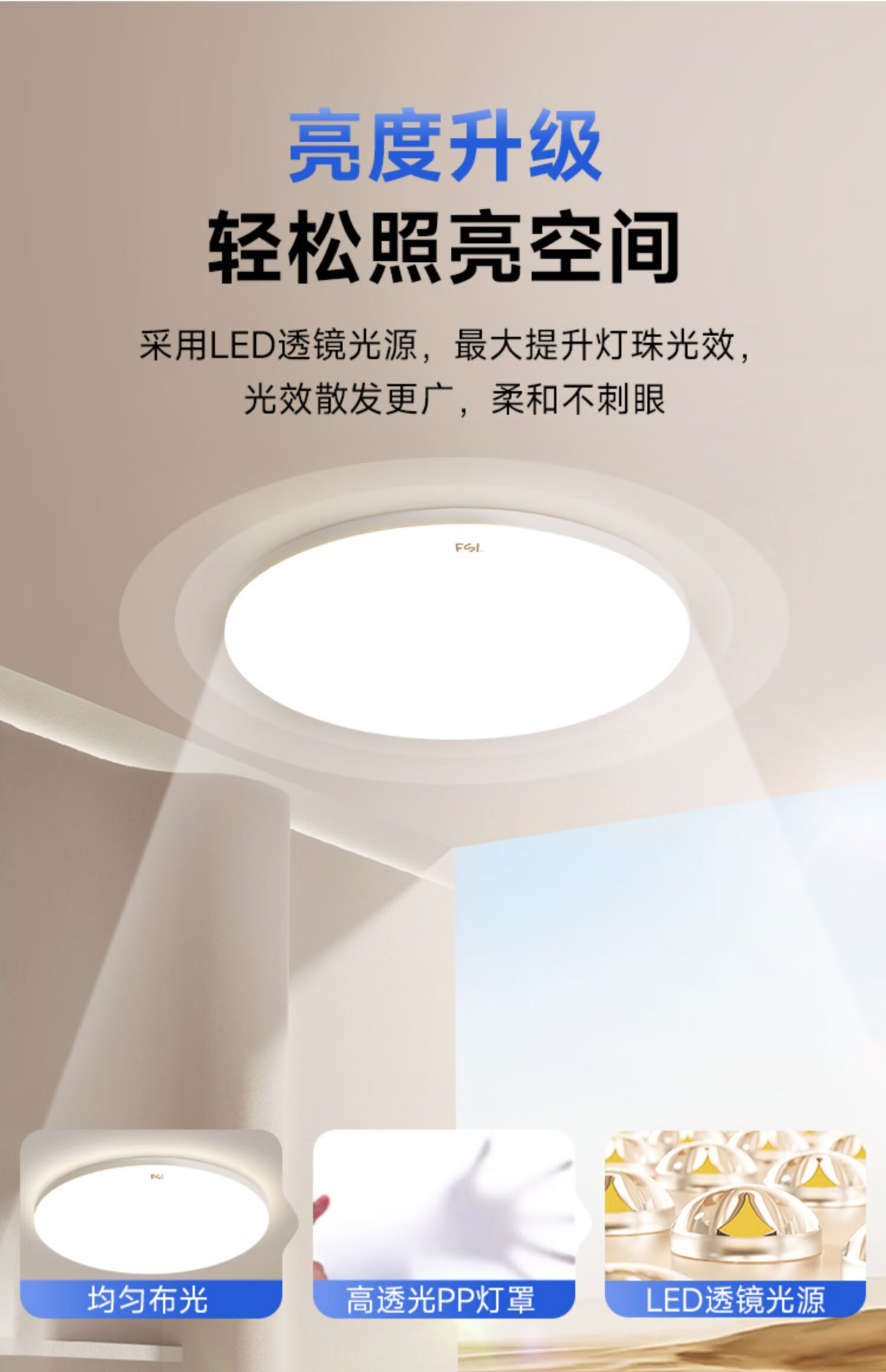 FSL Foshan Lighting Full Spectrum Three-proof Ceiling Lamp Bedroom Kitchen Balcony Lamp Moisture-proof Dust-proof Mosquito-proof Simple Ultra-thin 18W White Light (6000K) Size 300*53mm