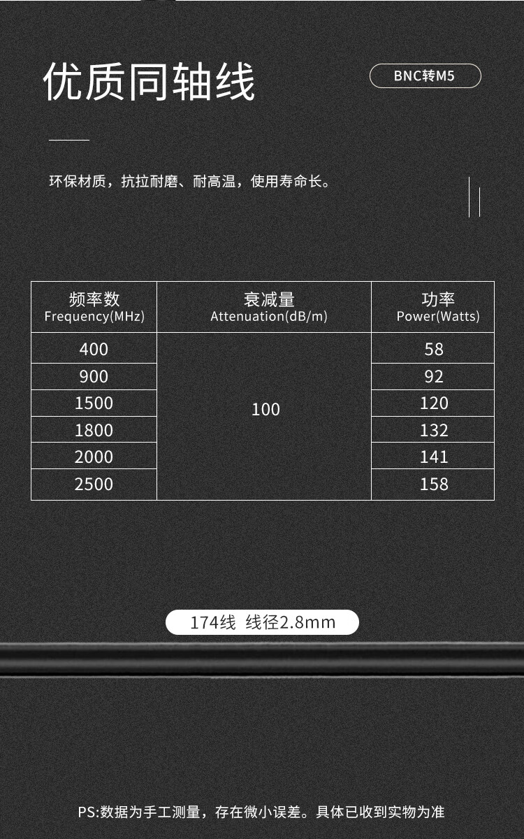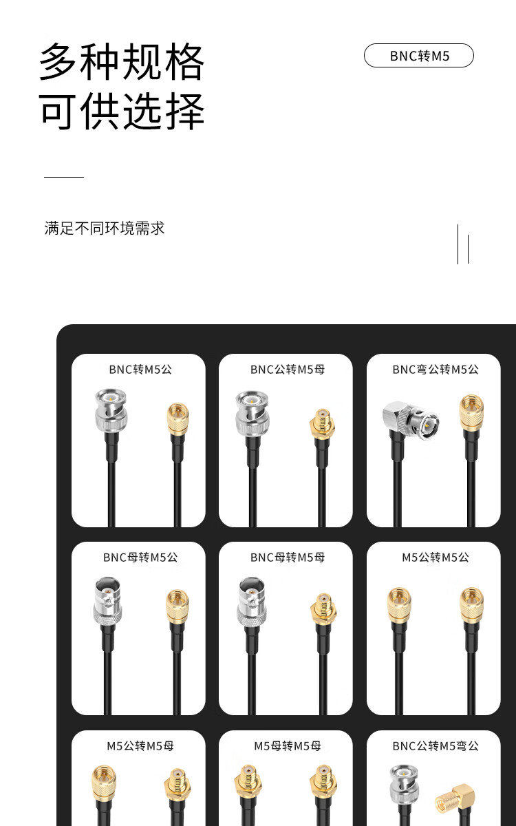 Jiudingxin BNC male to M5 male/L5 male acceleration sensor vibration test cable 10-32UNF BNC to M5 adapter cable 1.5 meters JDX-BM5-JJ-3