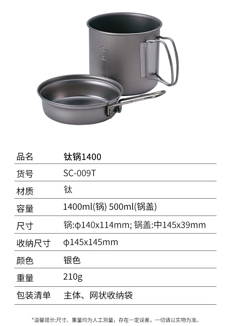 Snow Peak outdoor camping lightweight picnic titanium personal pot 900ml SCS-008T