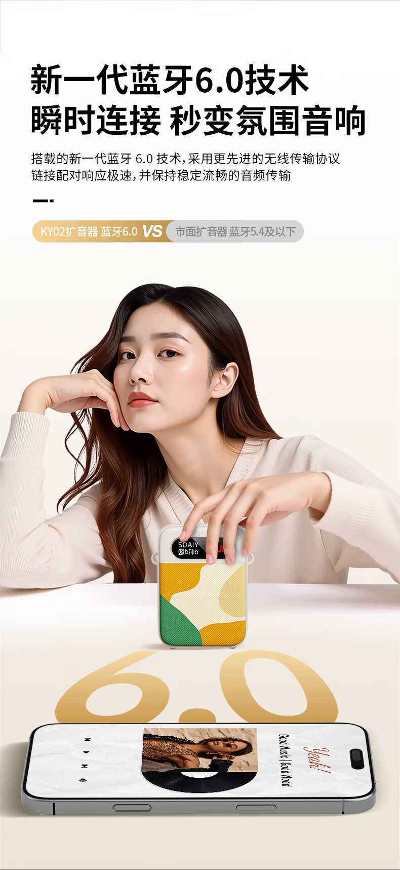 Sony Ericsson (soaiy) KY02 Wireless Lavalier Anti-Squealing Bee Amplifier Teacher's Special Long-Endurance Bluetooth Speaker Audio Microphone Class Teaching Guide Outdoor Strap Portable White