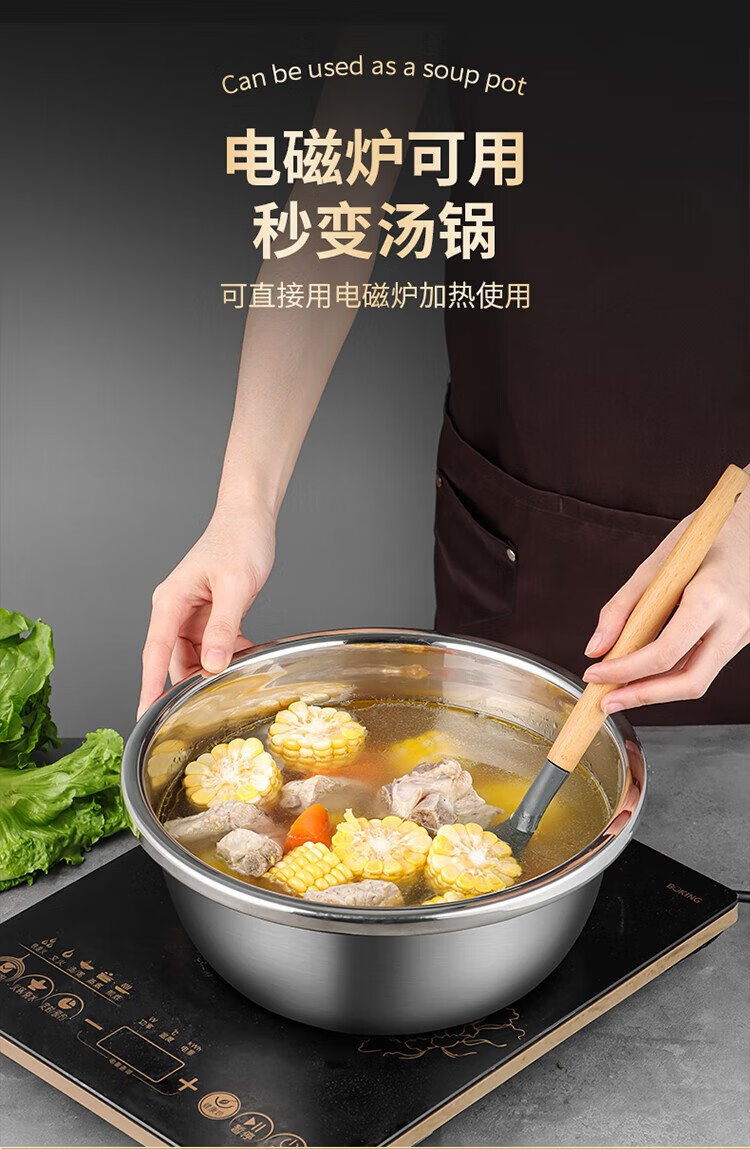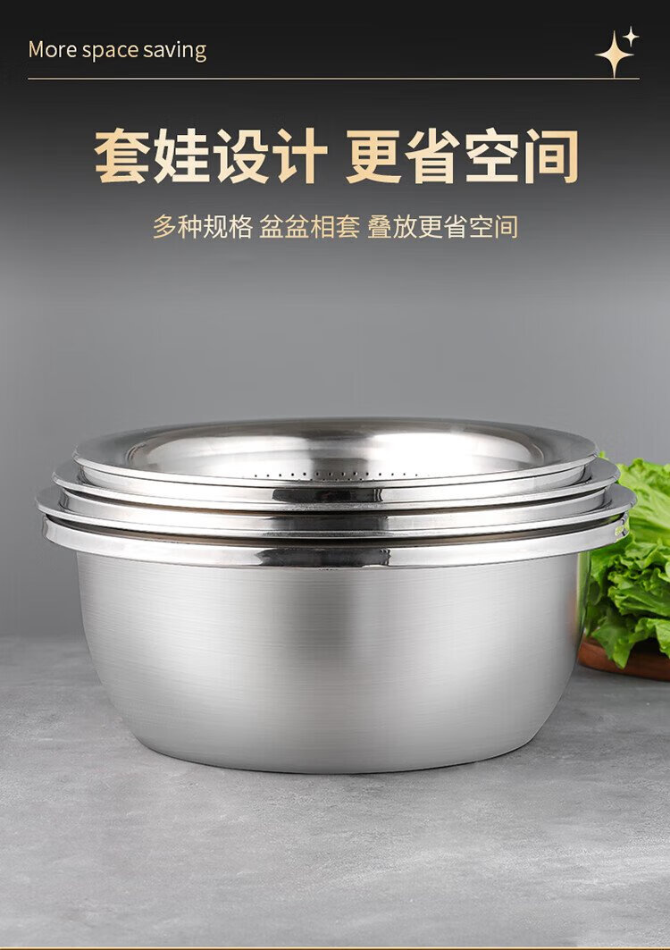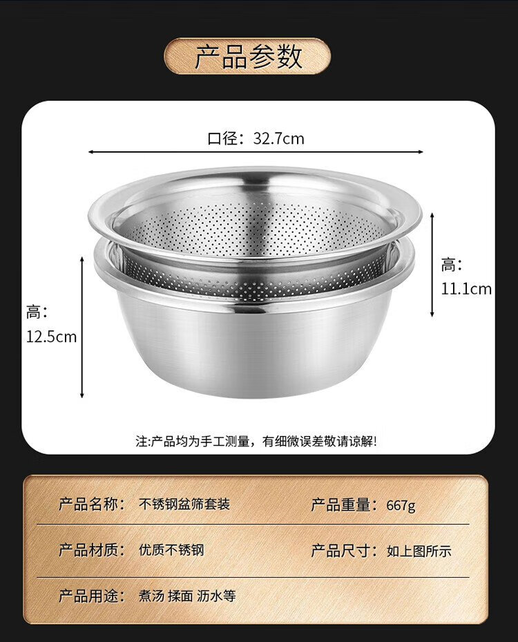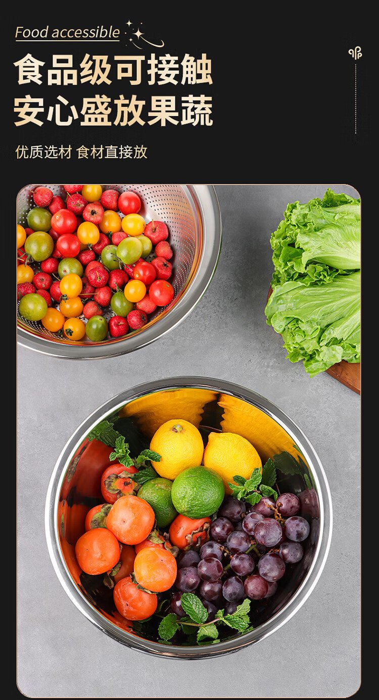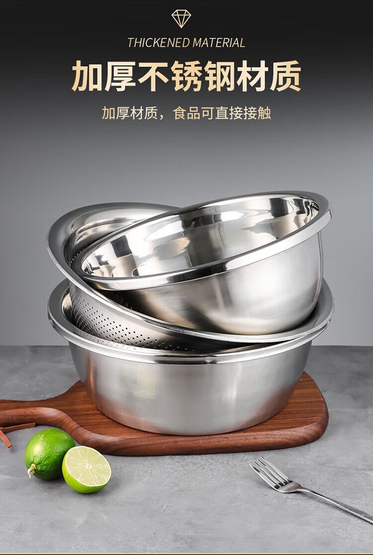 Baijie stainless steel drain basket washing basin rice washing basin kitchen fruit basin rice washing sieve drain basin large set 32cm