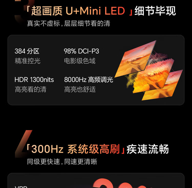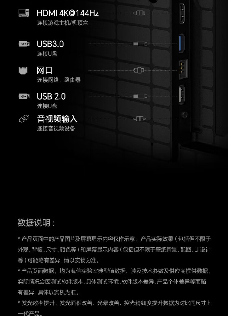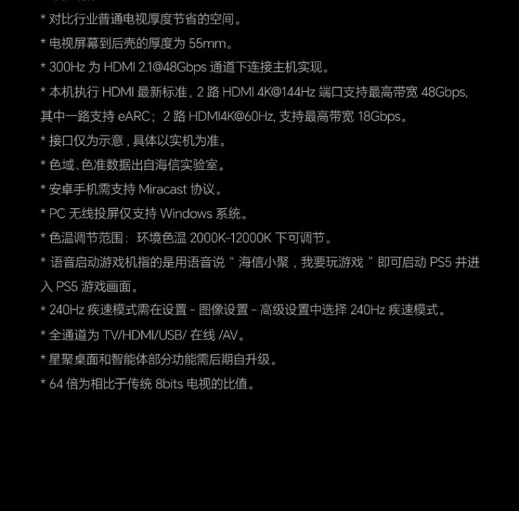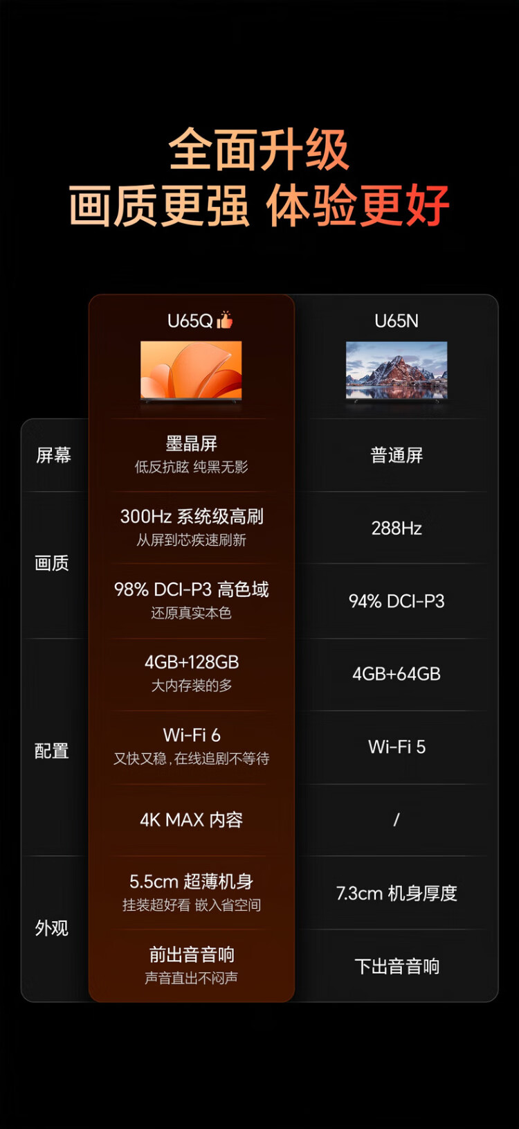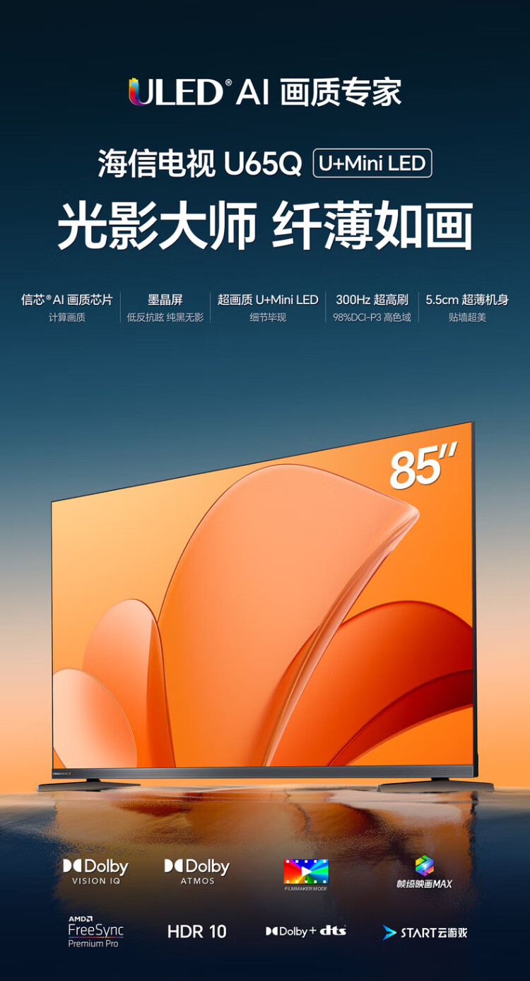 Hisense 85U65Q 85-inch flat-panel TV, black crystal screen, super picture quality U+MiniLED, 300Hz fast high refresh rate, 4GB+128GB