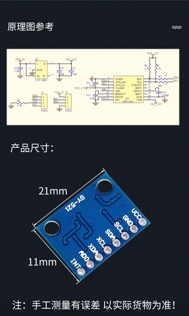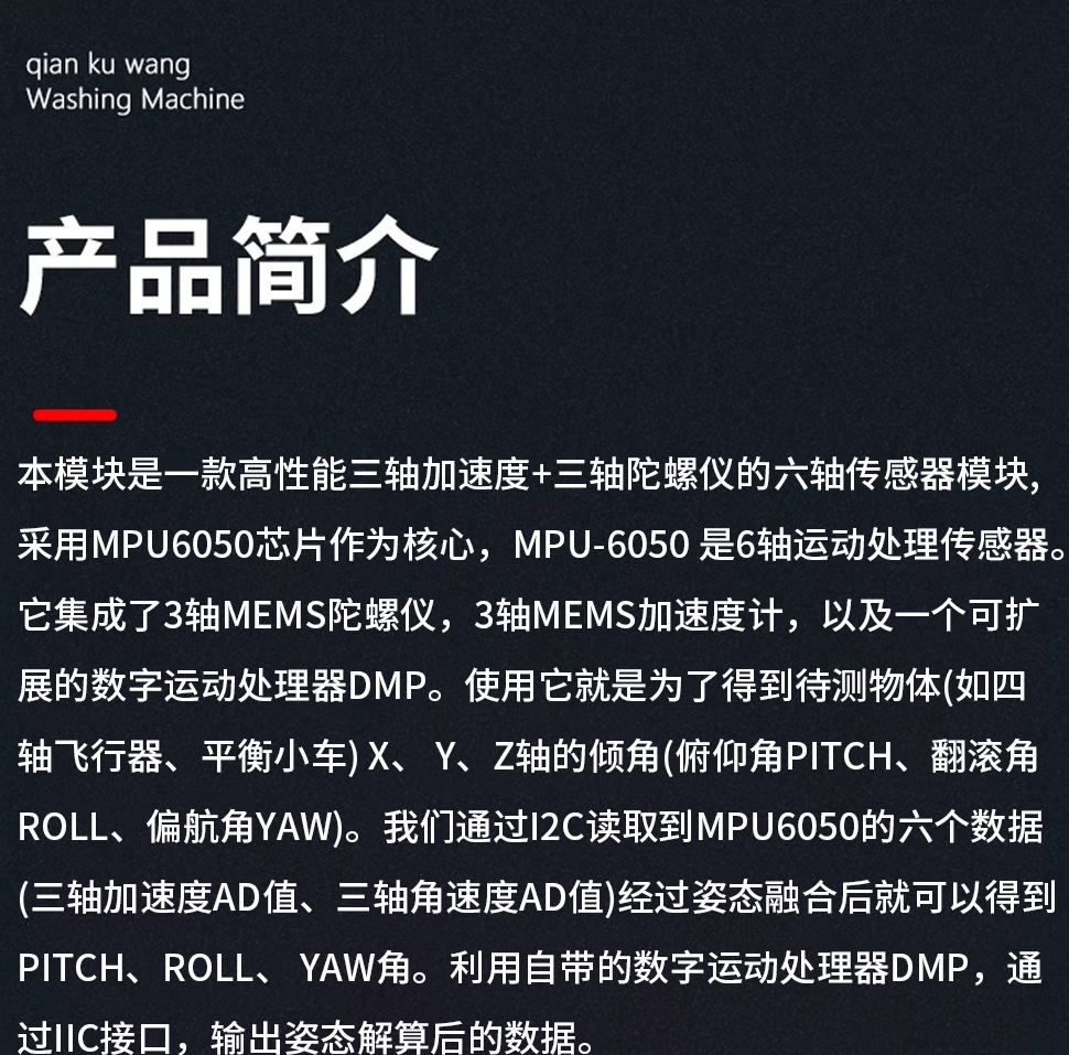 ZAVE MPU6050 module three-dimensional angle sensor 6DOF three-axis accelerometer electronic gyroscope