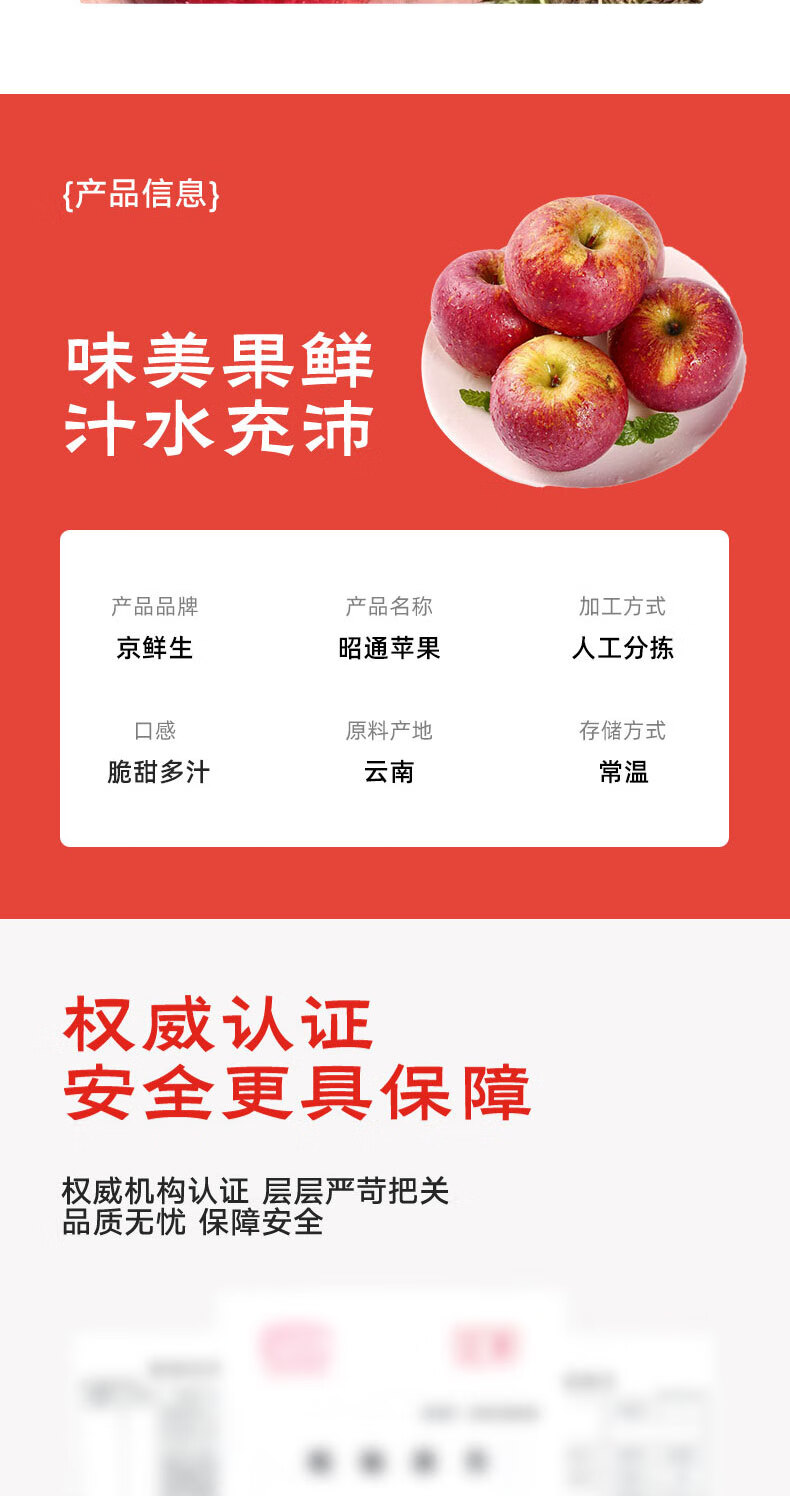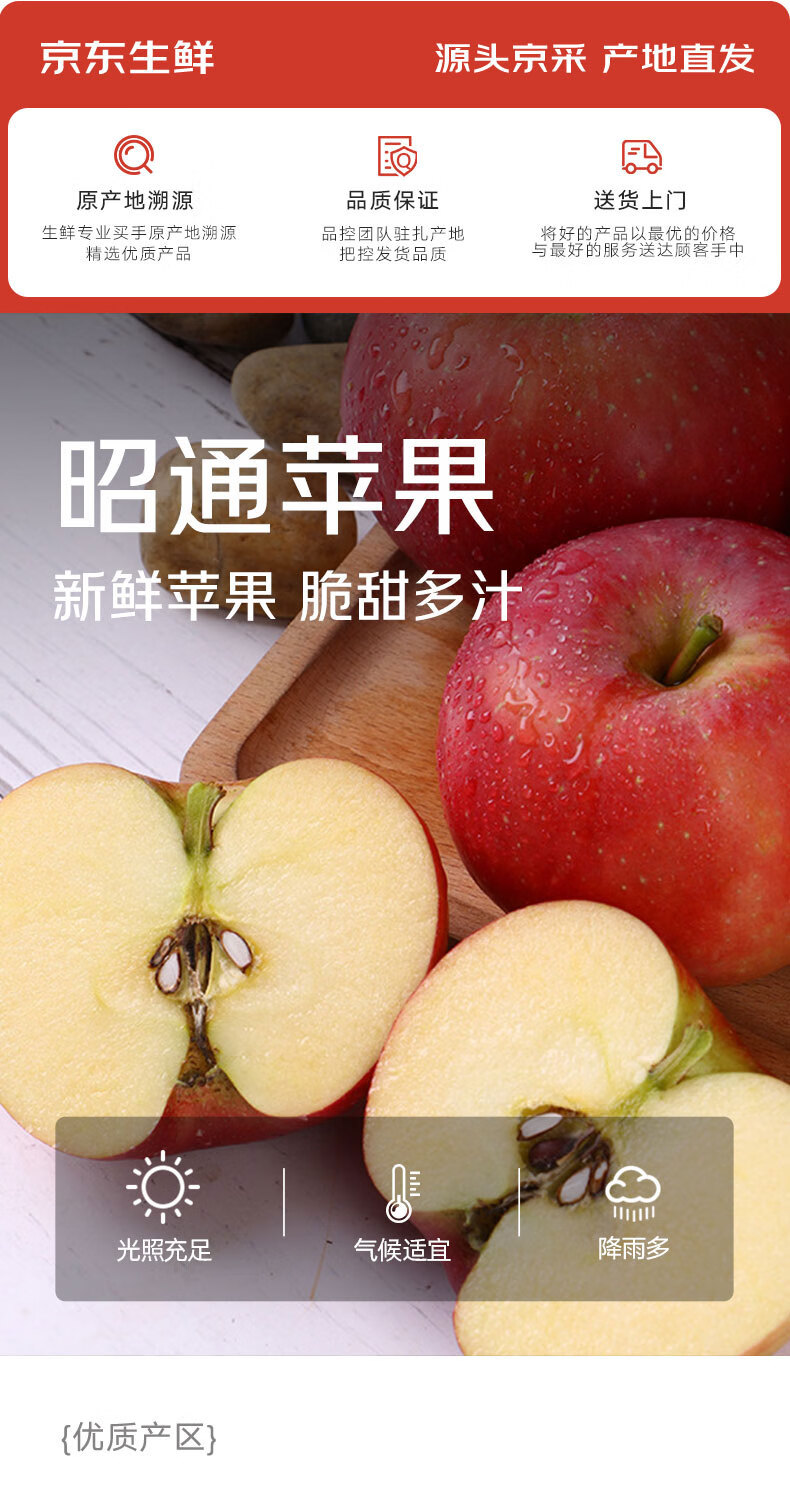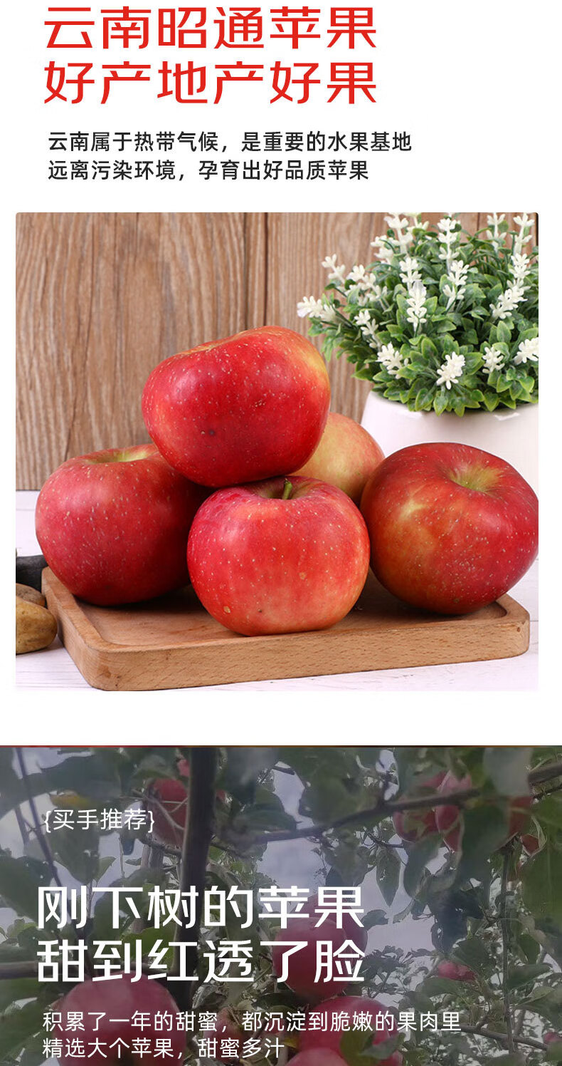 Jingxiansheng Yunnan Zhaotong Red General Apple, net weight 5 pounds, single fruit 80mm + fresh fruit, direct delivery from the source, free shipping