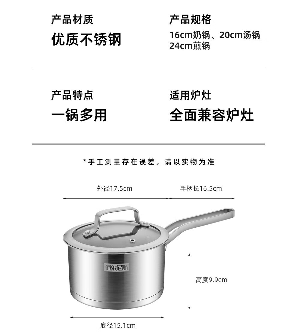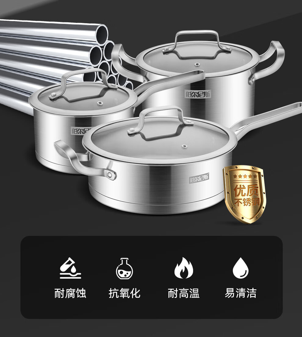 Bernice Hulls three-piece set milk pot + soup pot + frying pan BENS-355hes Hulls three-piece set