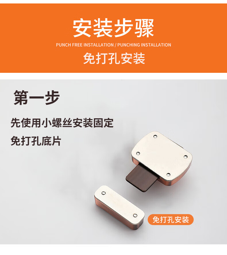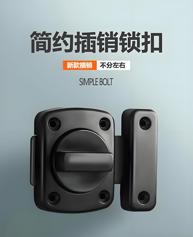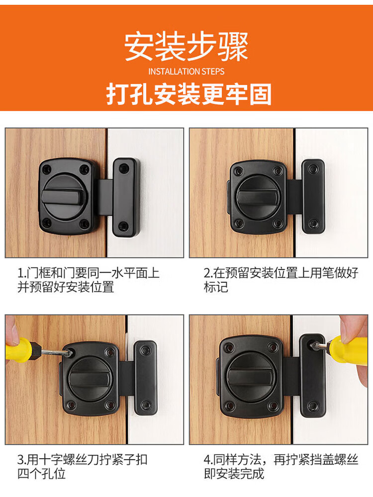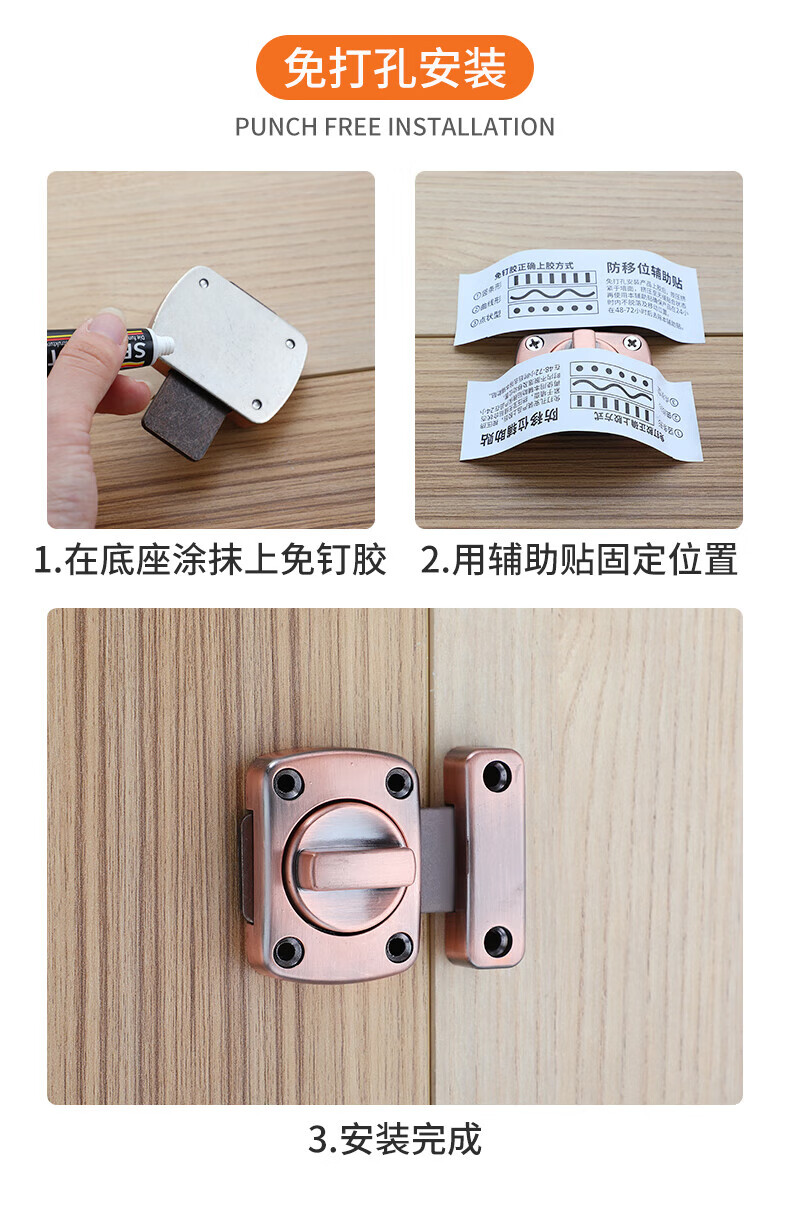 Honggong punch-free latch door bolt door buckle anti-theft bathroom bedroom anti-lock artifact anti-lock buckle no punch large black