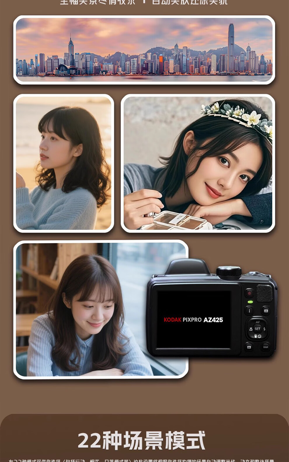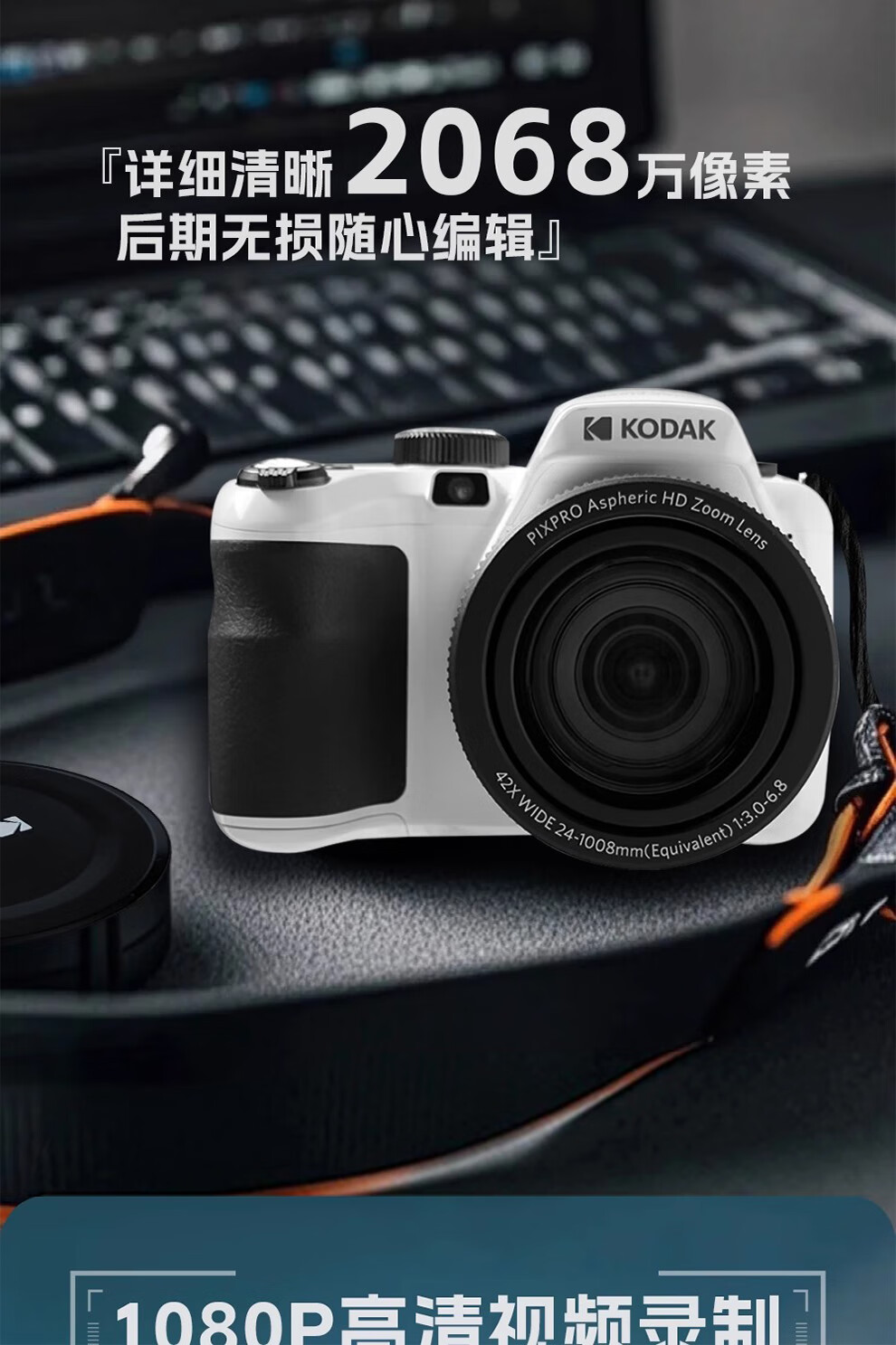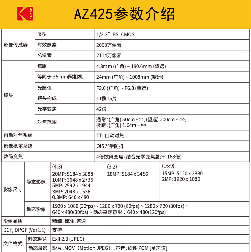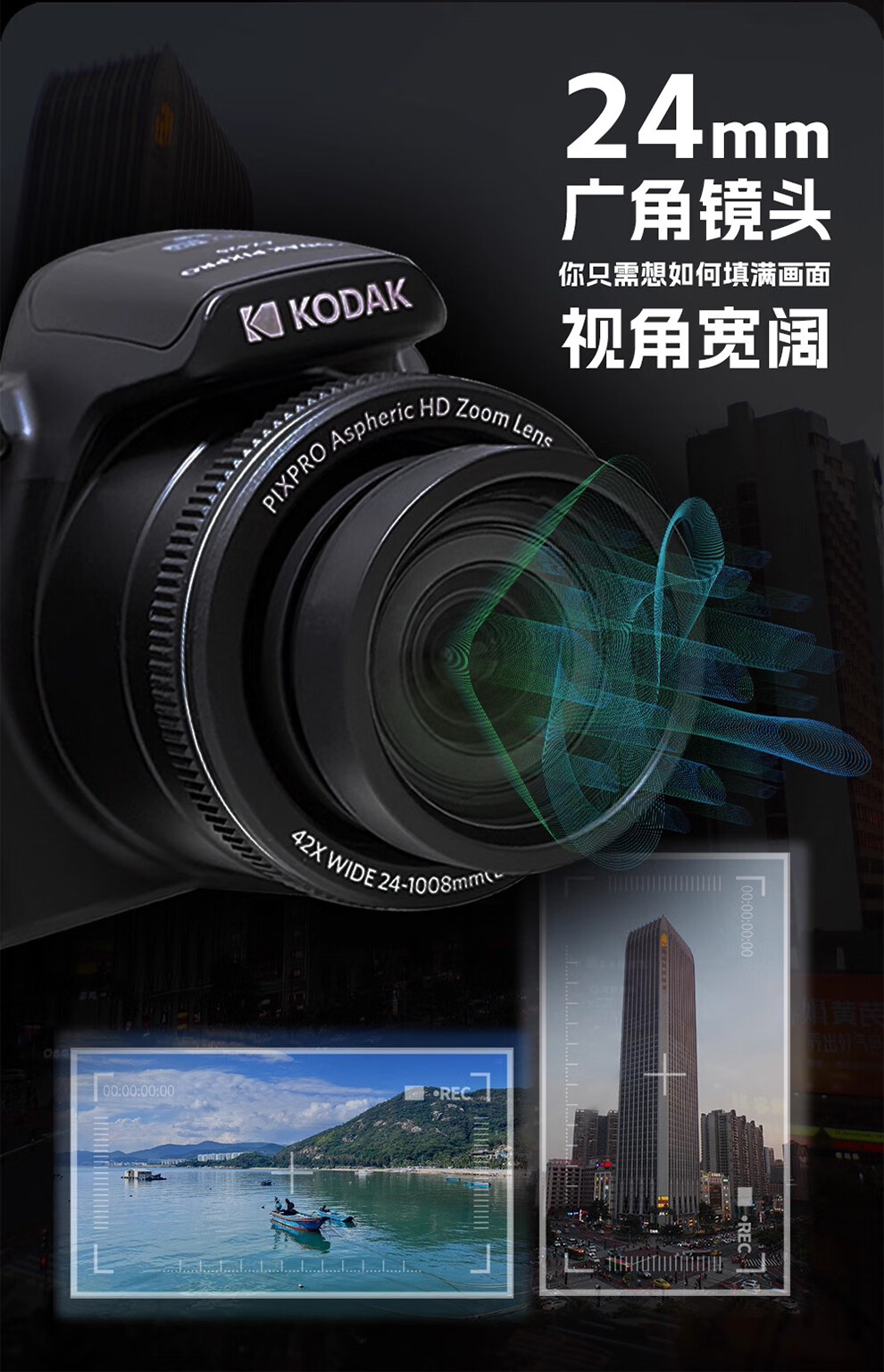 KODAKAZ425 telephoto camera 20.68 million pixels BSI CMOS 3-inch screen 42x optical zoom 24mm wide angle black suit (comes with 32G card + card reader + bag)