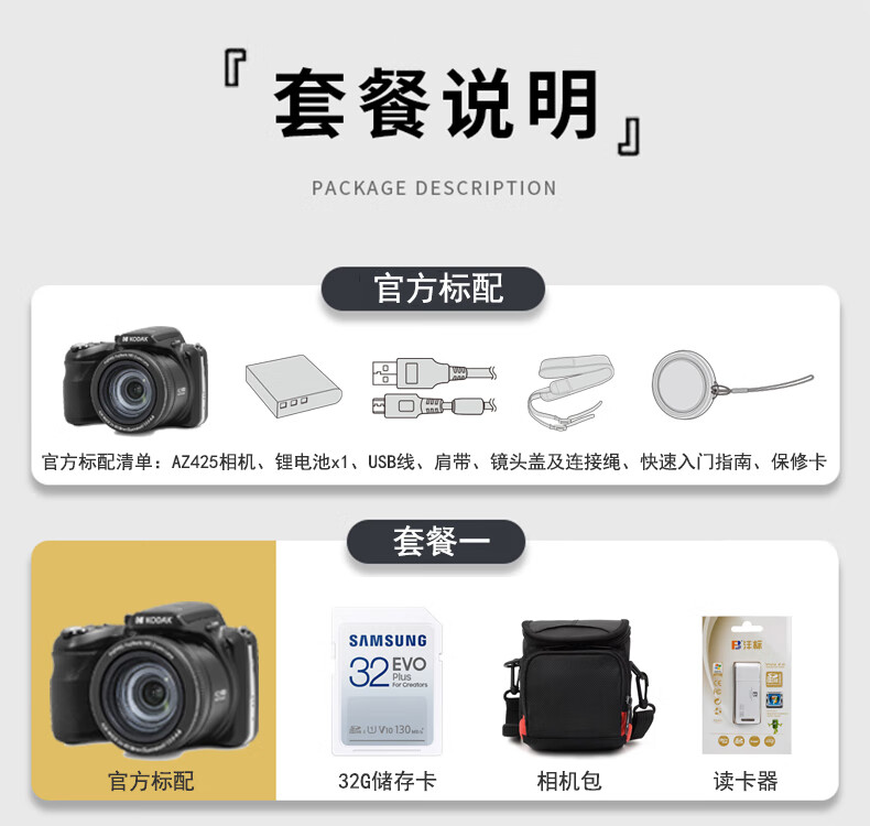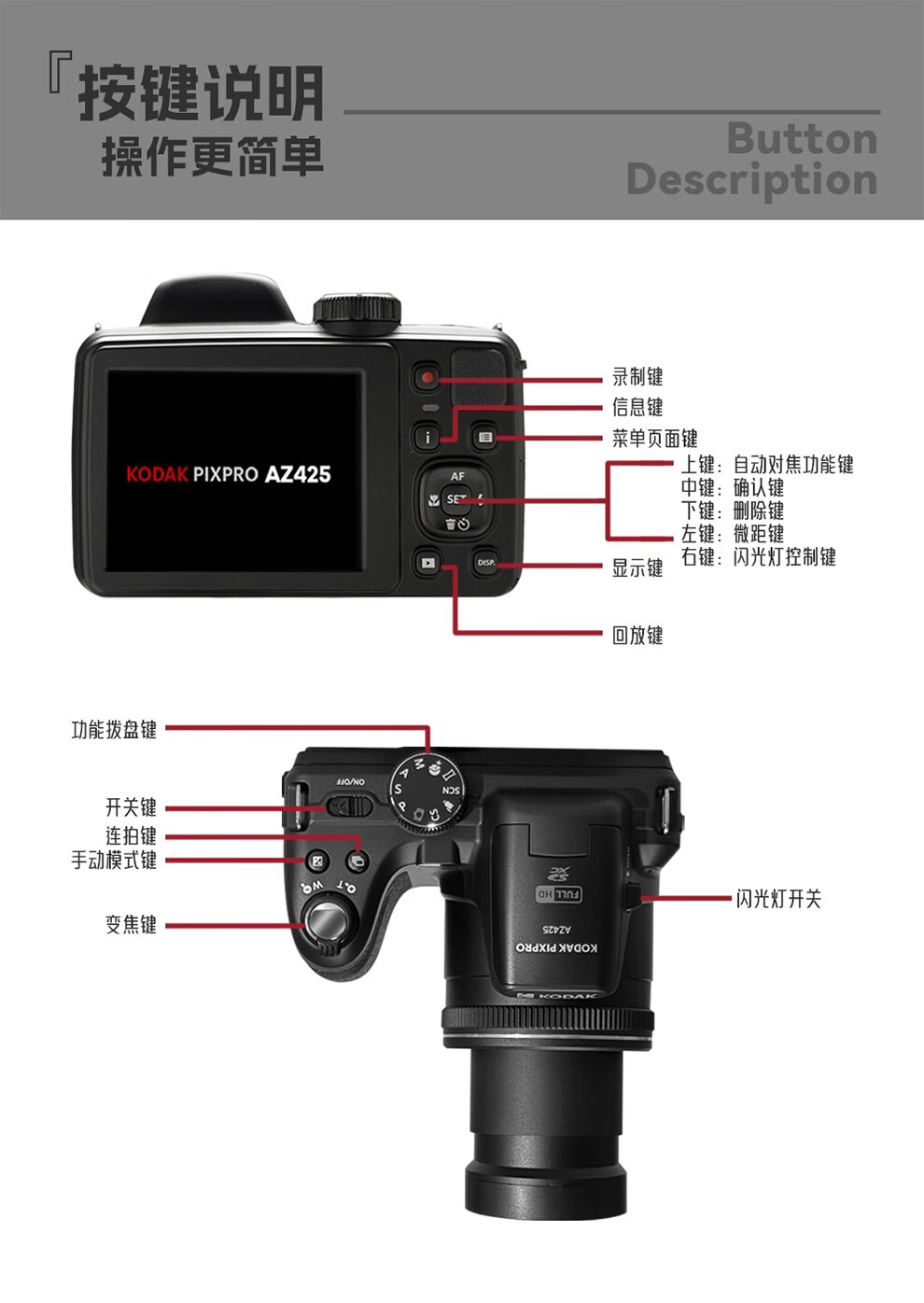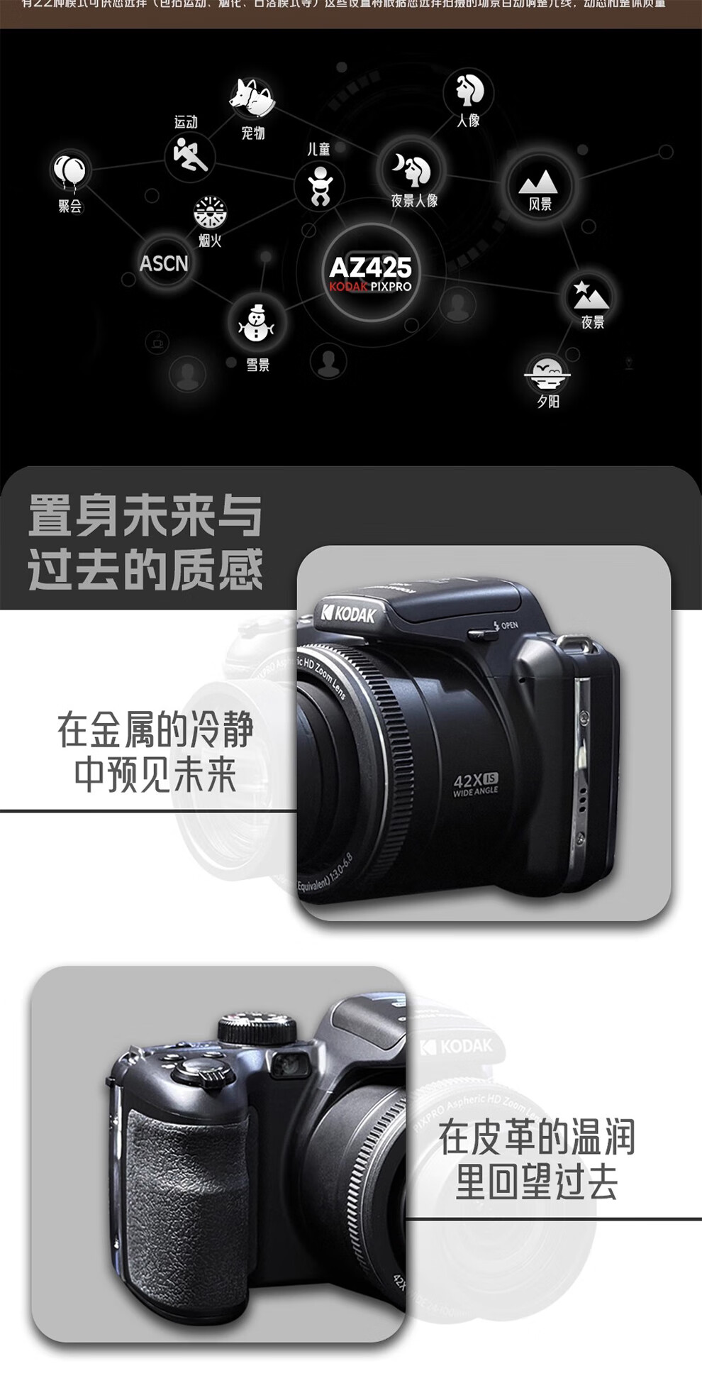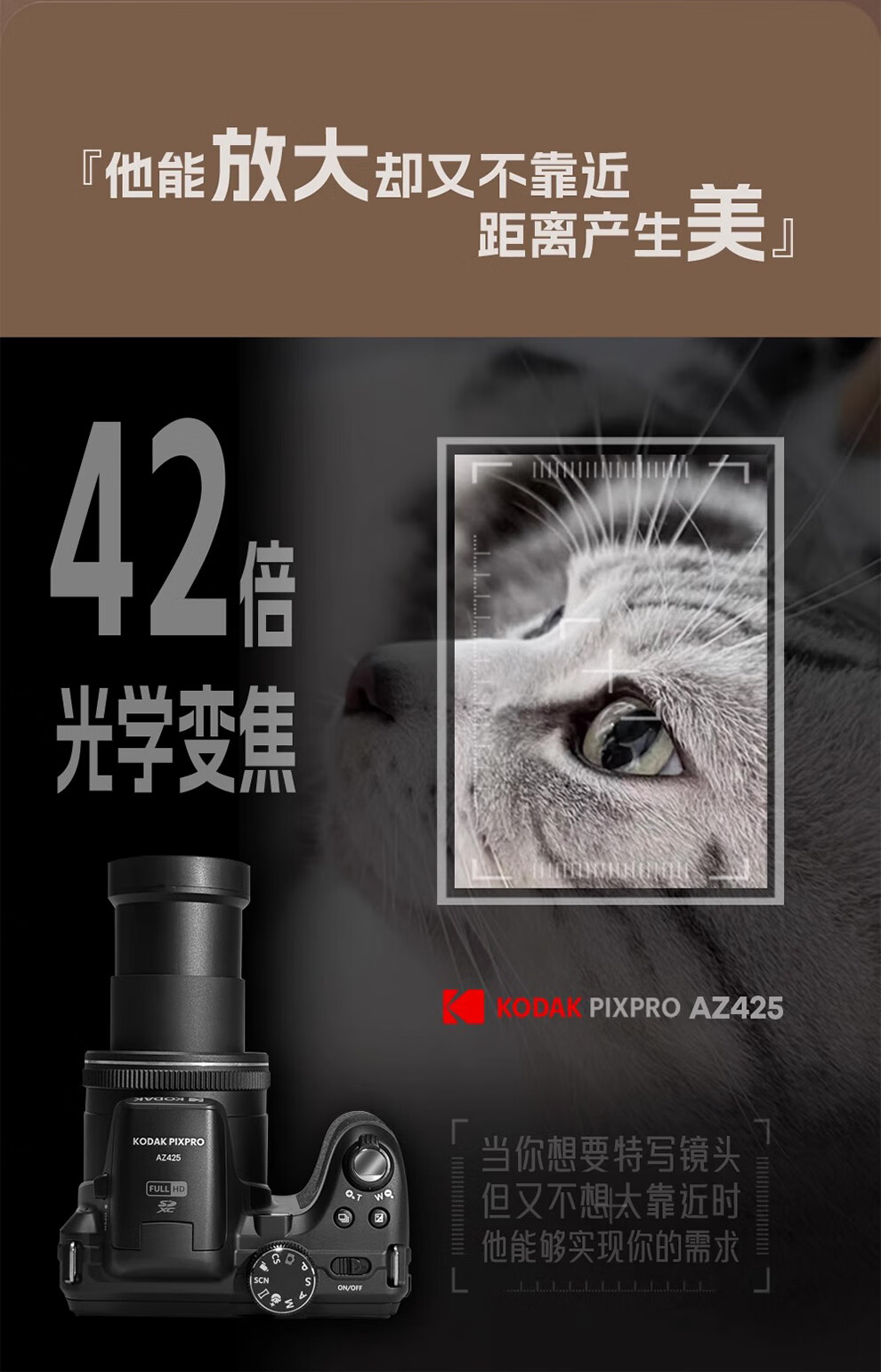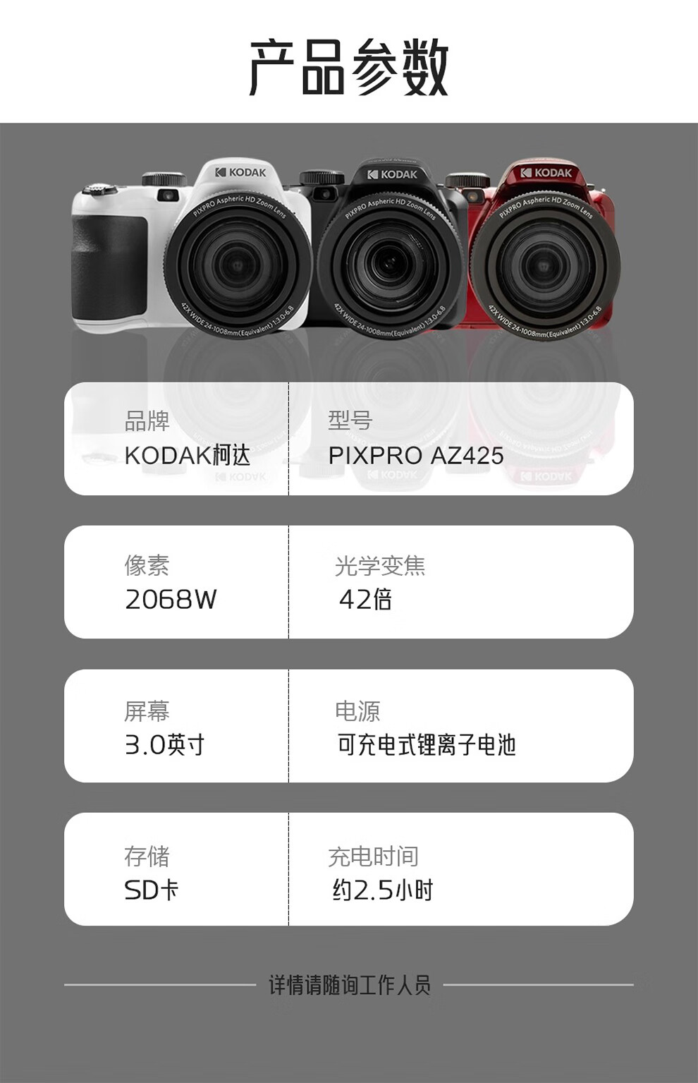KODAKAZ425 telephoto camera 20.68 million pixels BSI CMOS 3-inch screen 42x optical zoom 24mm wide angle black suit (comes with 32G card + card reader + bag)