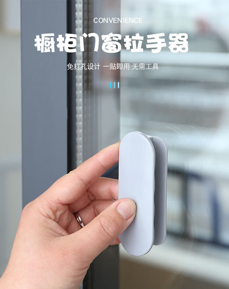 Honggong punch-free glass door handle push-pull door handle handle sliding door handle window drawer cabinet door handle gray 4 pack