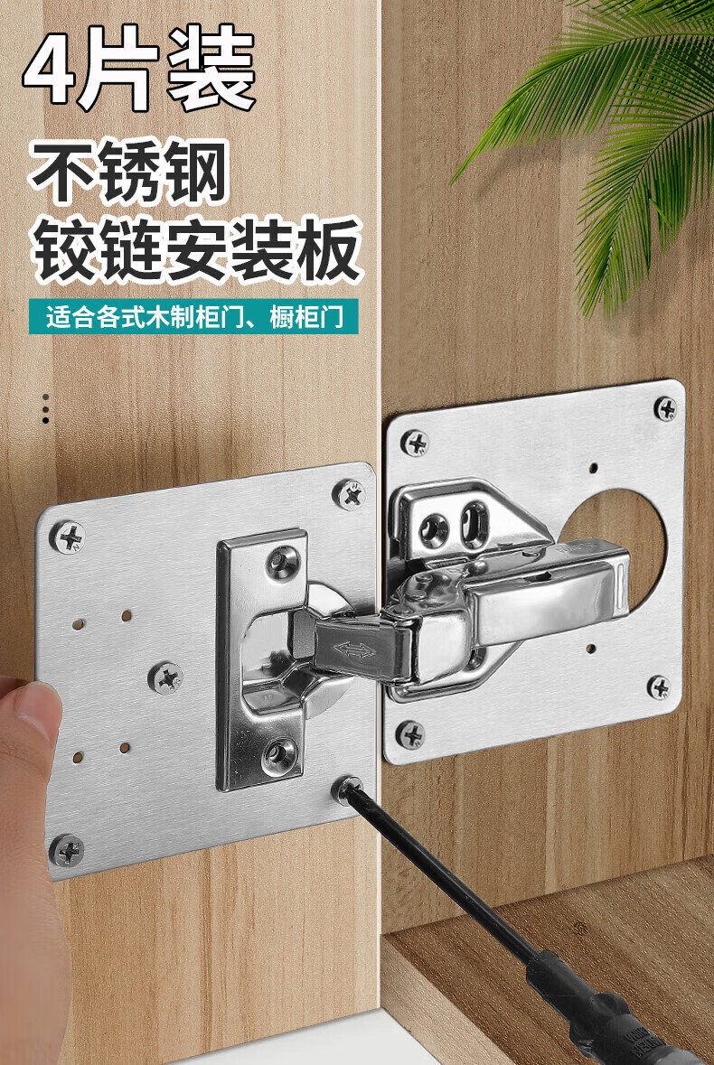 Honggong cabinet door hinge repair plate wardrobe cabinet hinge repair fixed plate stainless steel reinforced installation piece repair plate thickened 4 pieces