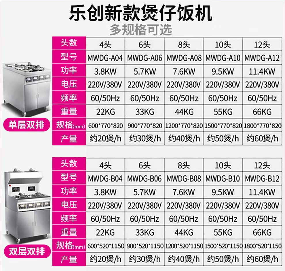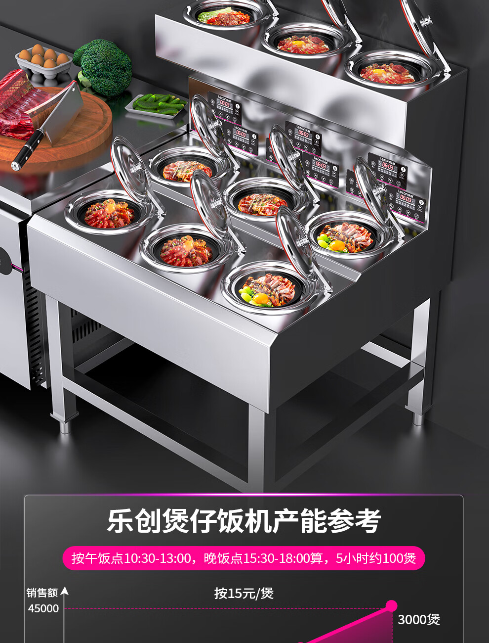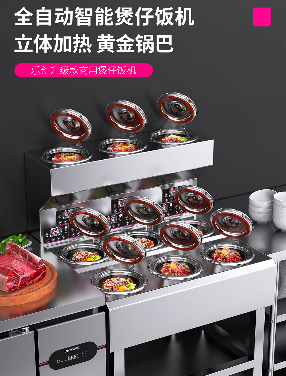 Lecon Cantonese-style claypot rice cooker commercial fully-automatic claypot stove cabinet-type electric heating high-power multi-head tinfoil claypot smart tinfoil clay pot take-out claypot rice machine single-layer double row 4-head claypot stove 20 cooks per hour