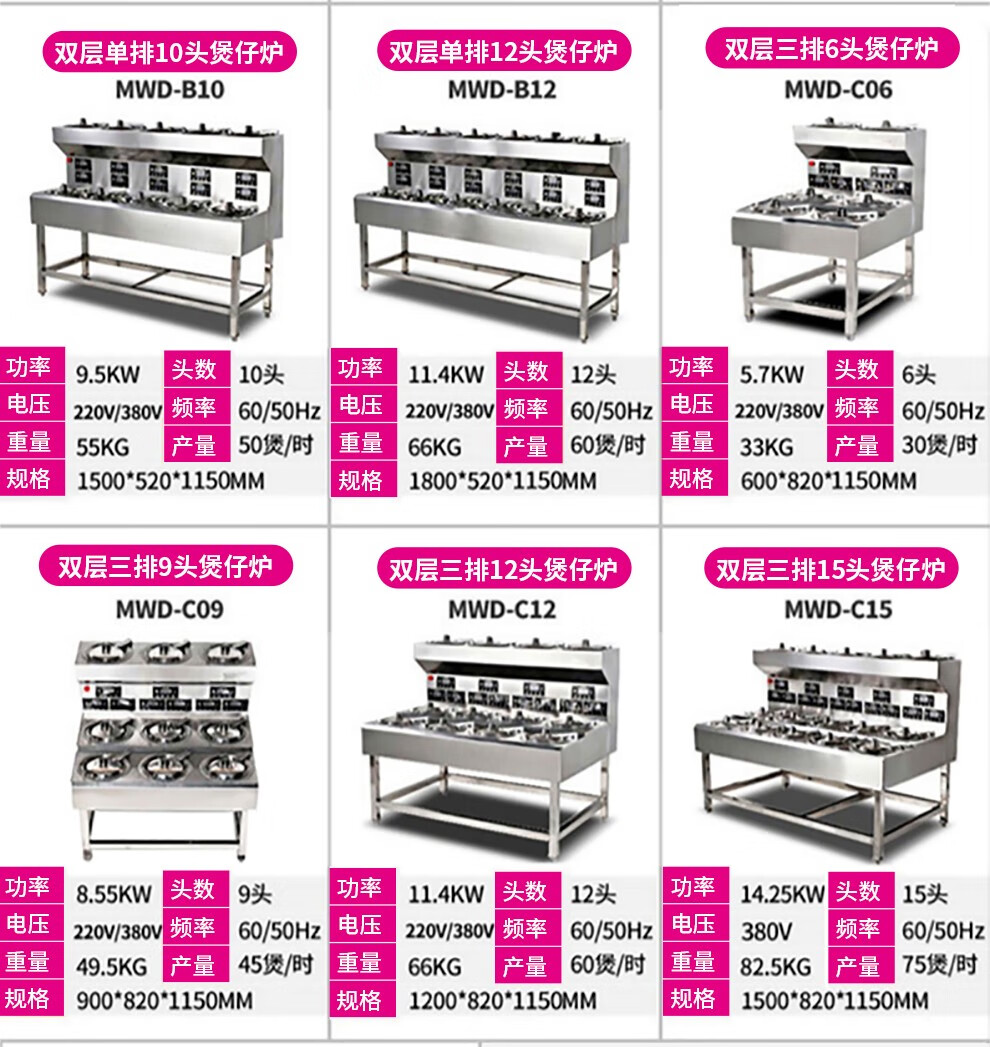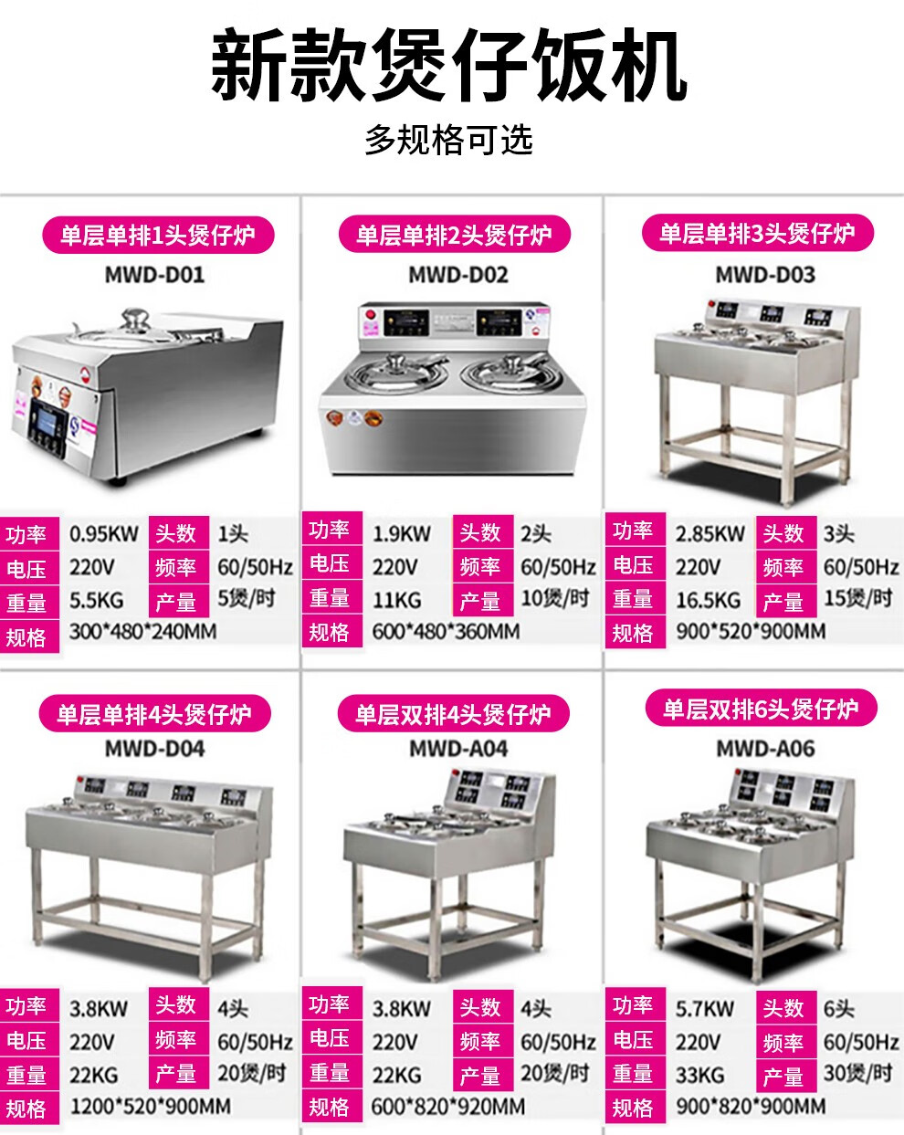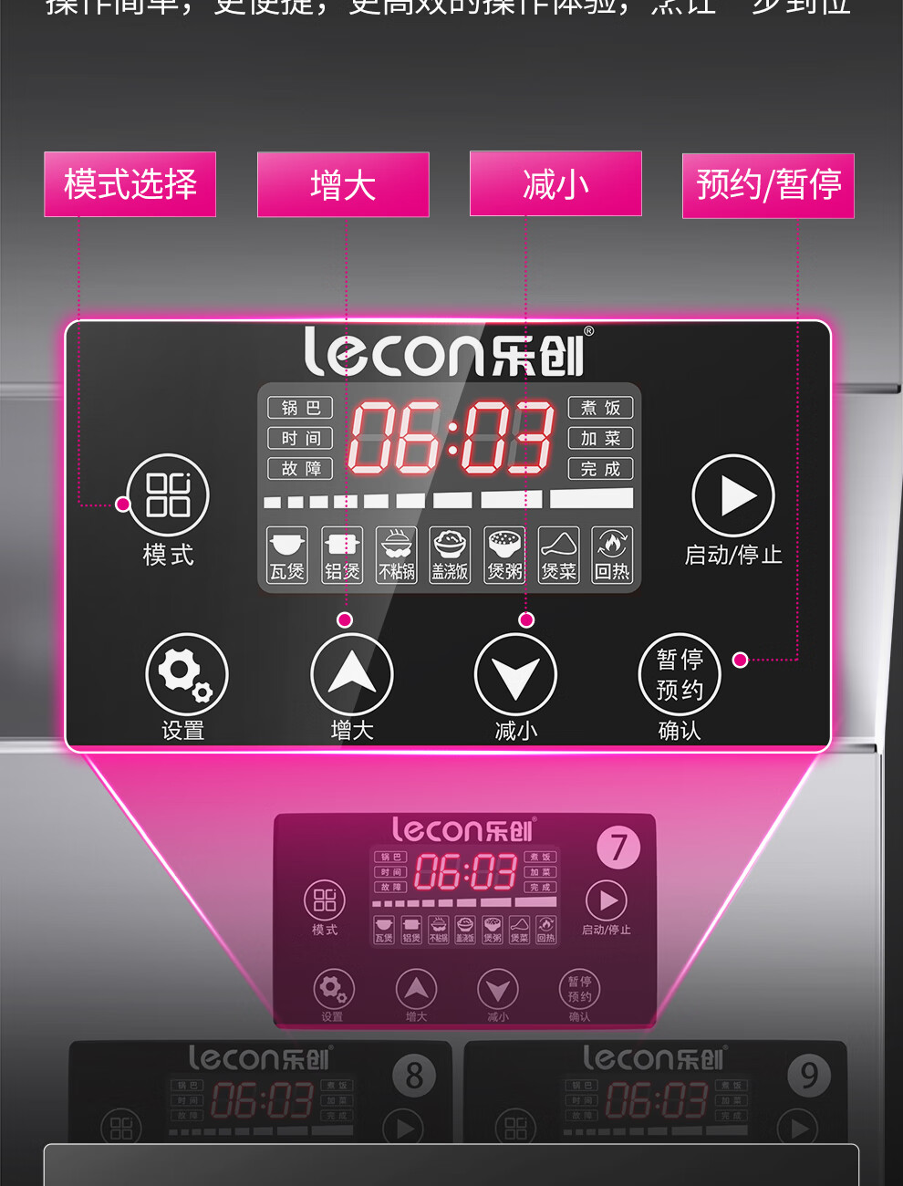 Lecon Cantonese-style claypot rice cooker commercial fully-automatic claypot stove cabinet-type electric heating high-power multi-head tinfoil claypot smart tinfoil clay pot take-out claypot rice machine single-layer double row 4-head claypot stove 20 cooks per hour