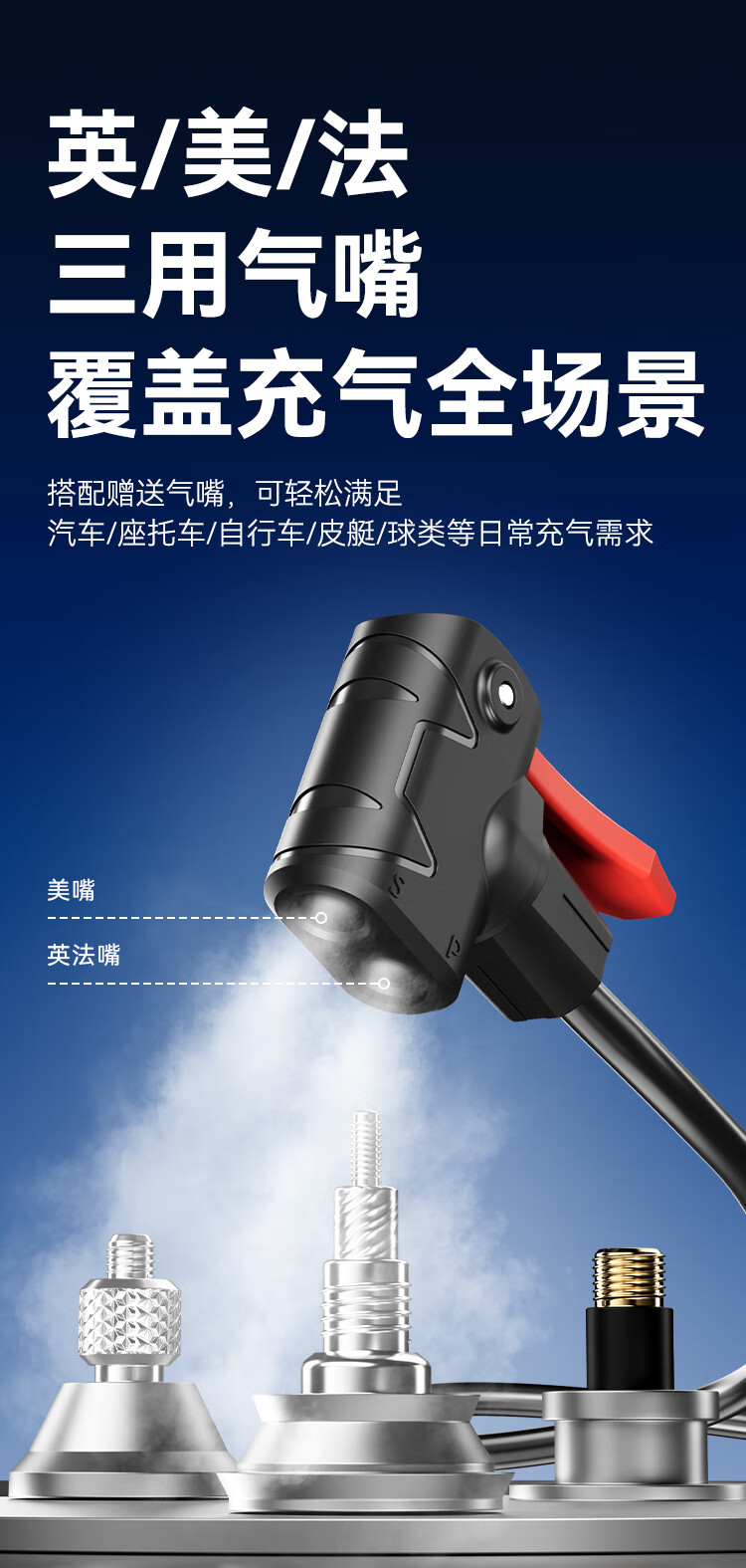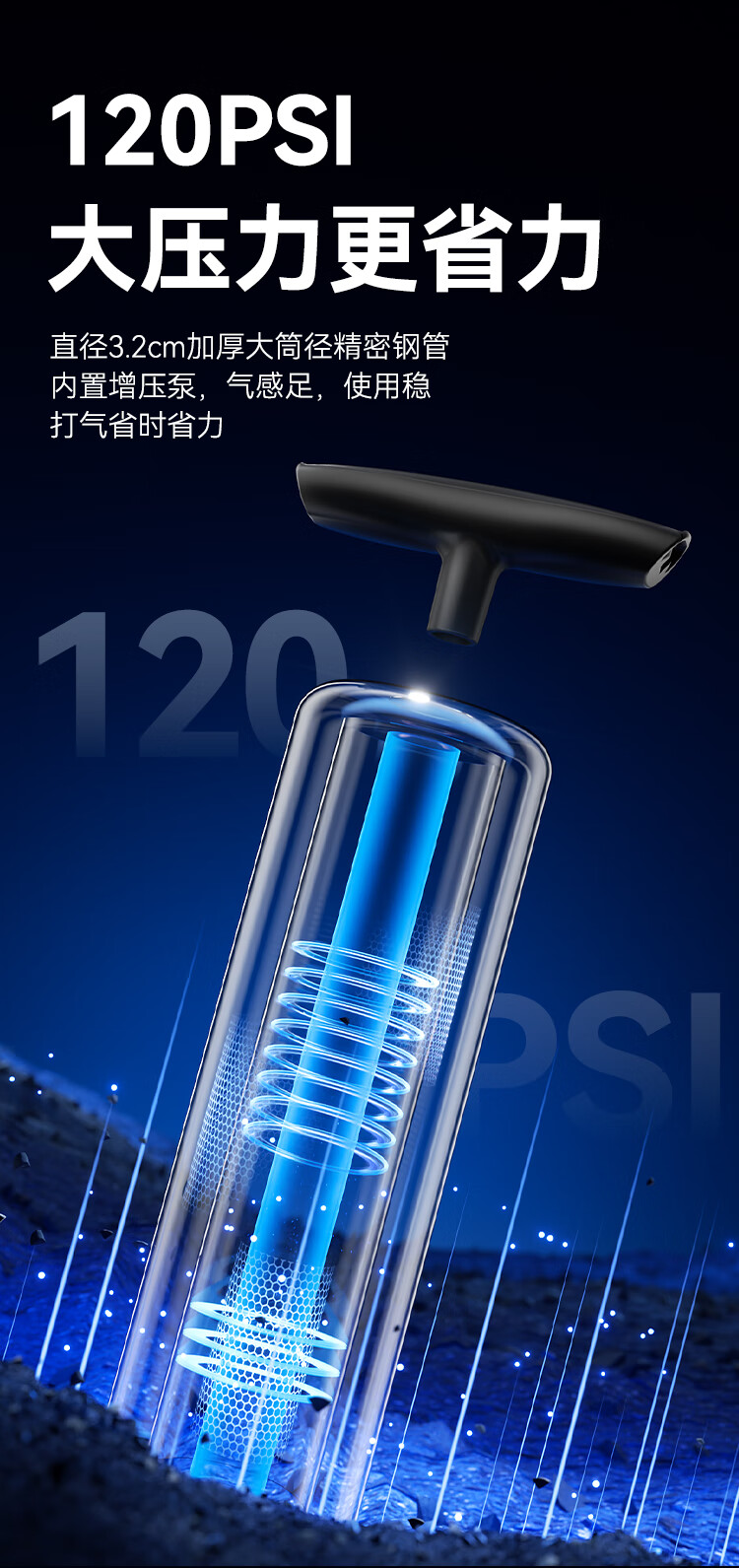 Made in Tokyo, 120PSI high-pressure pump with air pressure gauge, bicycle, motorcycle, electric bicycle, foot and basketball air pump