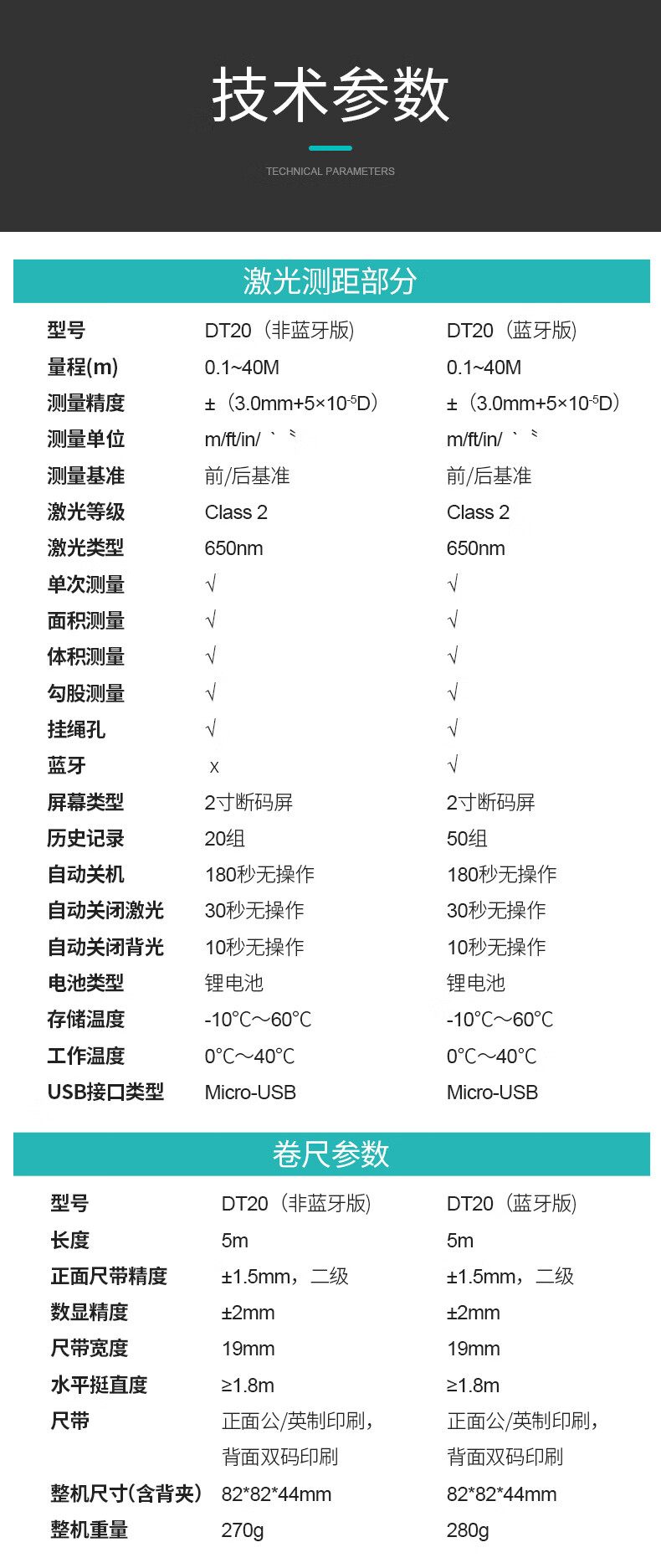 MiLESEEY electronic tape measure laser tape measure 5-meter three-in-one infrared high-precision mini ruler distance measurer 40-meter laser + 5-meter tape measure (Bluetooth model) DT20