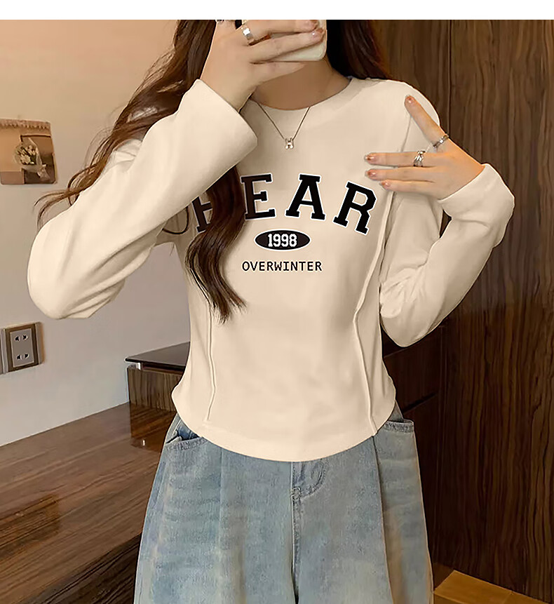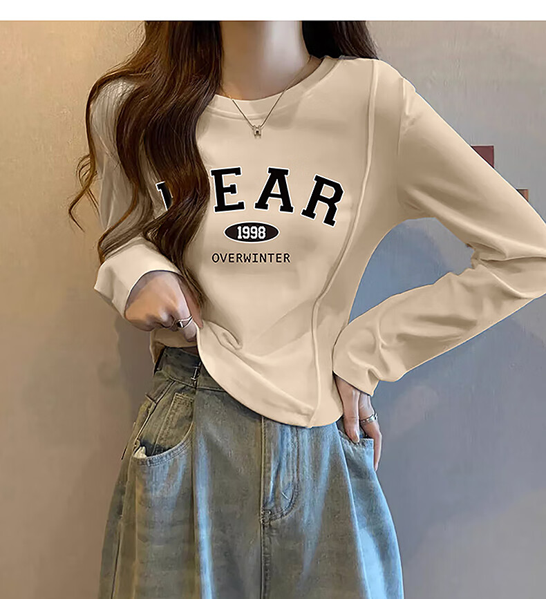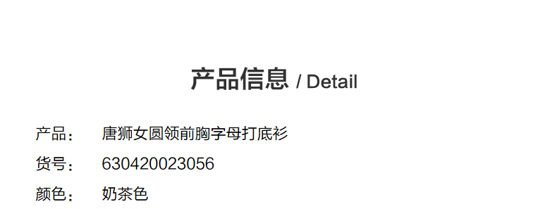 唐狮(TonLion)2025秋冬女圆领前胸字母打底衫