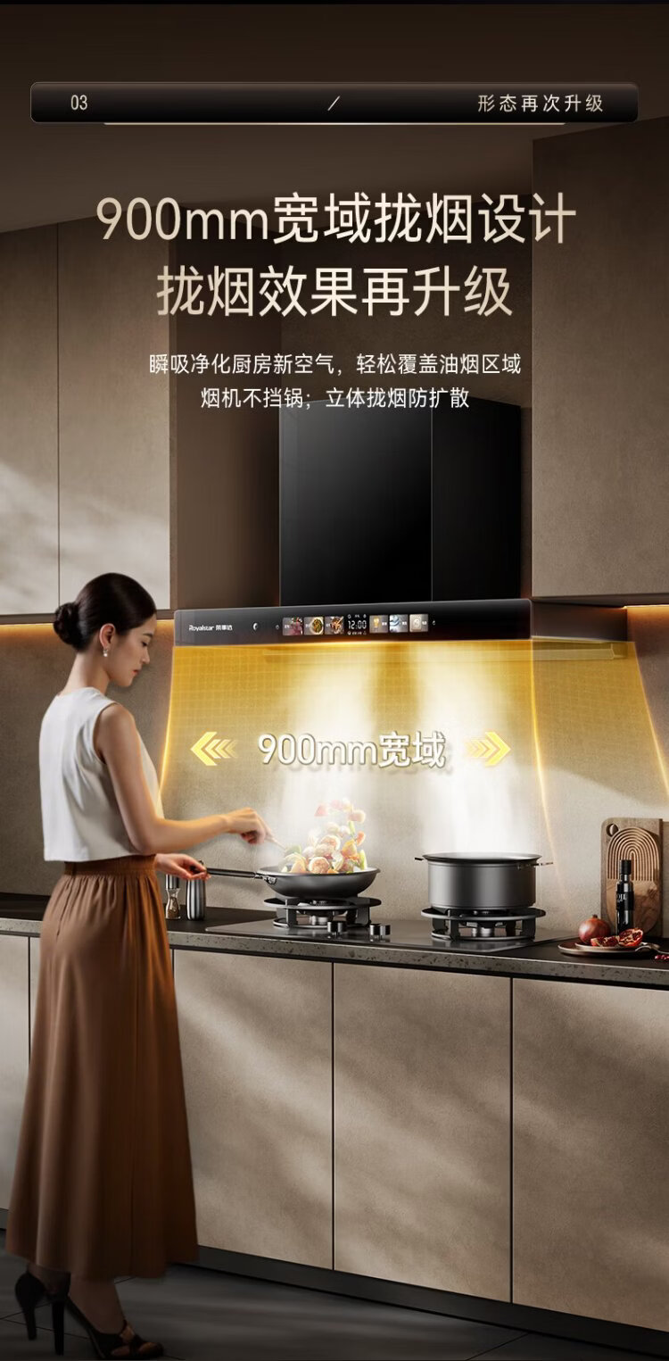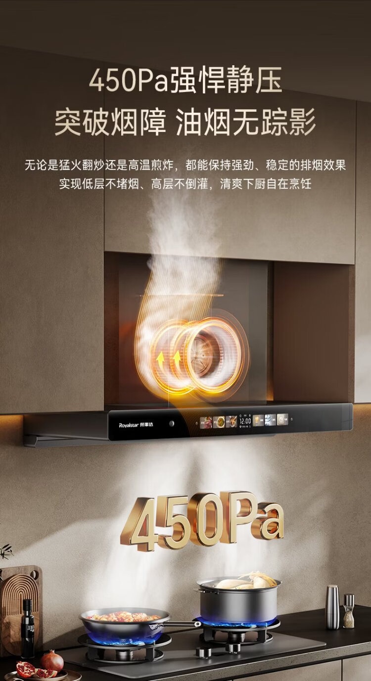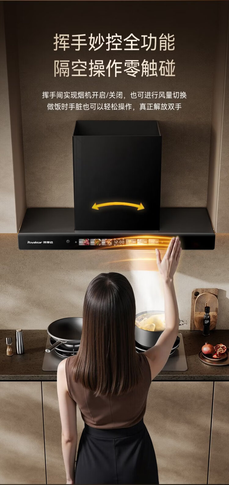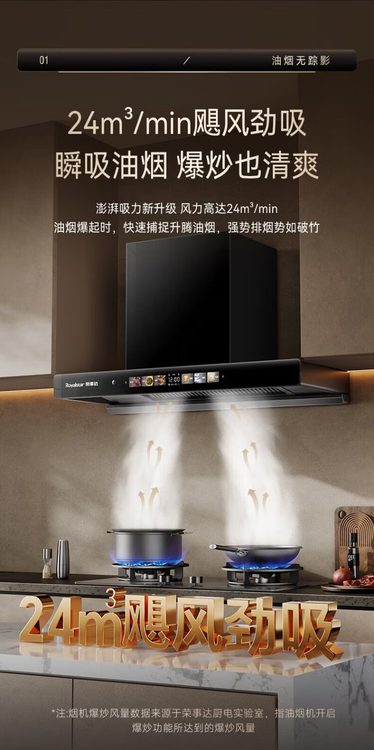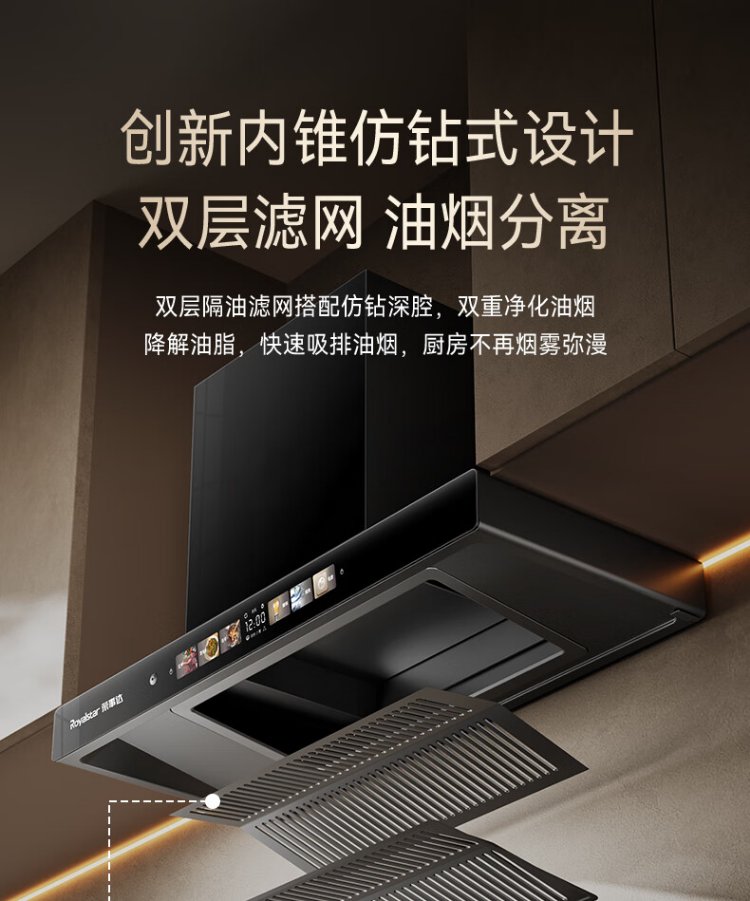 Royalstar range hood household 24 cubic meters large air volume range hood replacement 700 small size smoke exhaust machine high temperature thermal cleaning AI Xiaozhi voice color screen CXW-268-T811A