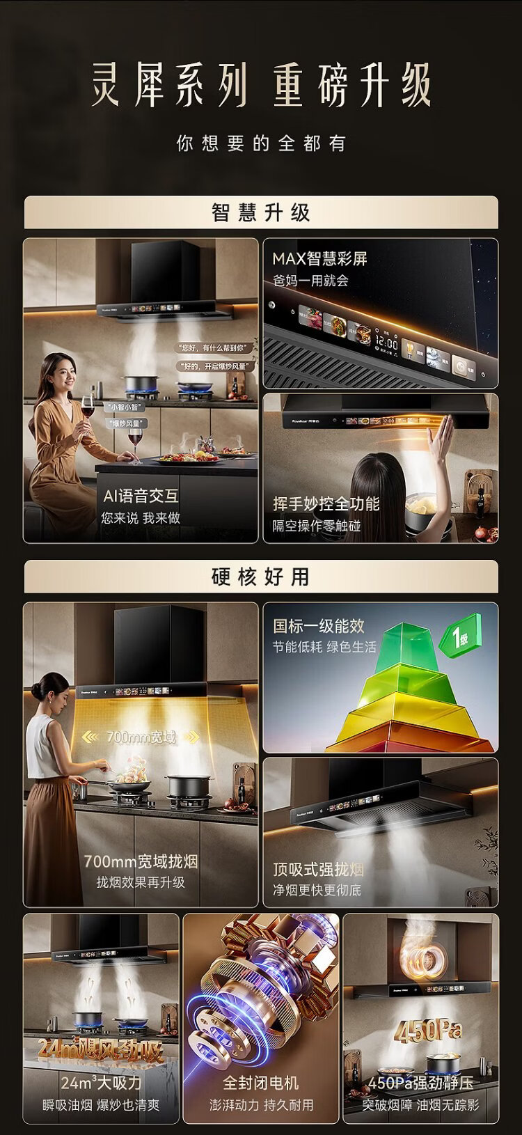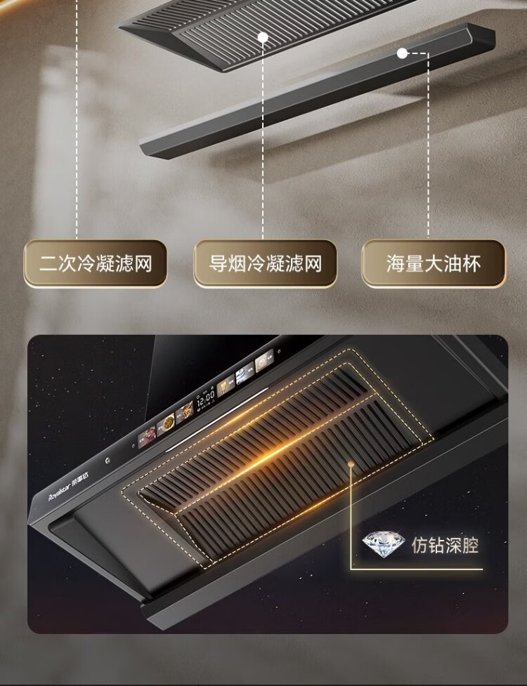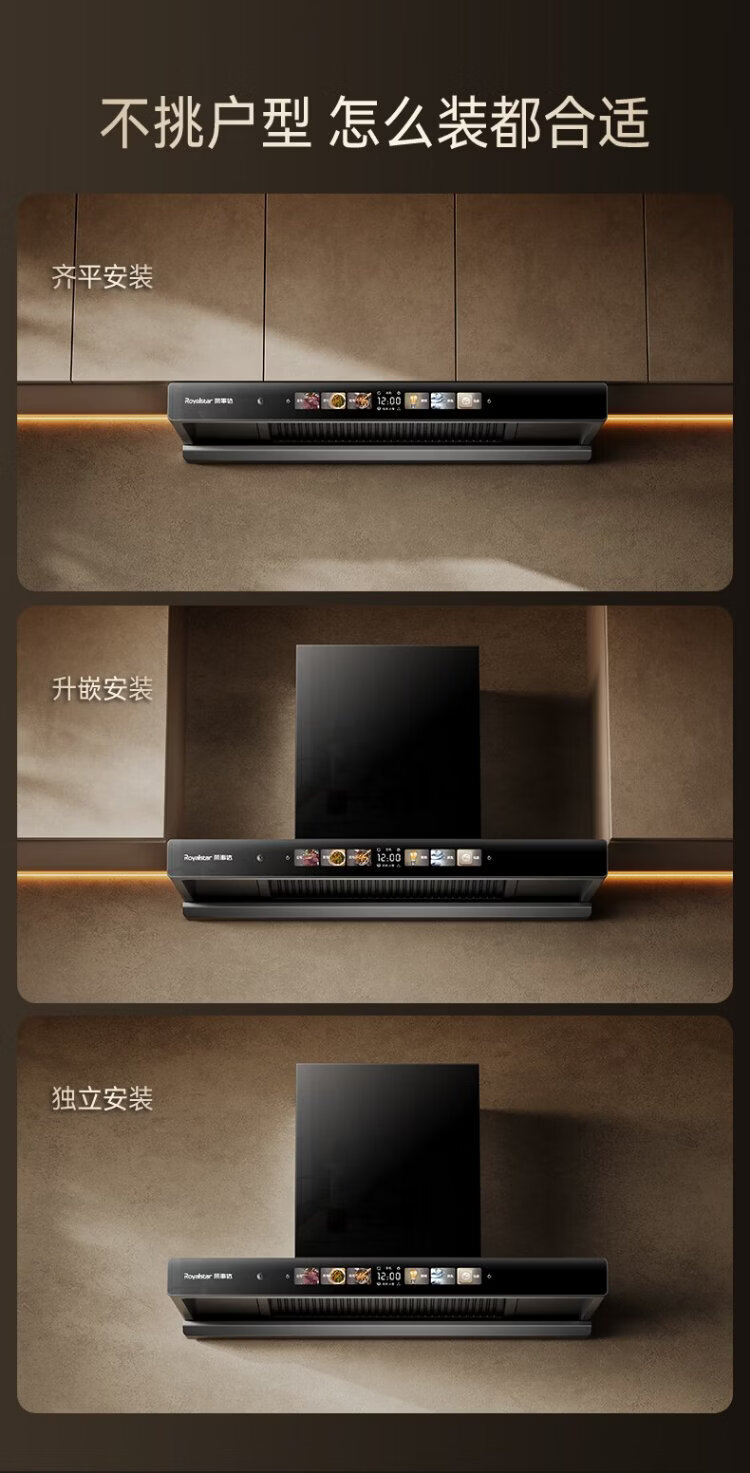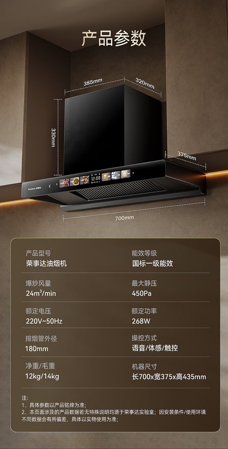 Royalstar range hood household 24 cubic meters large air volume range hood replacement 700 small size smoke exhaust machine high temperature thermal cleaning AI Xiaozhi voice color screen CXW-268-T811A
