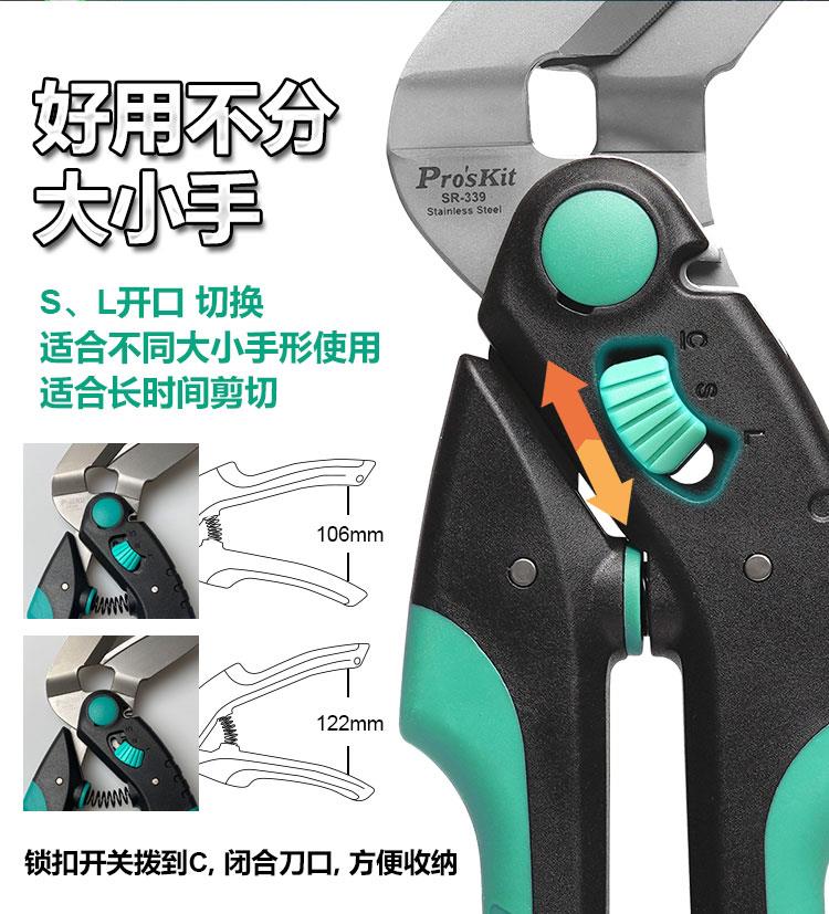 Baogong (Pro sKit) 10-inch elbow universal scissors, industrial-grade manual scissors, unboxing scissors, tailor's scissors SR-339