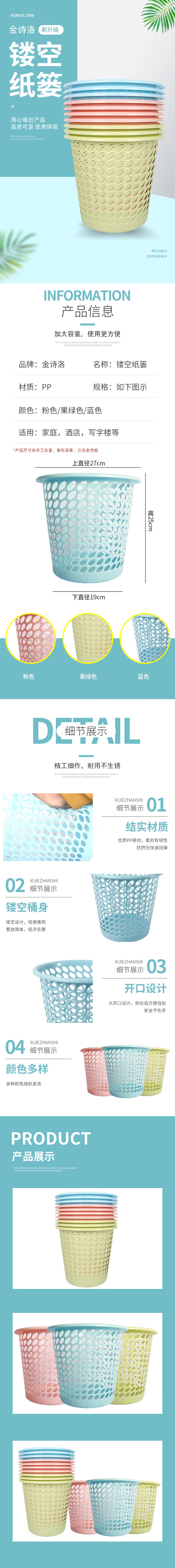 Jinshiluo K599 Trash Can Paper Basket Blue 5 Pieces Hollow Trash Can Bathroom Plastic Trash Can Trash Can