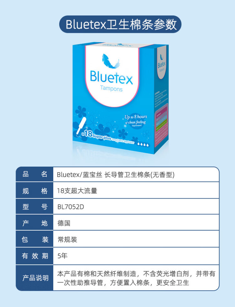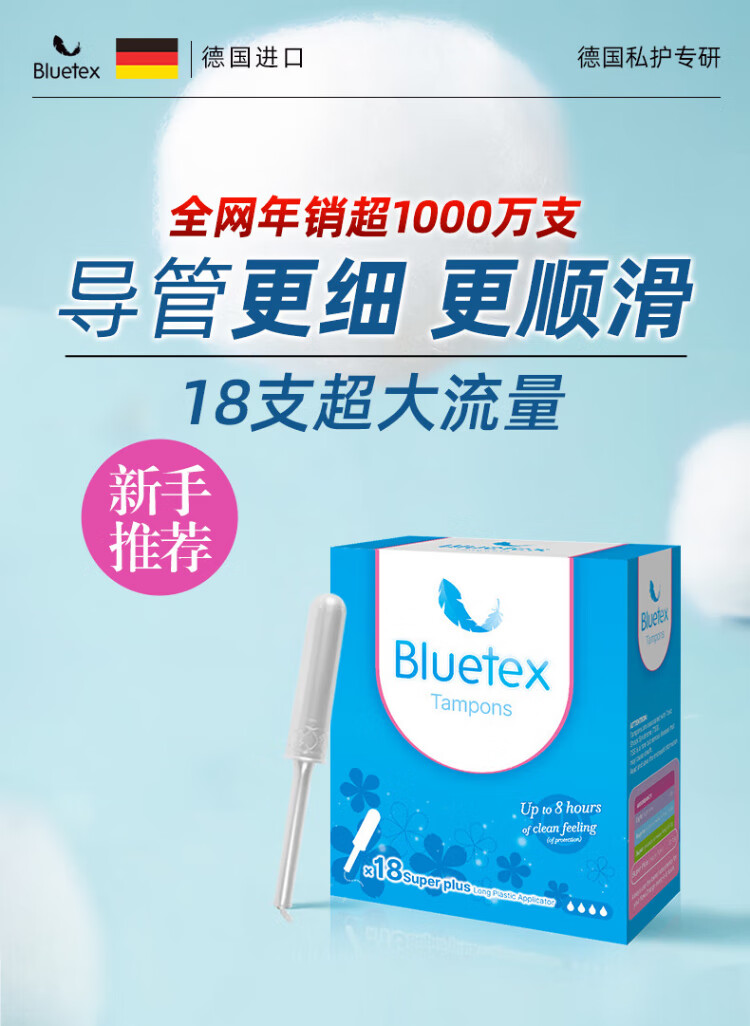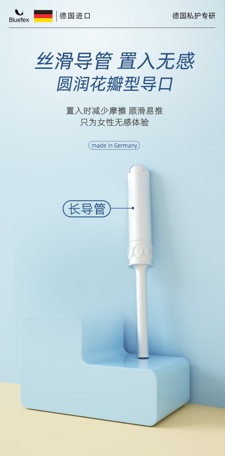 Bluetex long catheter tampons with extra large flow 18 built-in sanitary napkins menstrual vaginal plug self-operated