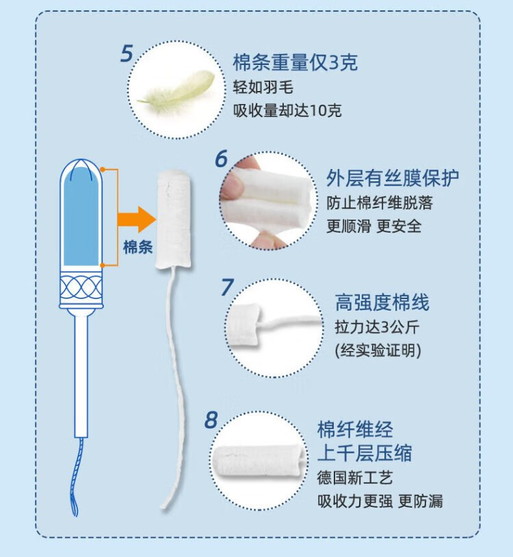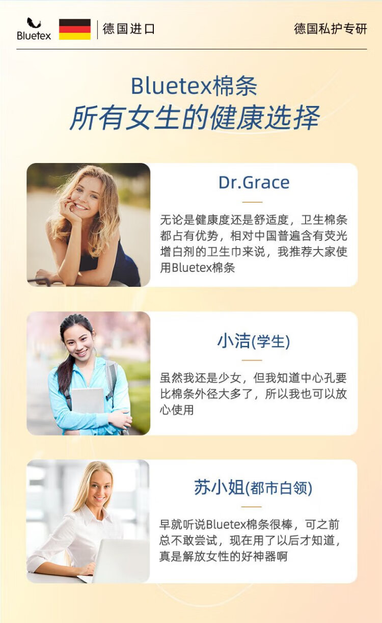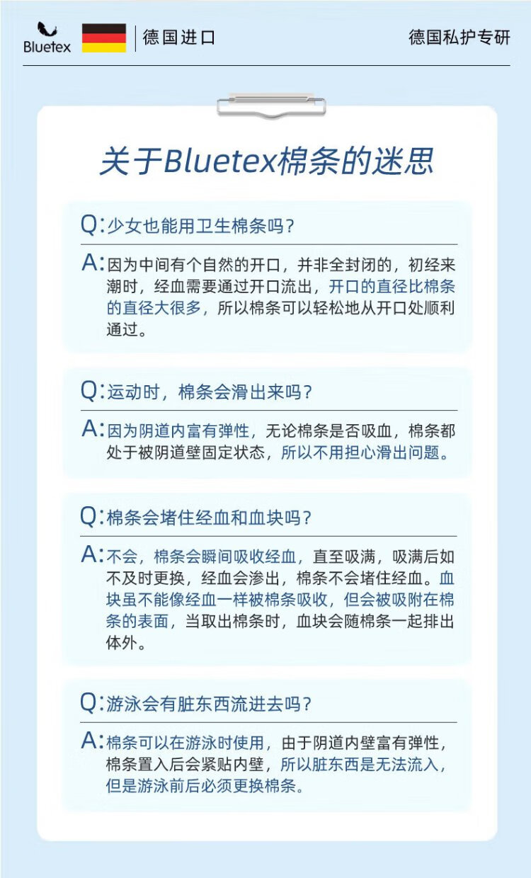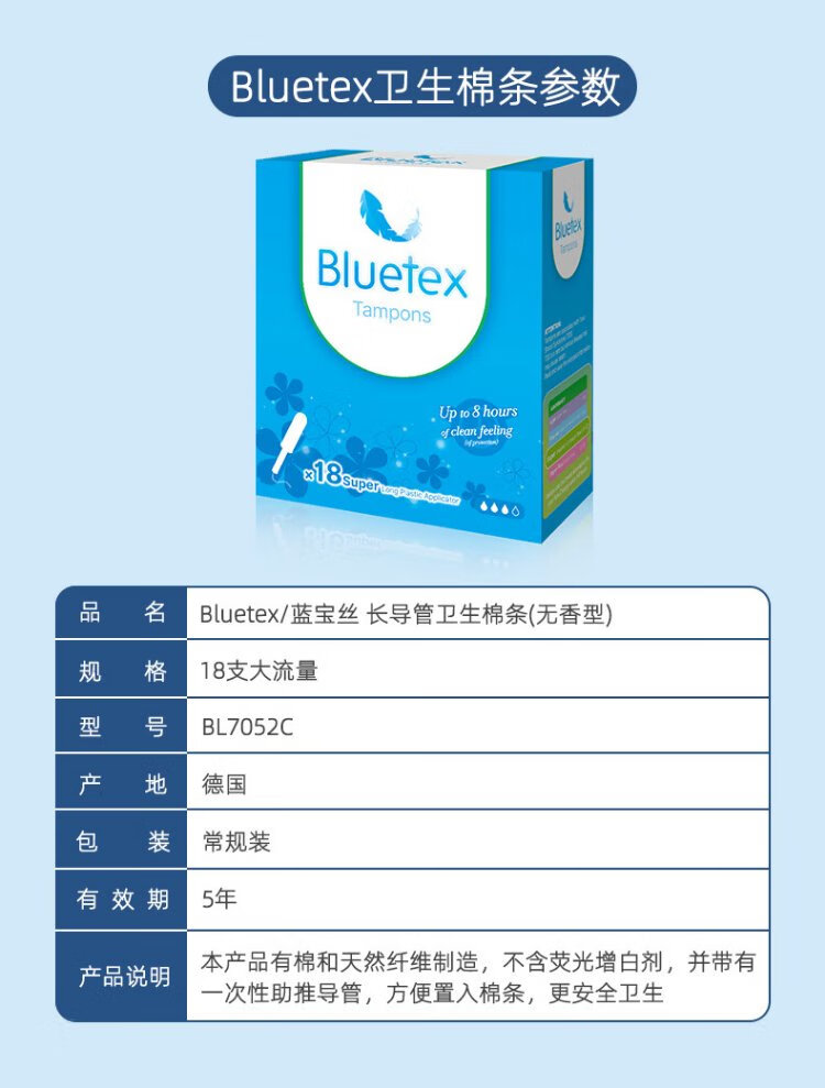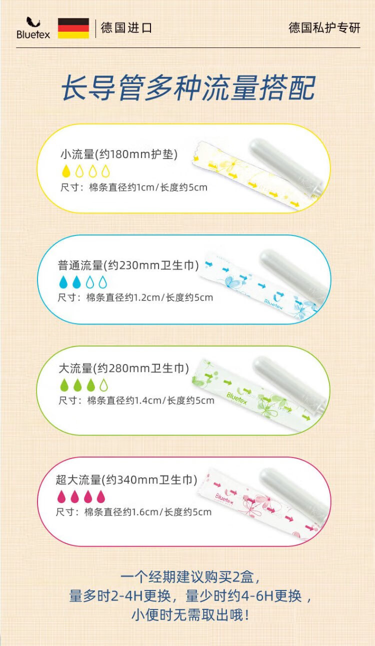 Bluetex long duct-type tampons with large flow 18 built-in sanitary napkins for menstrual vaginal insertion Aunt Jingdong self-operated