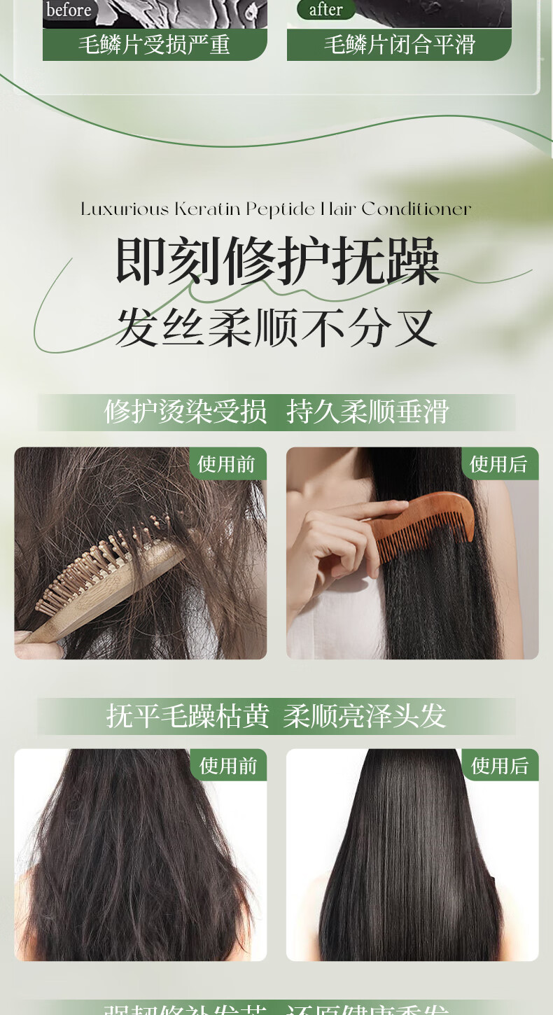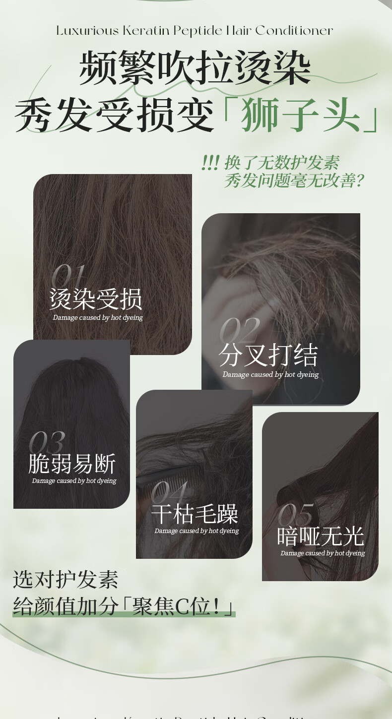 Keratin conditioner to soften dry, frizzy hair mask for men and women to improve hair smoothness and shine 680g*2