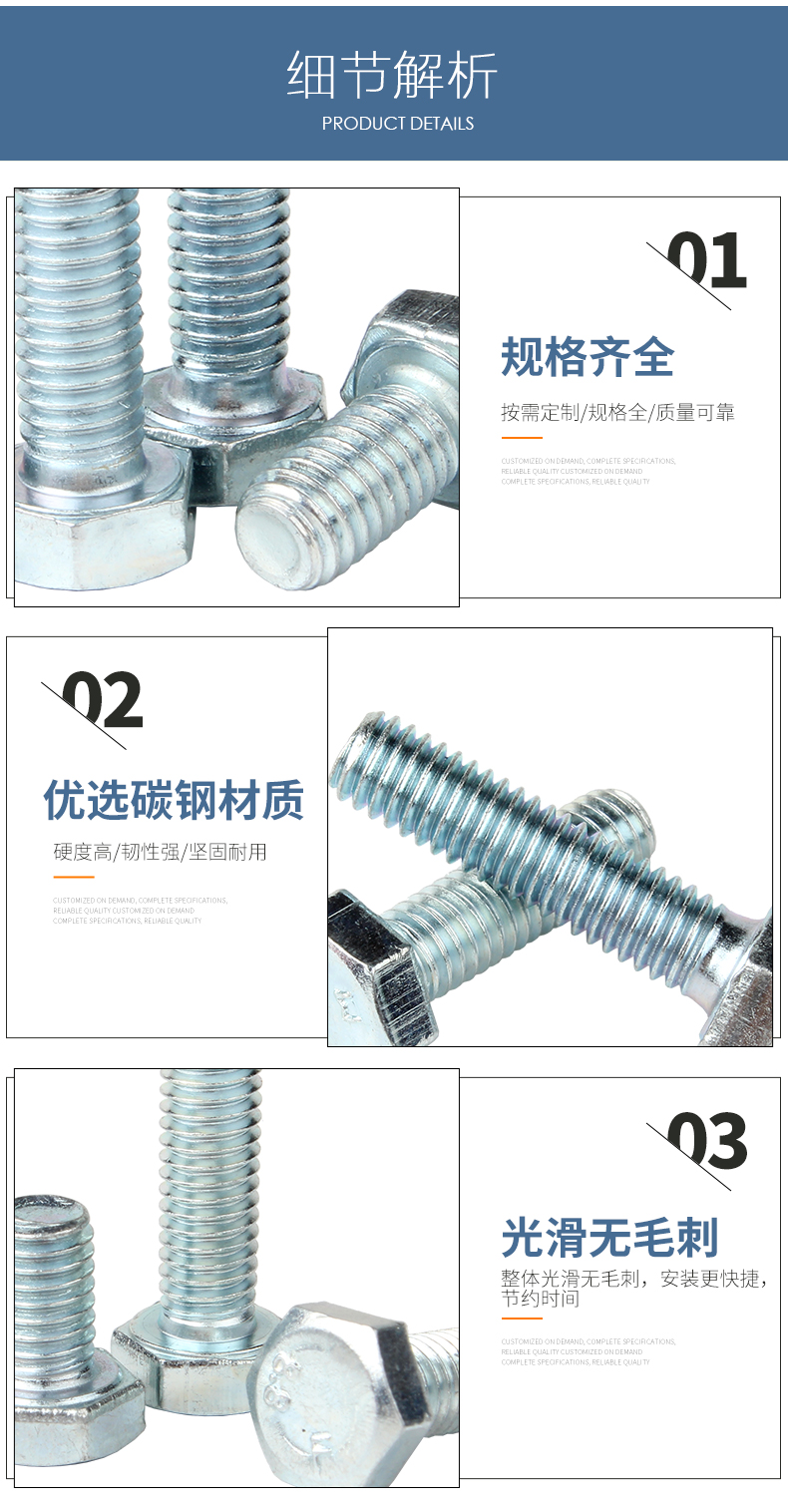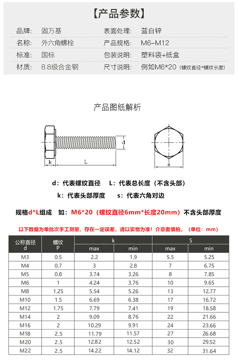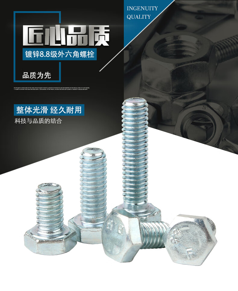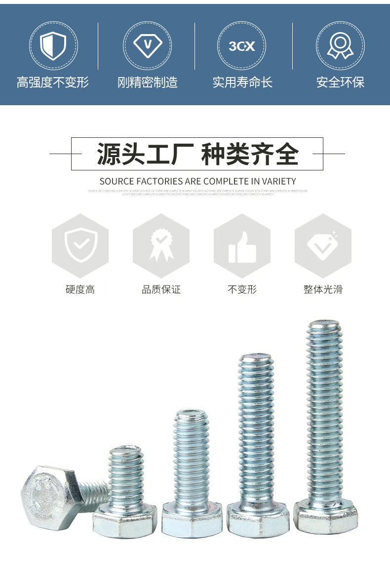 Guwanji 8.8 grade galvanized external hexagonal screws, half-thread hexagonal bolts, extended hexagonal full-thread machine screws, high strength M8x10 20 pieces