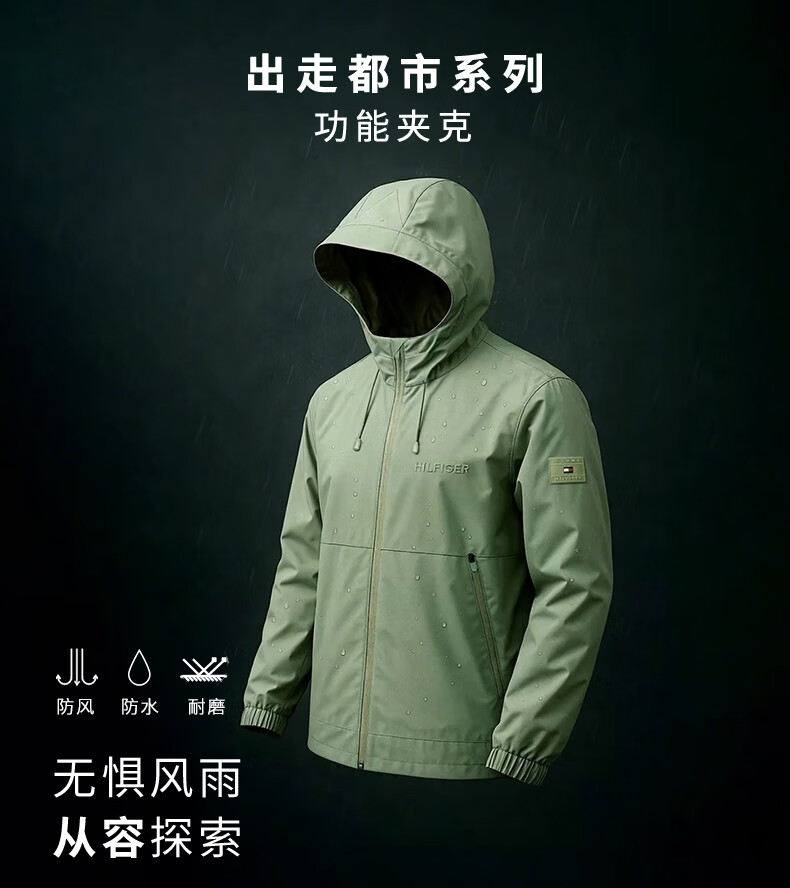 Tommy Hilfiger Stowable Hat Going Out of the City 25 Autumn Men's Windbreaker Soft Shell Jacket/Casual Stand Collar Jacket