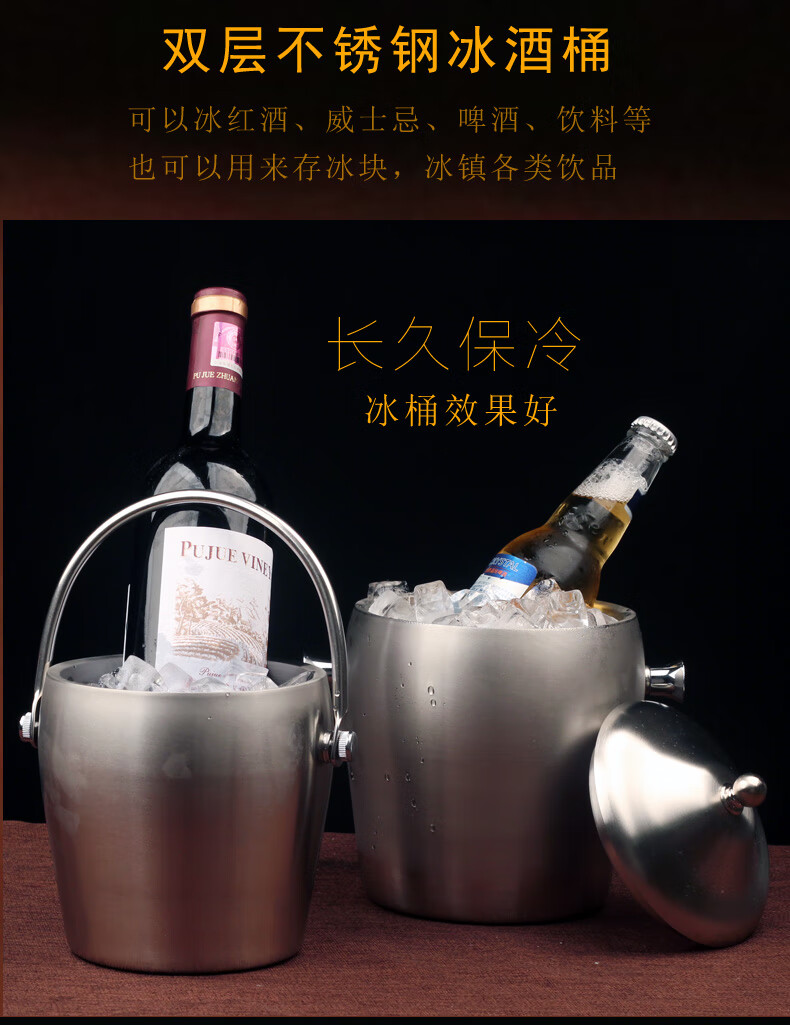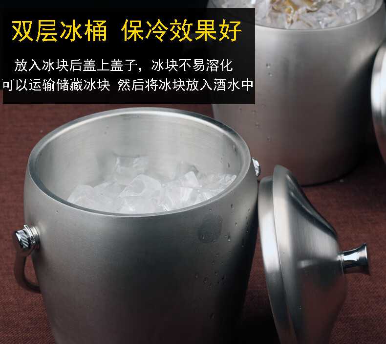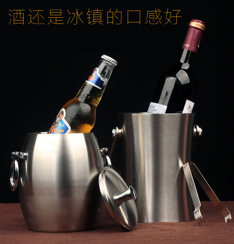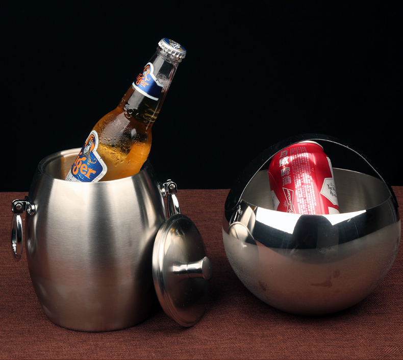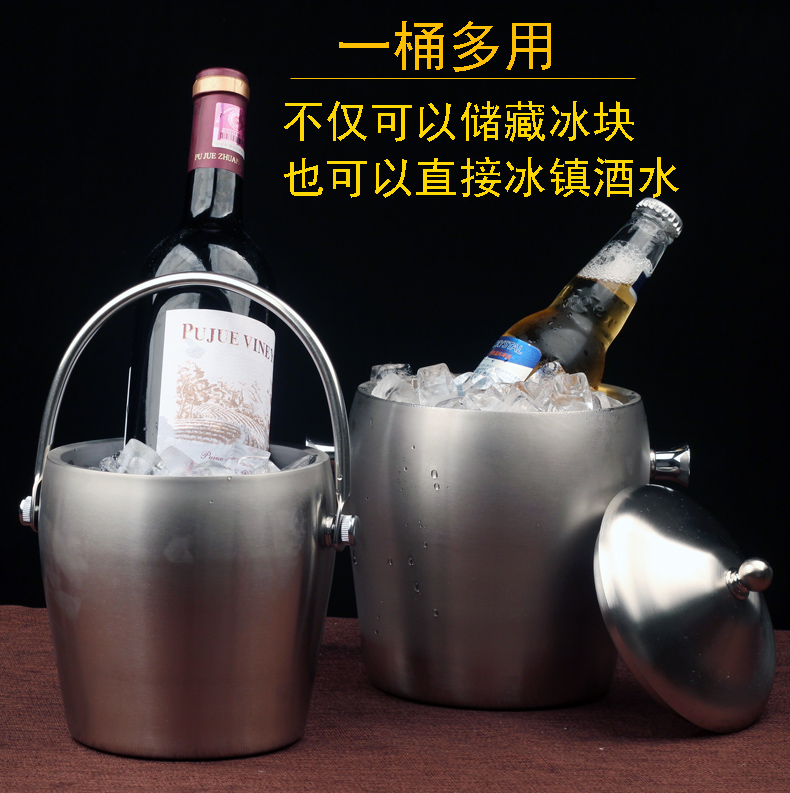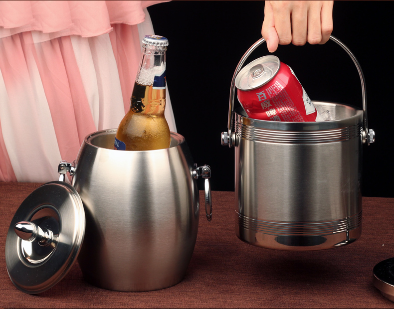Erisi stainless steel ice bucket insulated ice cube commercial cold storage ice bucket household red wine beer small ice bucket A type (1 ice tray)